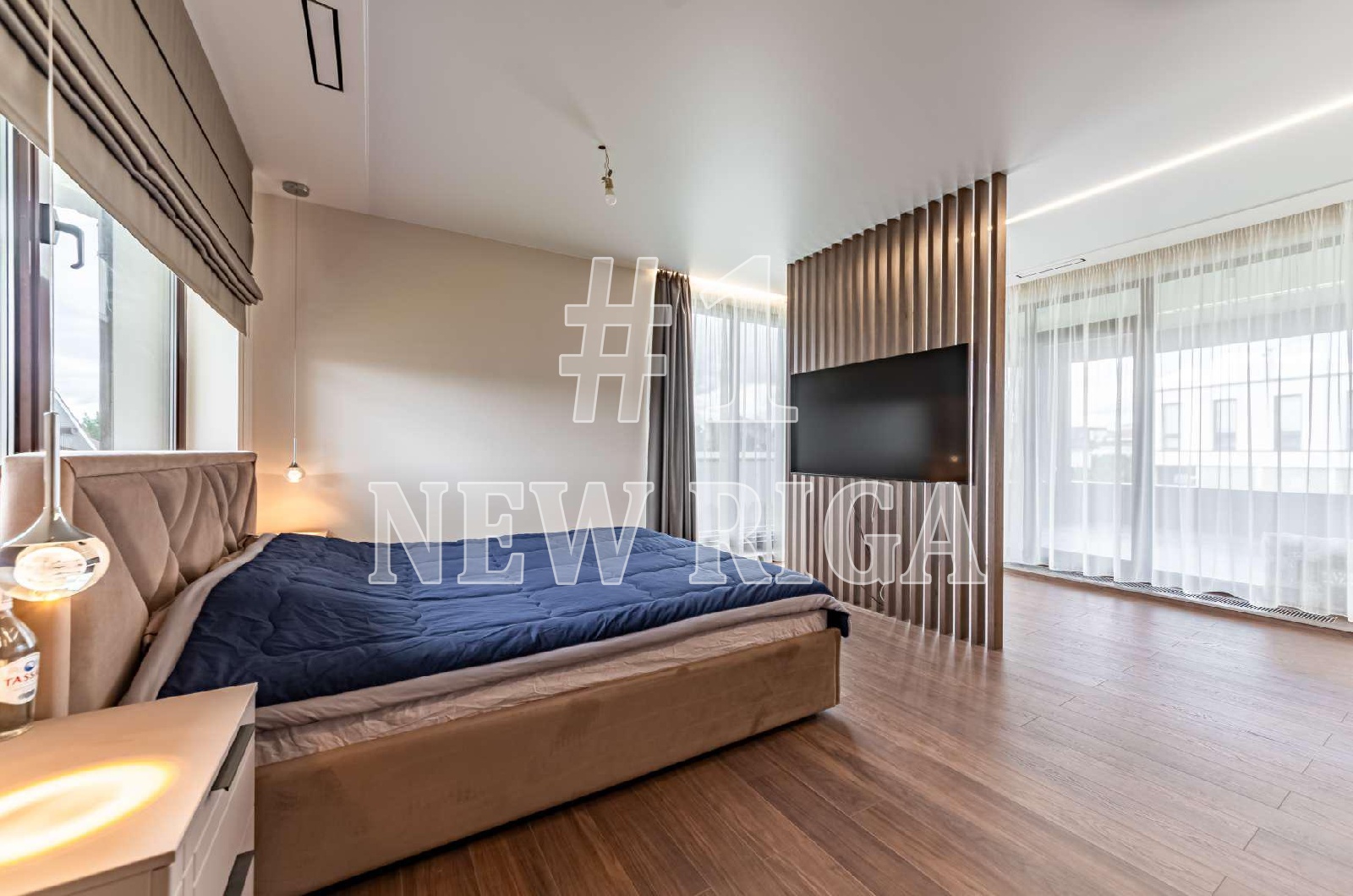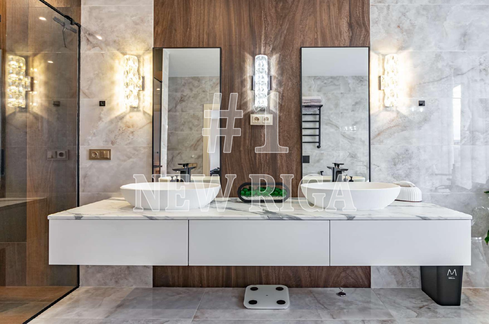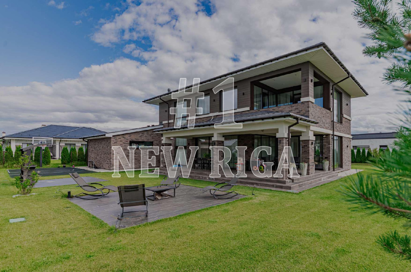 Продажа загородного дома площадью 407 кв. м, расположенный на Новорижском шоссе, в 23 км от МКАД, в престижном коттеджном поселке Новорижский. Коттедж в стиле Райта — это образец современной архитектуры, роскоши и удобства. Фасад выполнен в сдержанной гамме из декоративного кирпича и панелей, большие панорамные окна наполняют дом светом и подчеркивают его современный характер. Интерьеры дома продолжают идею современного стиля и комфорта. Кухня оформлена в минималистичном ключе с использованием премиальных материалов и оснащена техникой ведущих брендов. Удобный остров и барная зона создают пространство для семейных завтраков и встреч с друзьями. Гостиная просторная и светлая, с панорамным остеклением во всю стену, большим угловым диваном и современными дизайнерскими светильниками. Открытая лестница с деревянными ступенями и стеклянными перилами придает интерьеру легкость и элегантность. В отделке использованы натуральное дерево, крупноформатная плитка и нейтральные светлые оттенки, создающие атмосферу гармонии и уюта. Планировка продумана до мелочей: на первом этаже находятся гостиная, кухня-столовая, технические помещения и выход на террасу, на втором - приватная зона со спальнями, гардеробными и ванными комнатами. Дом полностью меблирован и укомплектован техникой премиального уровня. Есть гараж на 2 м/м с теплым переходом в дом, что делает проживание максимально комфортным в любое время года. Просторный участок площадью 15 соток грамотно благоустроен ландшафтным дизайнером: высажен и ухожен газон, декоративные насаждения и плодовые деревья, предусмотрена дренажная система и автополив с датчиком дождя. Для отдыха на свежем воздухе обустроена просторная терраса, костровая и барбекю-зоны, есть баскетбольная площадка для спорта и детская площадка с горкой и качелями.