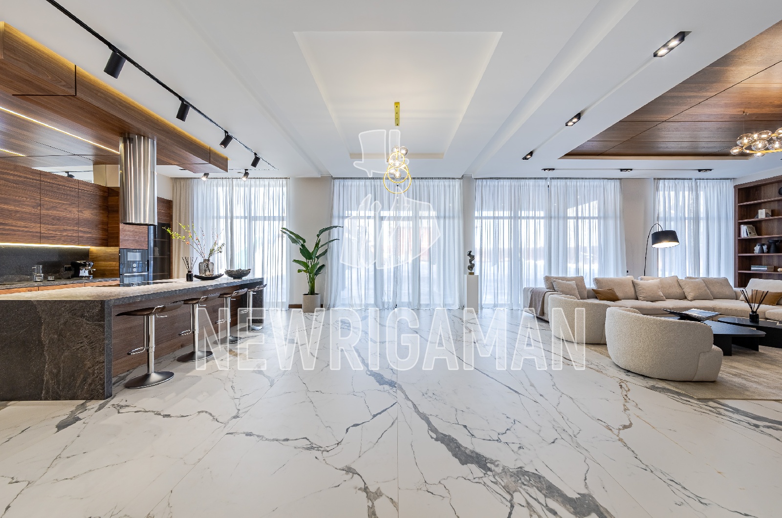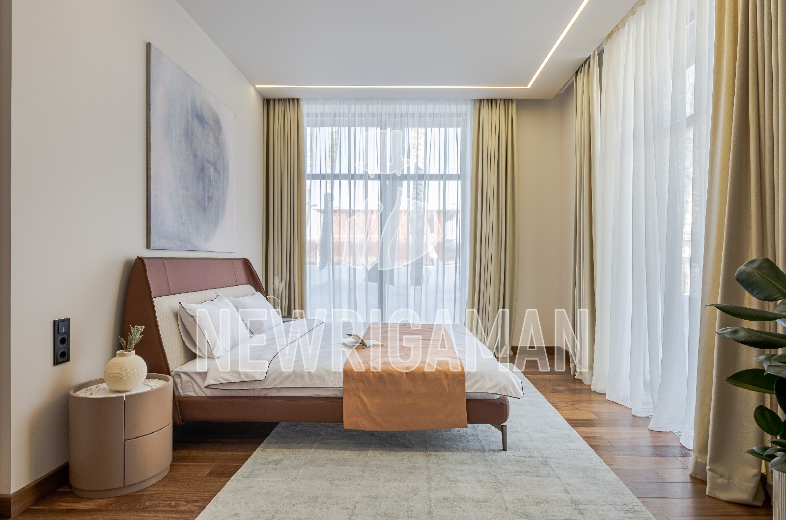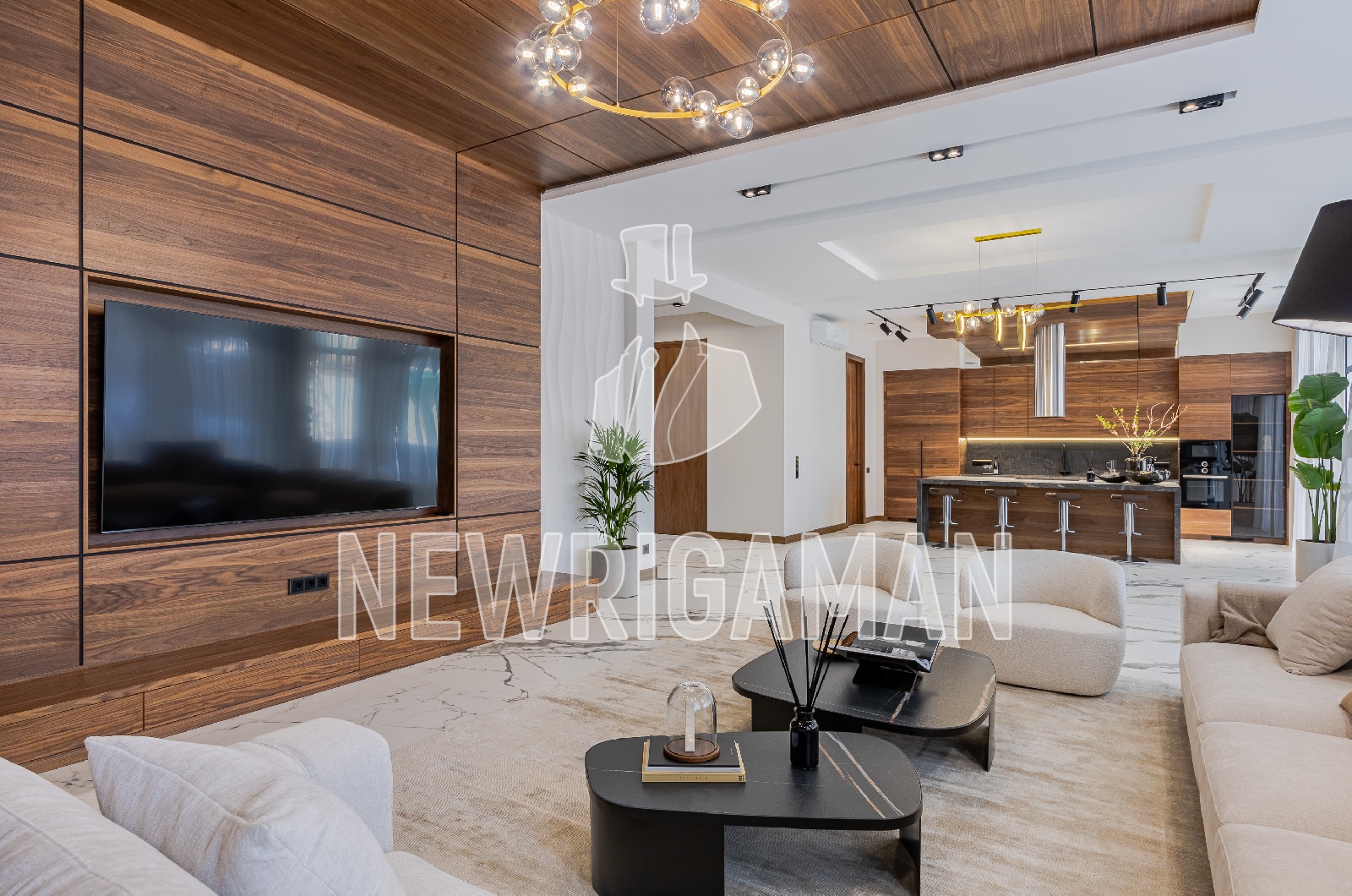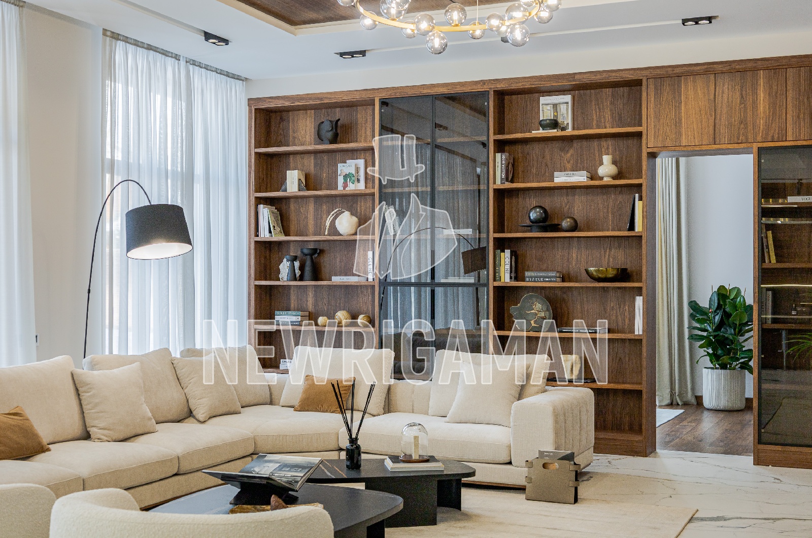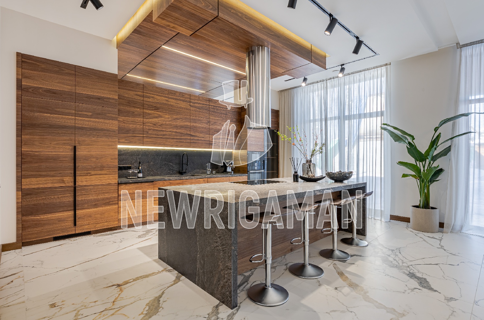 Продажа загородного дома общей площадью 437 кв.м. Новорижское шоссе, 19 км от МКАД. Коттеджный поселок Миллениум парк. Чёткие прямые линии и минималистичный дизайн фасада формируют выразительный и утончённый облик. В облицовке использованы контрастные материалы в сдержанных белых и тёмно-серых тонах с фактурой камня и дерева. Экстерьер подчеркивается декоративной подсветкой. Коттедж оснащён приточно-вытяжной вентиляцией, кондиционированием, подогревом полов и системой \"умный дом\". Интерьеры оформлены в современном стиле, где преобладают мягкие нейтральные оттенки. Натуральные древесные текстуры вносят акценты, добавляя пространству теплоту и сложность. Панорамные окна и многоуровневые потолки с тщательно продуманным освещением создают игру света и тени, создавая атмосферу уюта и гармонии. Дом полностью меблирован и укомплектован техникой от ведущих производителей. Площадь участка 8 соток.