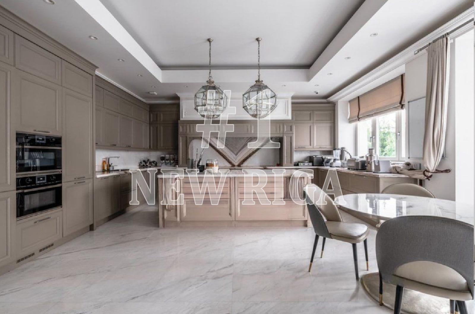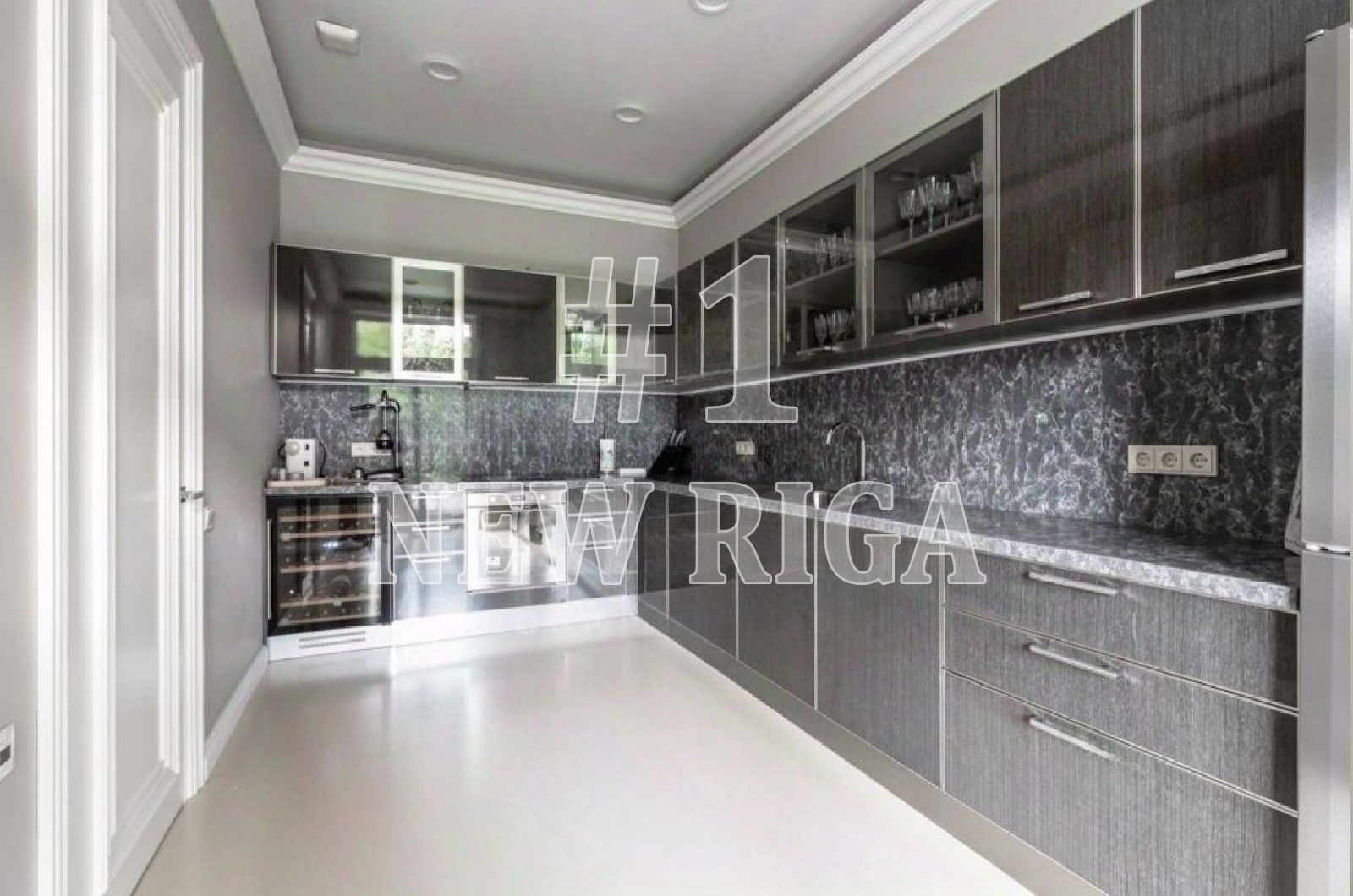 1 этаж - холл, гардеробная, гостевой c/у, гостиная, столовая, зона для завтраков, 2 кухни, открытая и закрытая террасы, кабинет, спортивный зал, SPA-зона: просторная чайная комната с обеденной зоной, хамам, русская баня, генератор снега, массажный кабинет и салон красоты,