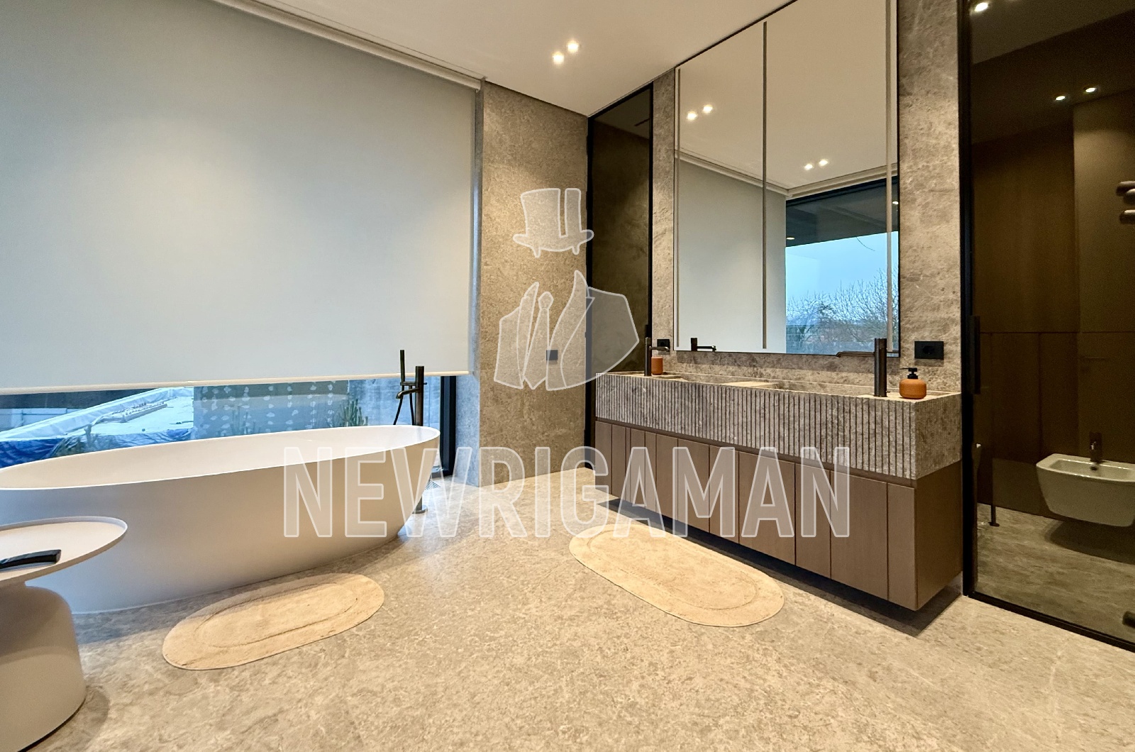 1 этаж - холл, гостиная-кухня-столовая, с/у, гардеробная, спальня с гардеробной и с/у, квартира для персонала с кухней-гостиной, спальней и с/у, постирочная, кладовая, котельная, электрощитовая, гараж, терраса,