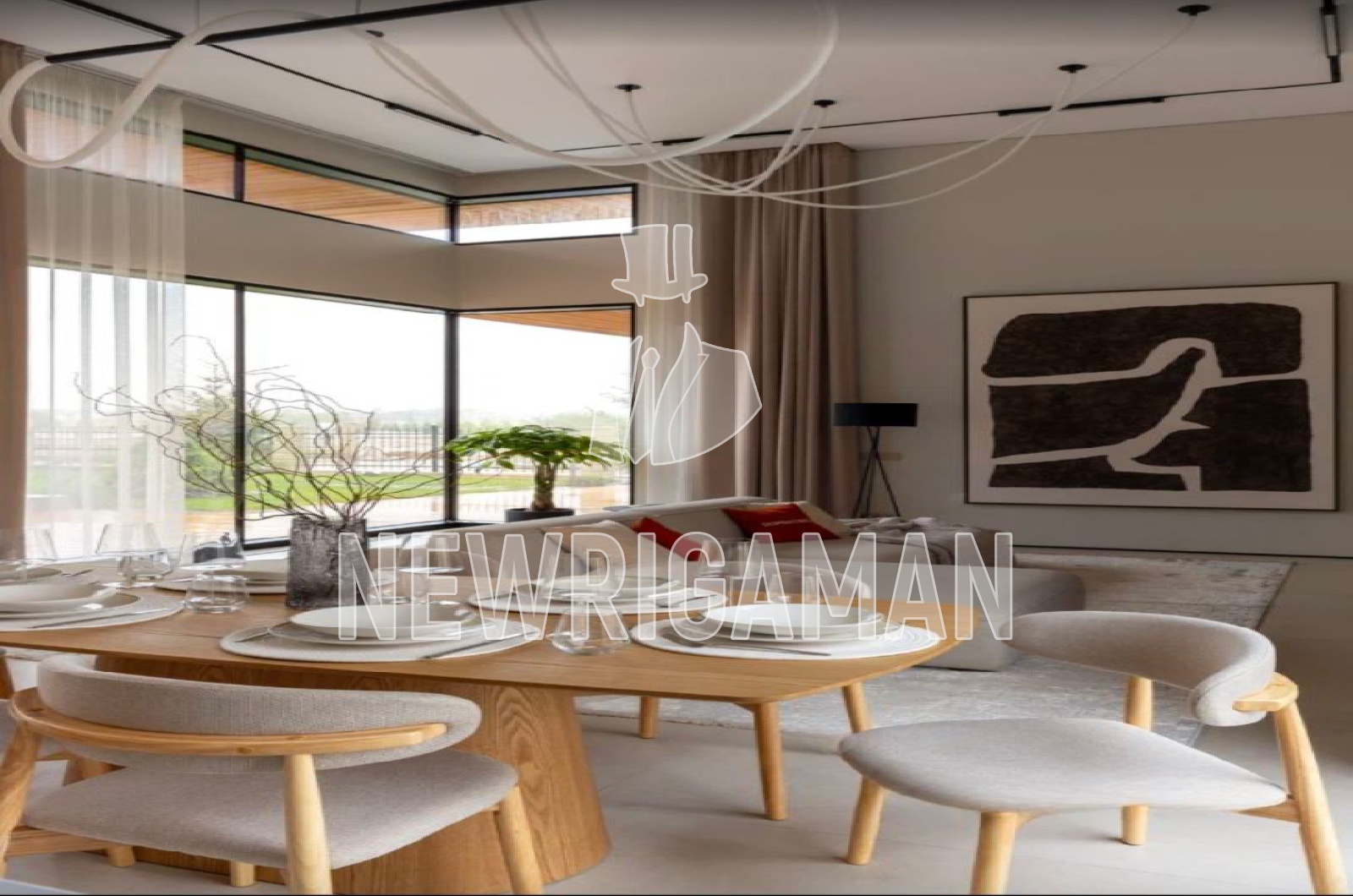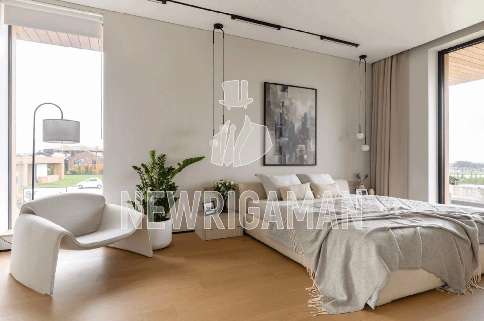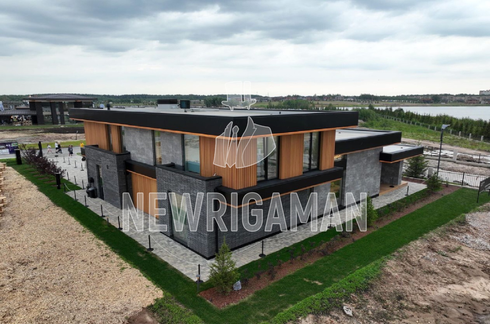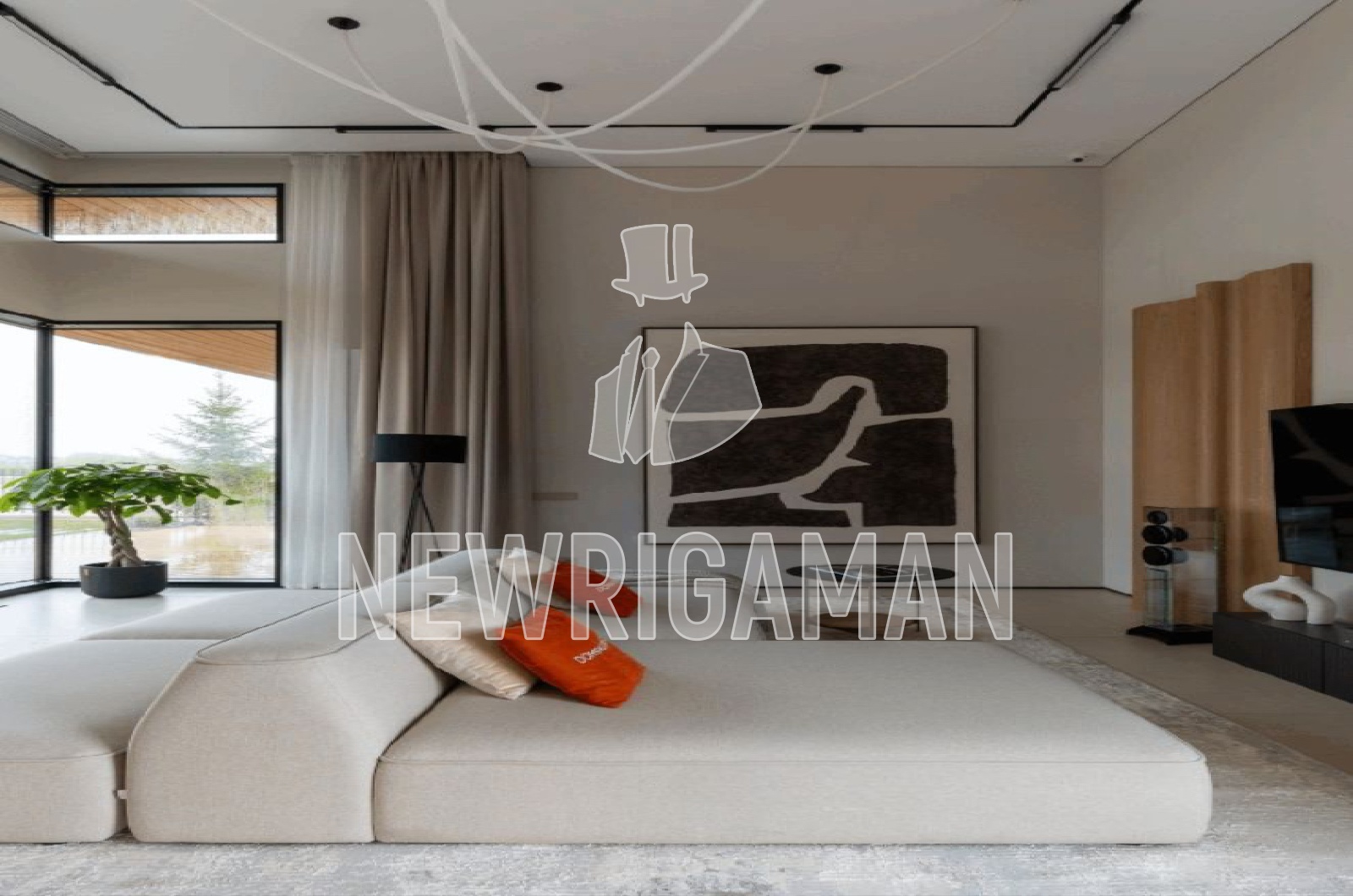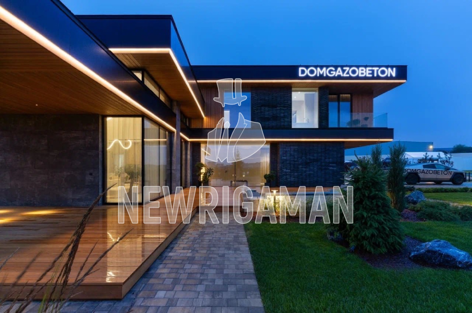 Продажа нового загородного дома площадью 283 кв.м. Новорижское шоссе, 23 км от МКАД. Коттеджный поселок Павловы озера. Современный двухэтажный коттедж в стиле хай-тек с чёткой кубической формой и плоской кровлей, фасад сочетает светлую гладкую штукатурку с тёмными декоративными вставками и крупными панорамными окнами от пола до потолка, которые задают лаконичную, почти минималистичную эстетику и обеспечивают много естественного света; у входа аккуратная застеклённая группа и небольшая терраса, архитектурный профиль строгий, в дизайн добавлены контрастные прямые линии. Интерьер выполнен в нейтральной современной гамме. Отделочные материалы премиум-уровня, панорамное остекление, продуманное встроенное освещение и лаконичная сантехника создают ощущение качественной готовности к проживанию. Участок ровной, прямоугольной формы около 12 соток с ухоженным газоном и декоративными посадками, террасой и местом для зоны отдыха.