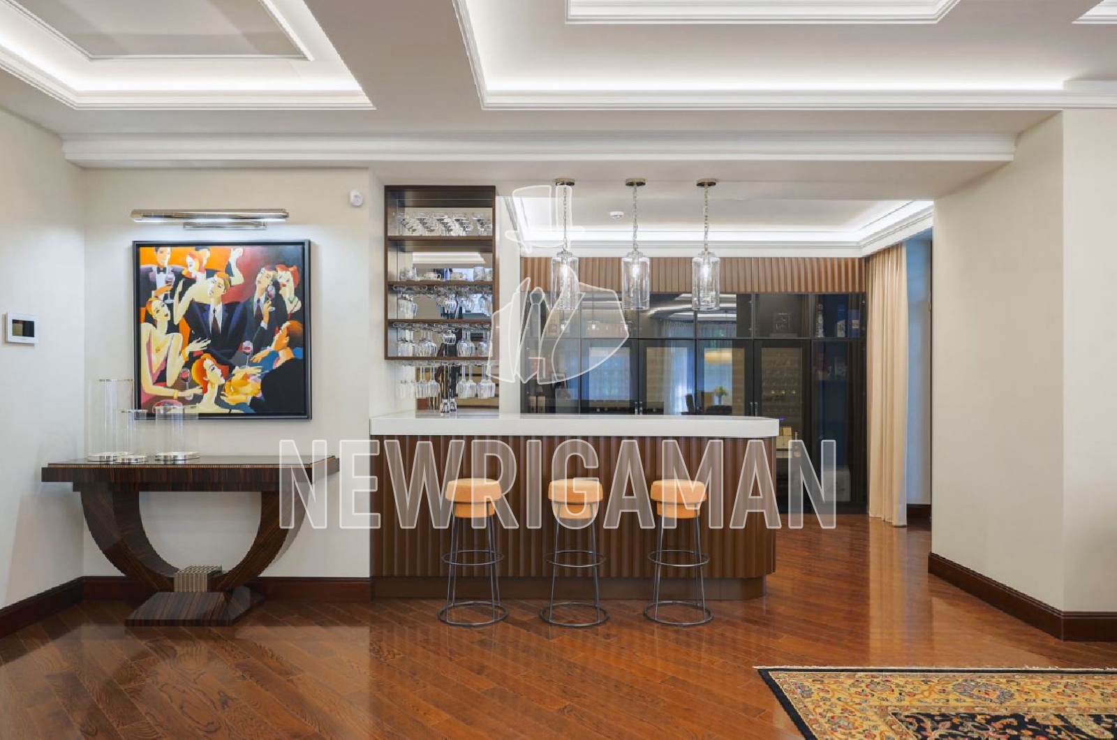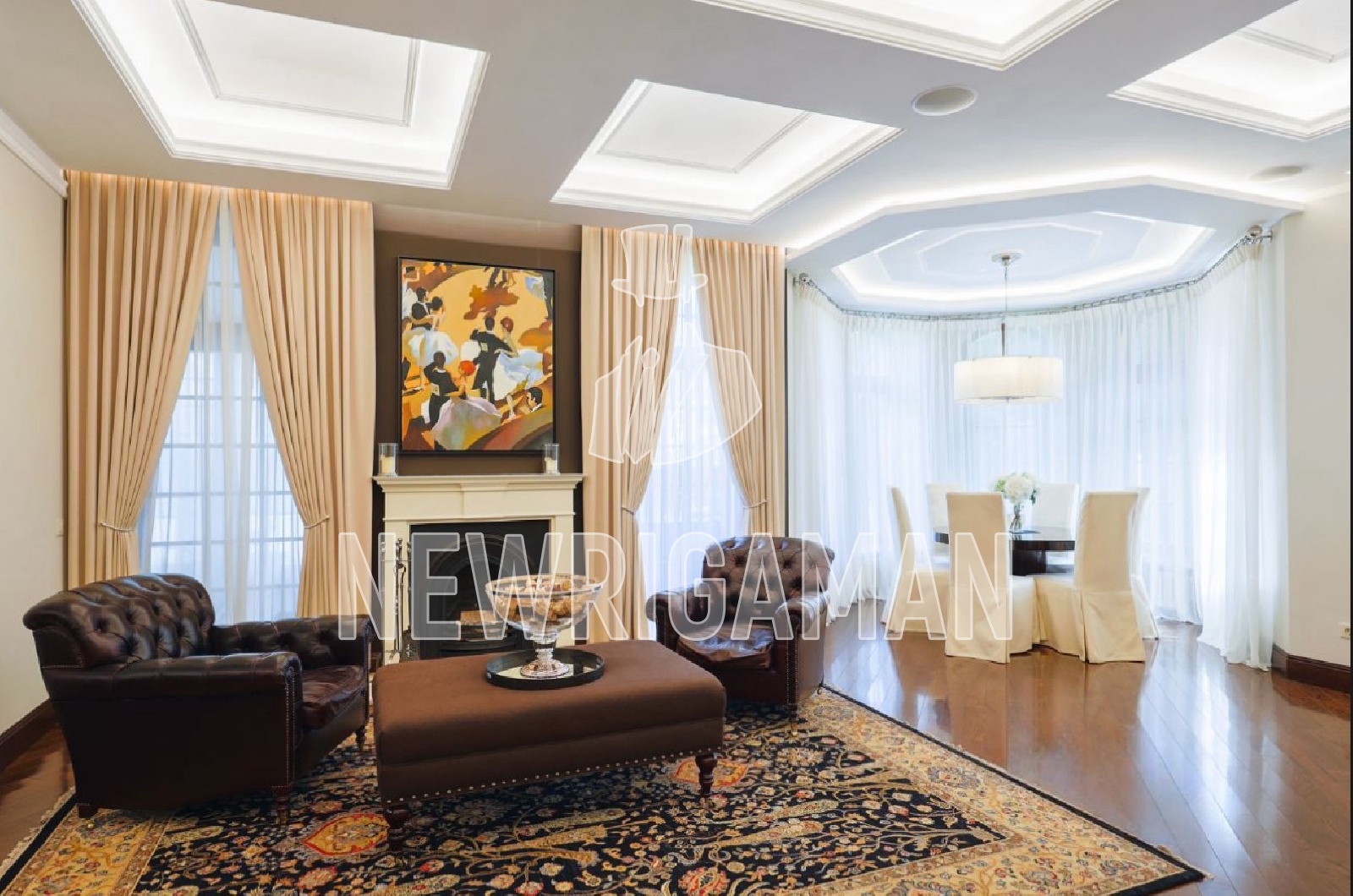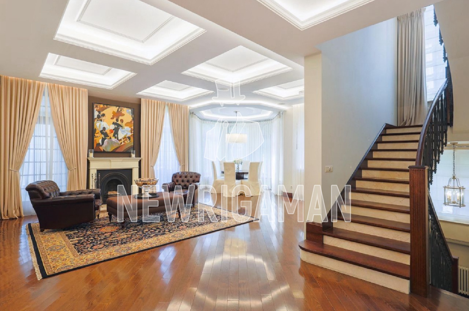 1 этаж - салонная зона с мягкой группой и выходом на террасу, библиотека/кабинет,