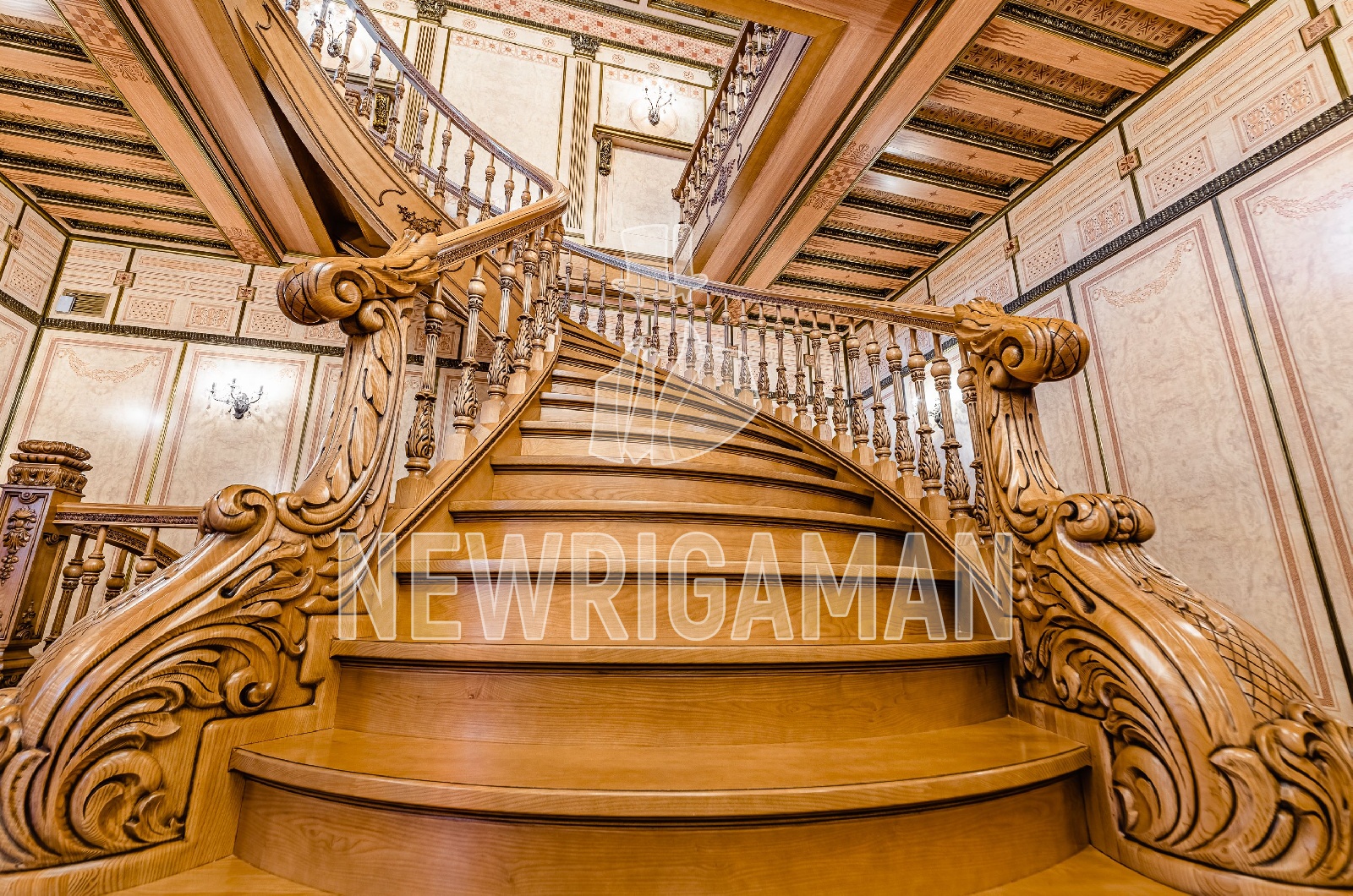 1 этаж - прихожая с гардеробной, парадный холл с резной лестницей, кухня, столовая, гостиная, гостевой с/у, два кабинета, СПА с с/у, хамам, бассейн с выходом на участок,