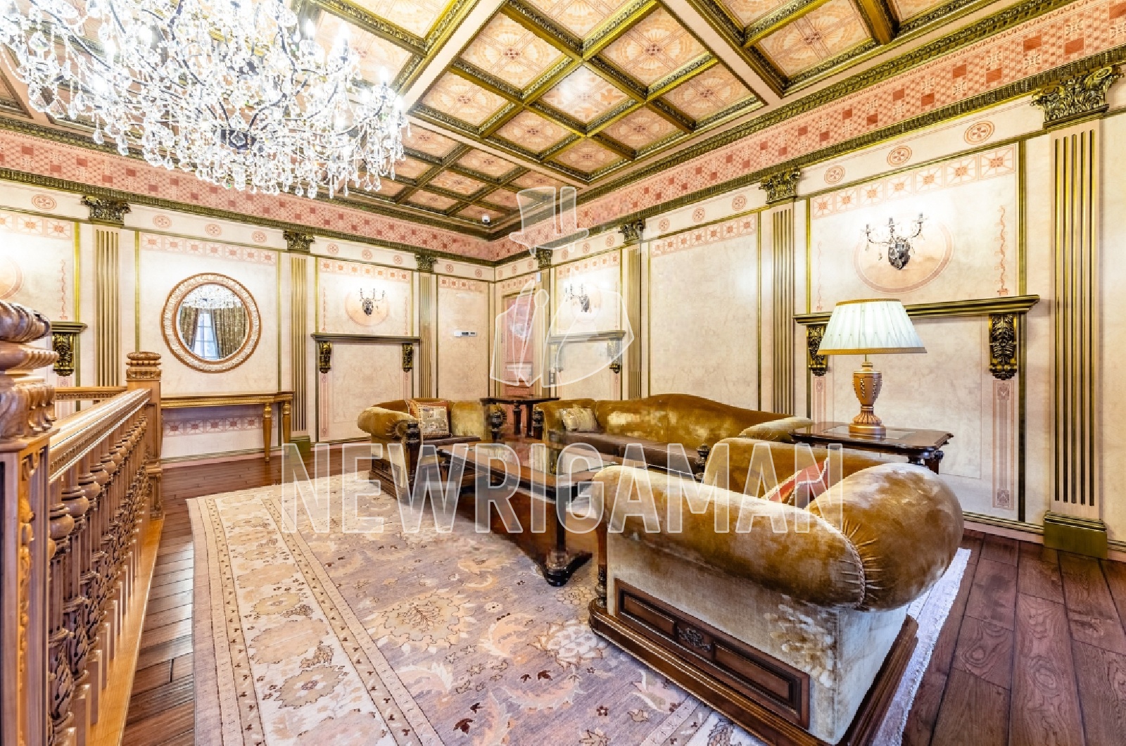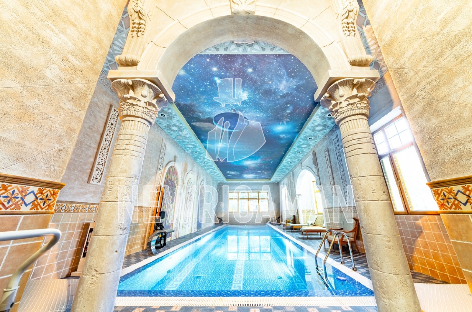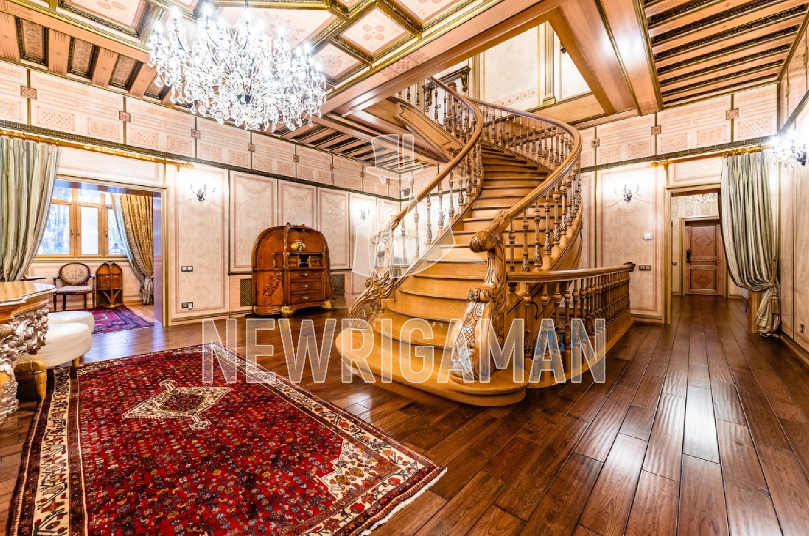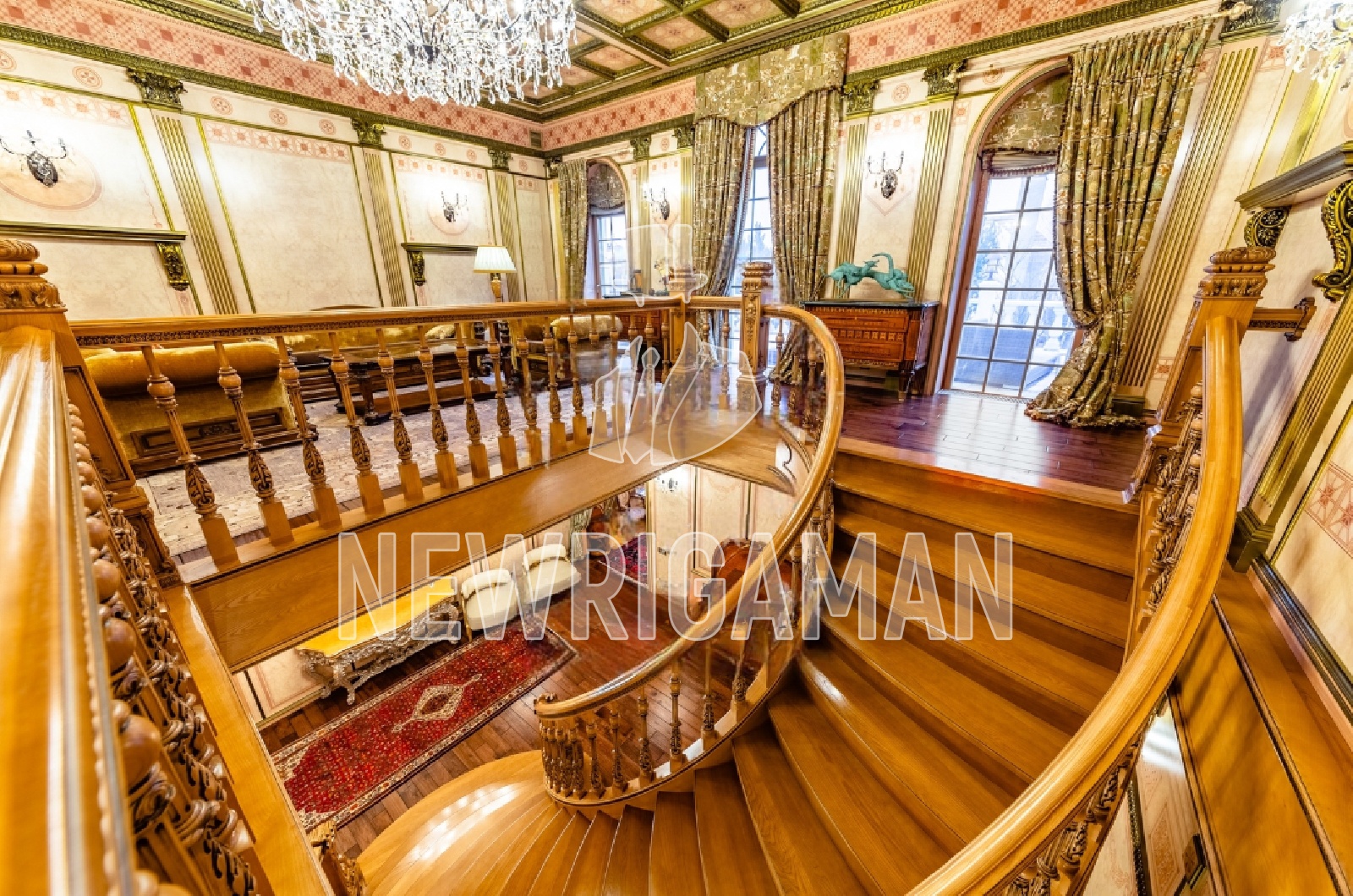 1 этаж — прихожая с гардеробной, парадный холл с резной лестницей, кухня, столовая, гостиная, гостевой с/у, два кабинета, СПА с с/у, хамам, бассейн с выходом на участок.