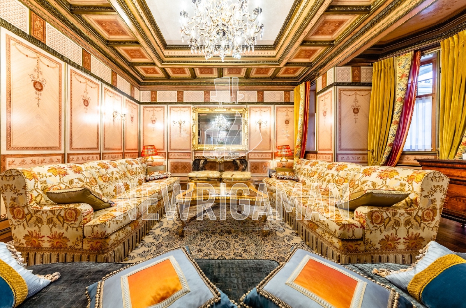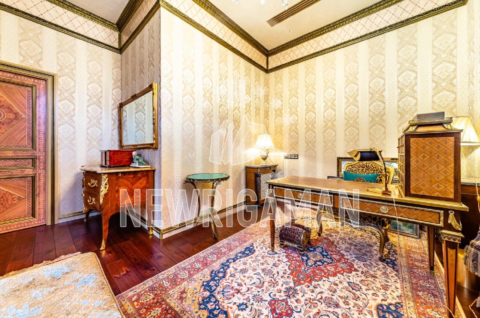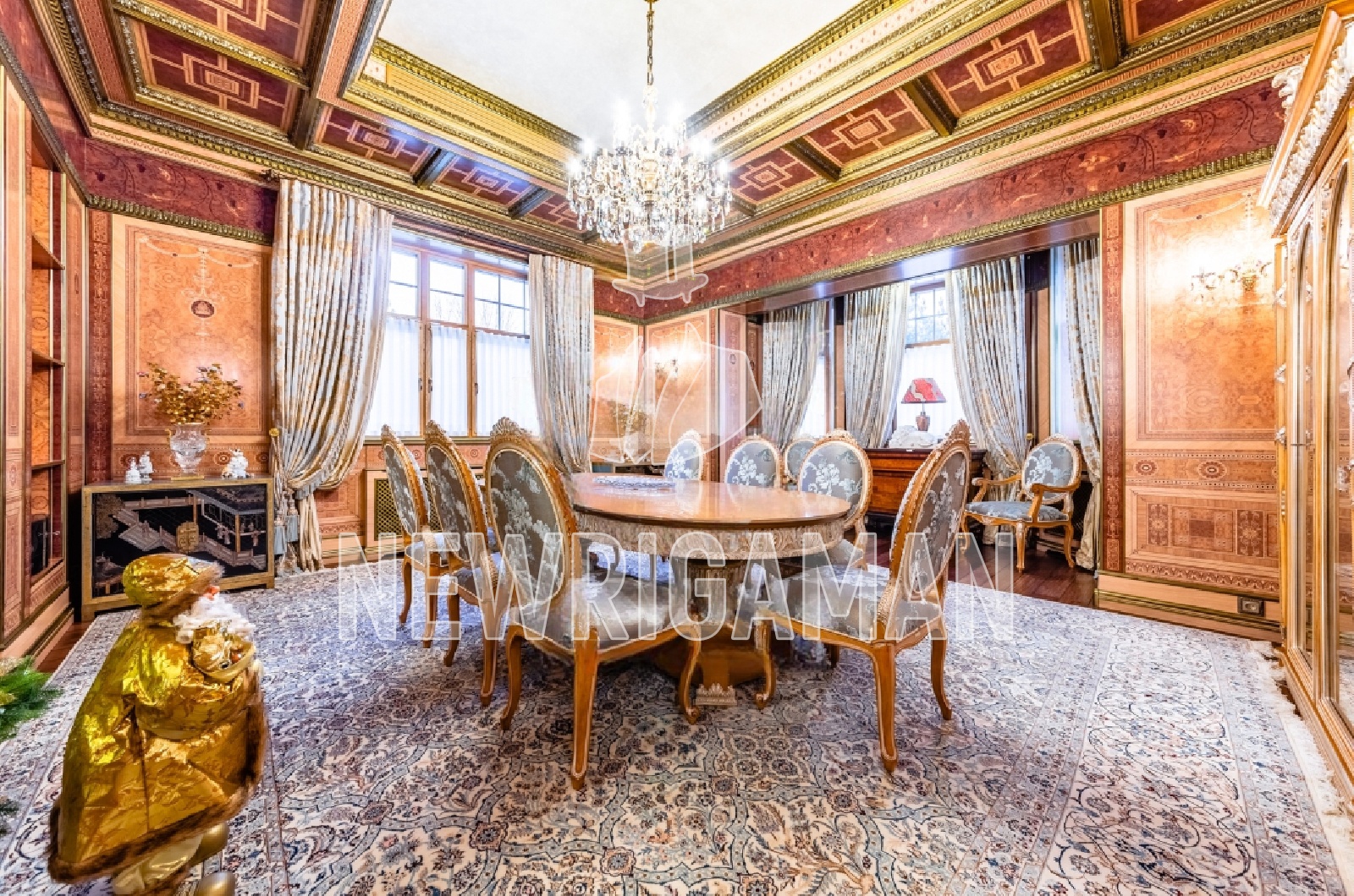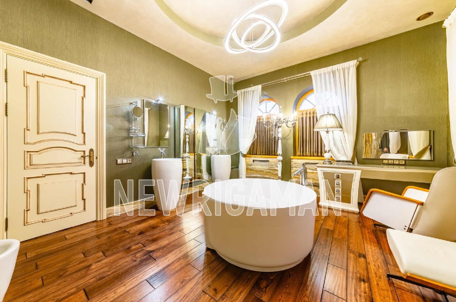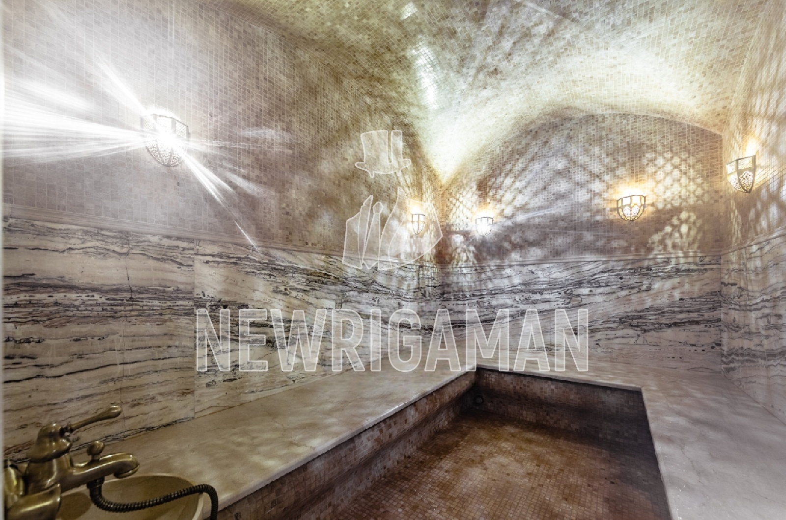 1 этаж — прихожая с гардеробной, парадный холл с резной лестницей, кухня, столовая, гостиная, гостевой с/у, два кабинета, СПА с с/у, хамам, бассейн с выходом на участок.