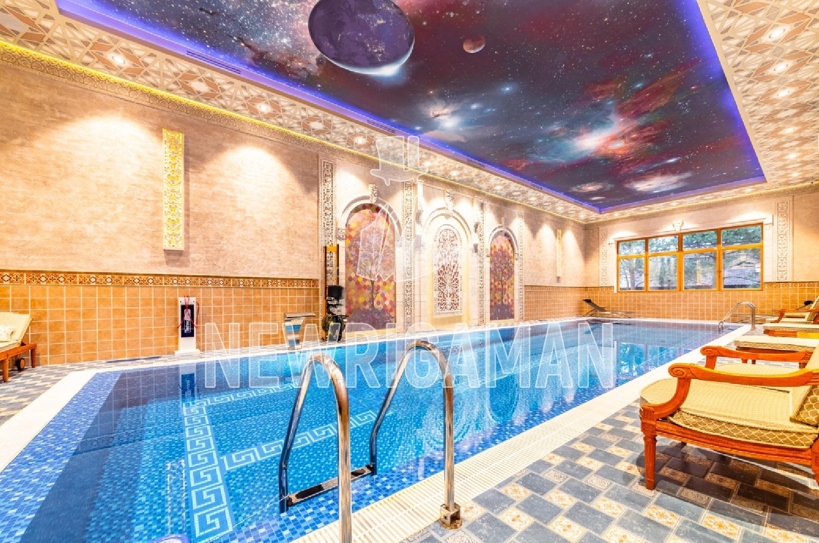 Эксклюзивное предложение! Аренда нового загородного дома с бассейном общей площадью 1000 кв.м. Новорижское шоссе, 14 км. Коттеджный поселок Павлово. Дом построен по индивидуальному проекту, в котором использованы все самые последние технологии 2020 года. Высокое качество строительства. Фасад облицован шамотной плиткой. Установлены австрийские деревянные стеклопакеты. В доме выполнена дорогая авторская отделка. В отделке интерьера использованы итальянские деревянные панели с рисунком, сделанные под заказ. Полы из массива дерева гикори (США). Установлена итальянская кухня с гранитной столешницей (вставки из оникса с подсветкой). Встроенная техника General Electric серии Monogram и встроенная техника Miele. В санузлах и ванных комнатах установлена сантехника Agape и Villeroy & Boch. Большой плавательный бассейн с неповторимой атмосферой размером 16 х 4 м и интерактивной подсветкой (28000 звезд). Шикарная СПАЗОНА с подсветкой (8000 звезд) и мраморным хамамом на 5 человек. Кинозал на 10 человек с акустикой BG radio (США). По всему дому разведена система приточно-вытяжной вентиляции и система увлажнения Buhler-ANS. Дом расположен на прилесном участке 35 соток в готовой и очень тихой части поселка. На участке также находятся: дом для приемов площадью 160 кв.м. и гостевой дом с гаражом на 2 авто и крытой парковкой на 4 авто площадью 140 кв.м. Парковка и дорожки выполнены из брусчатки малиновый кварцит. Освещение фирмы Robers. На участке выполнен ландшафтный дизайн с естественным рельефом. Во дворе находятся детская и спортивная площадки. В приватной части участка расположена уютная беседка из ротанга. На дом выделена мощность 48 кВт. Дополнительно установлена своя газовая электроподстанция Generac мощностью 28 кВт. Периметр участка и дом находятся под видеонаблюдением и охраной.