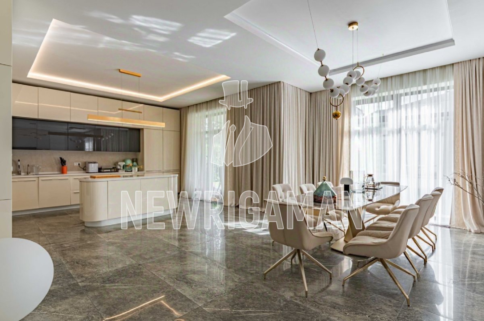 Продажа загородного дома площадью 300 кв.м. Новорижское шоссе, 23 км от МКАД. Коттеджный поселок Новорижский. Прекрасный дом для большой семьи, построен в 2 этажа. Интерьер выполнен в современном стиле. На участке 10 соток расположен Спа-комплекс с бассейном, тренажерным залом и сауной. Парковка на 2 м/м