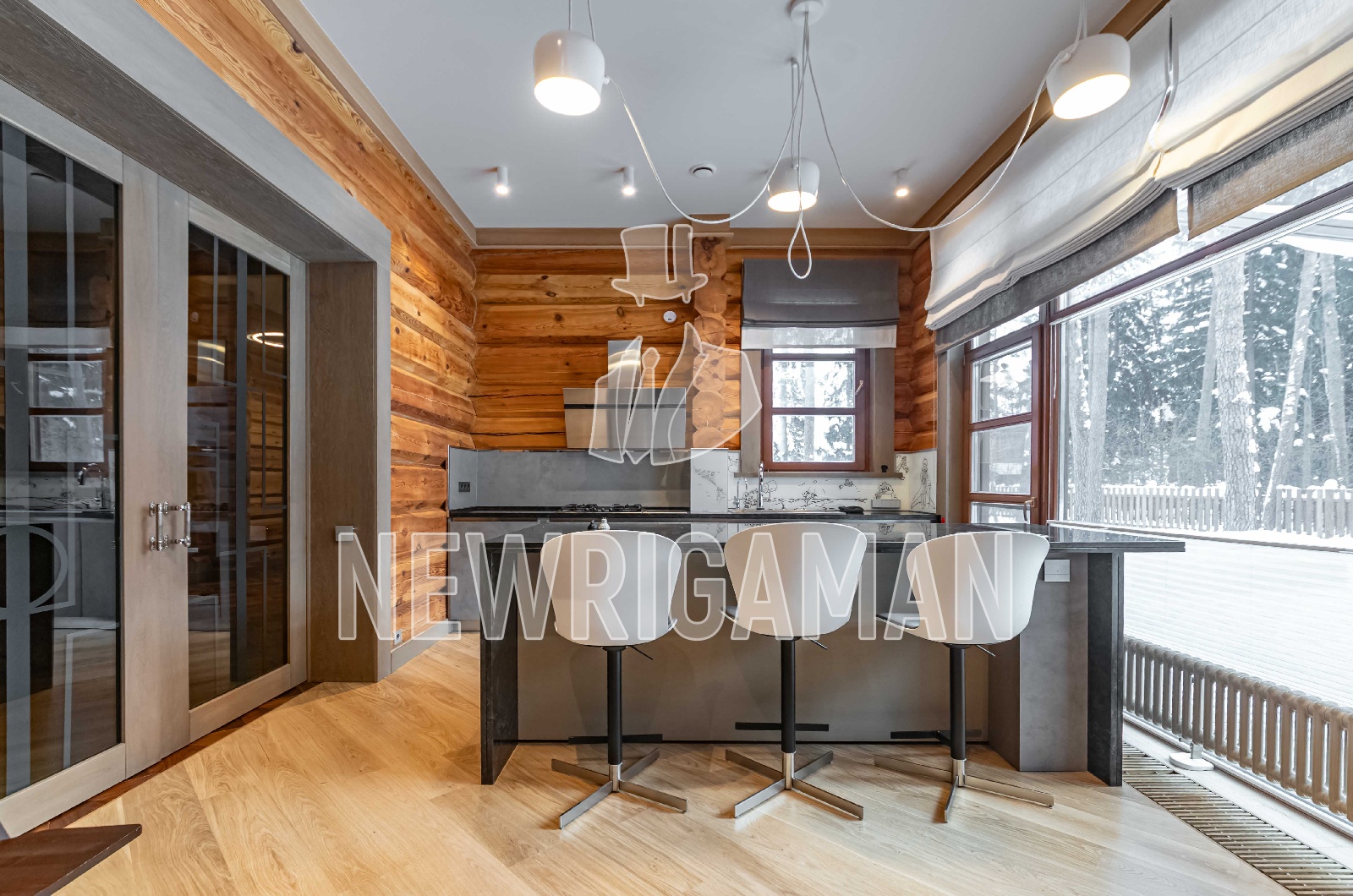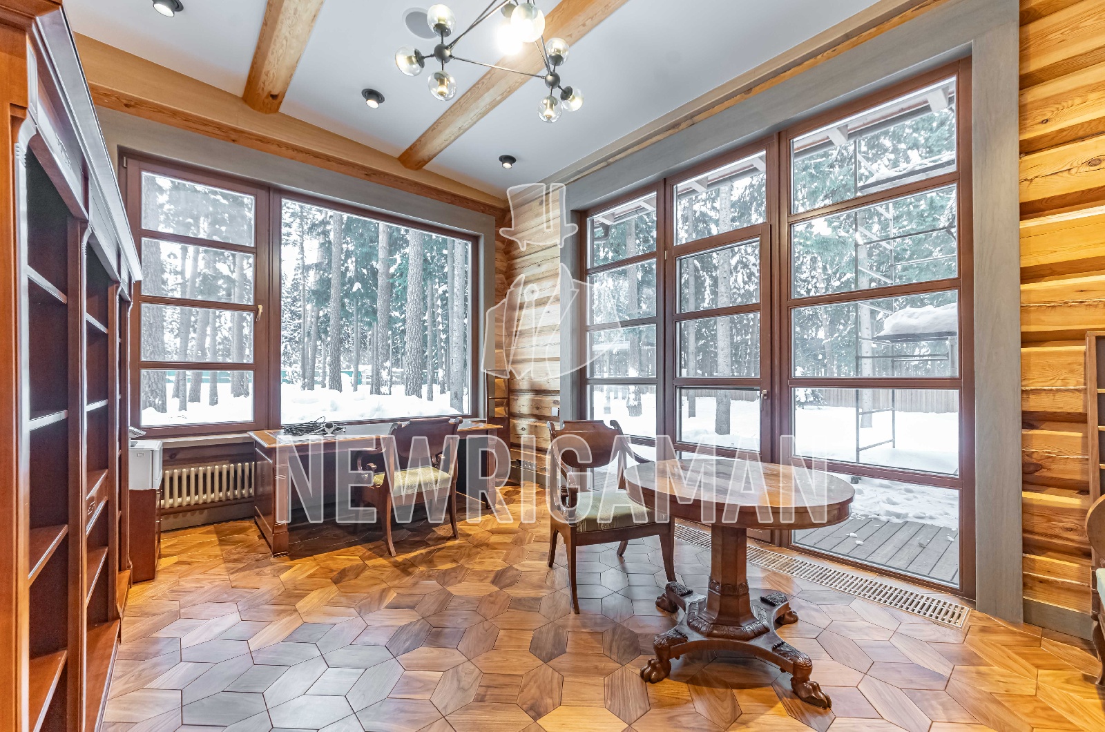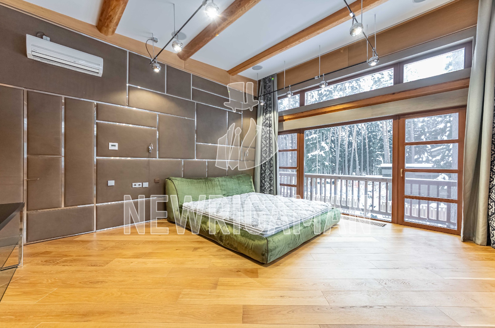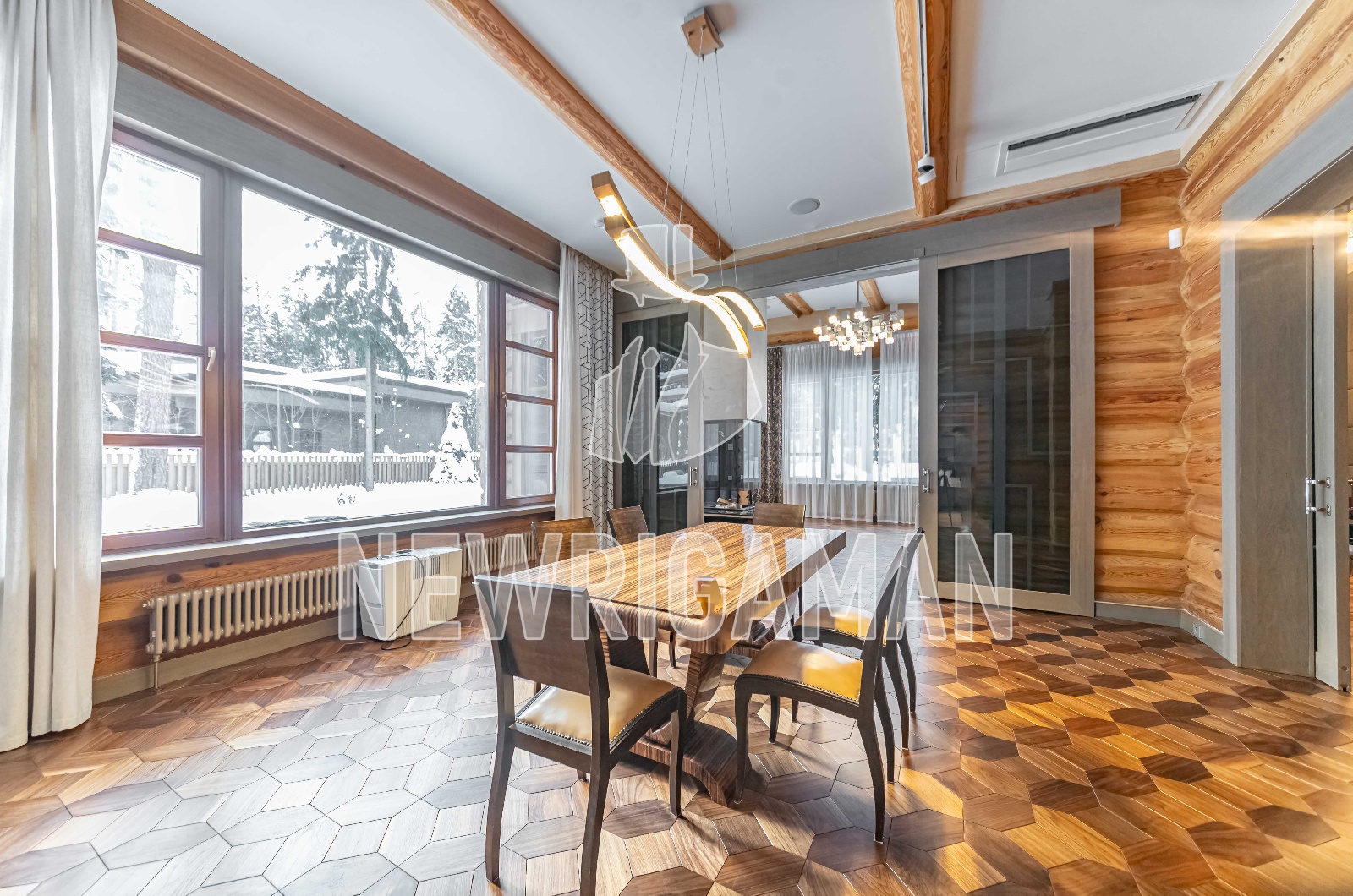 Продажа загородного дома площадью 810 кв.м., Новорижское шоссе, 16 км от МКАД. Коттеджный поселок Вымпел. Дом построен в 2 этажа. Выполнена великолепная отделка с использованием только высококачественных материалов, продуманное планировочное решение. Большая площадь остекления с потрясающими видами на вековые леса. Участок 90 соток. На участке расположены банный комплекс (100 кв.м.) с зоной отдыха, кухней, спальней с с/у, душевой, купелью, настоящей русской баней и с/у, а также гараж на 3 м/м (200 кв.м.) с котельной, помещением для хранения и удобным блоком для персонала, с 2 спальнями, с/у и кухней.
