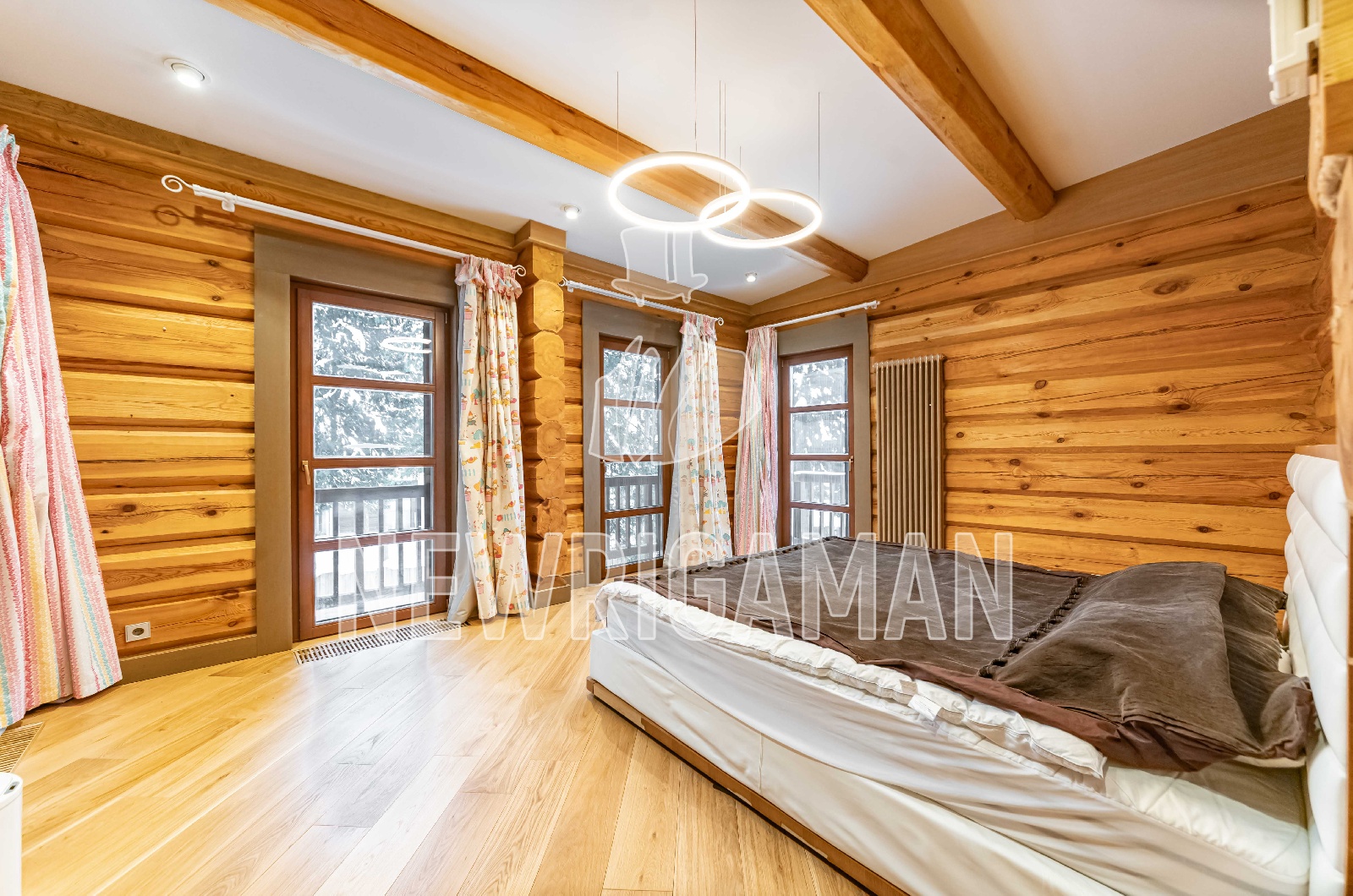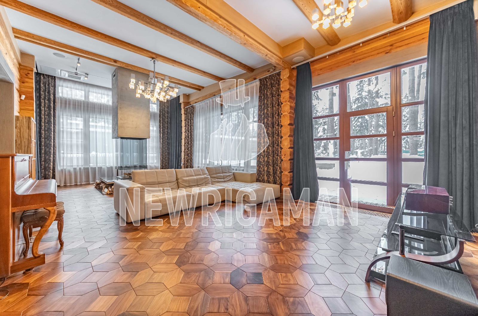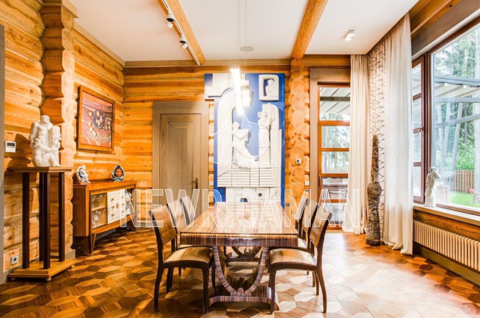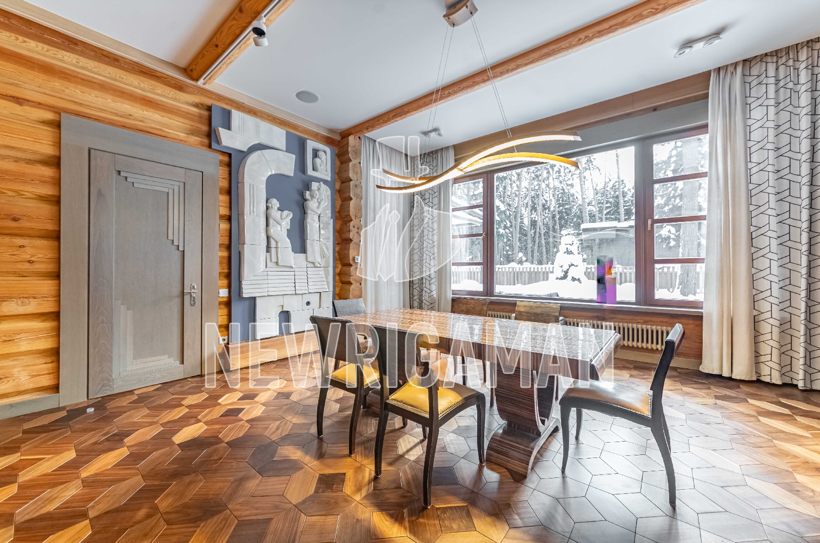 Продажа загородного дома площадью 810 кв.м., Новорижское шоссе, 16 км от МКАД. Коттеджный поселок Вымпел. Дом построен в 2 этажа. Выполнена великолепная отделка с использованием только высококачественных материалов, продуманное планировочное решение. Большая площадь остекления с потрясающими видами на вековые леса. Участок 90 соток. На участке расположены банный комплекс (100 кв.м.) с зоной отдыха, кухней, спальней с с/у, душевой, купелью, настоящей русской баней и с/у, а также гараж на 3 м/м (200 кв.м.) с котельной, помещением для хранения и удобным блоком для персонала, с 2 спальнями, с/у и кухней.