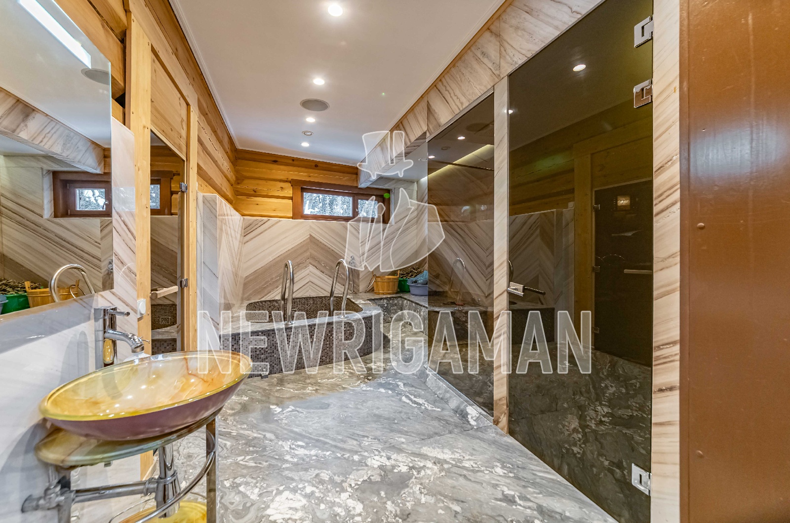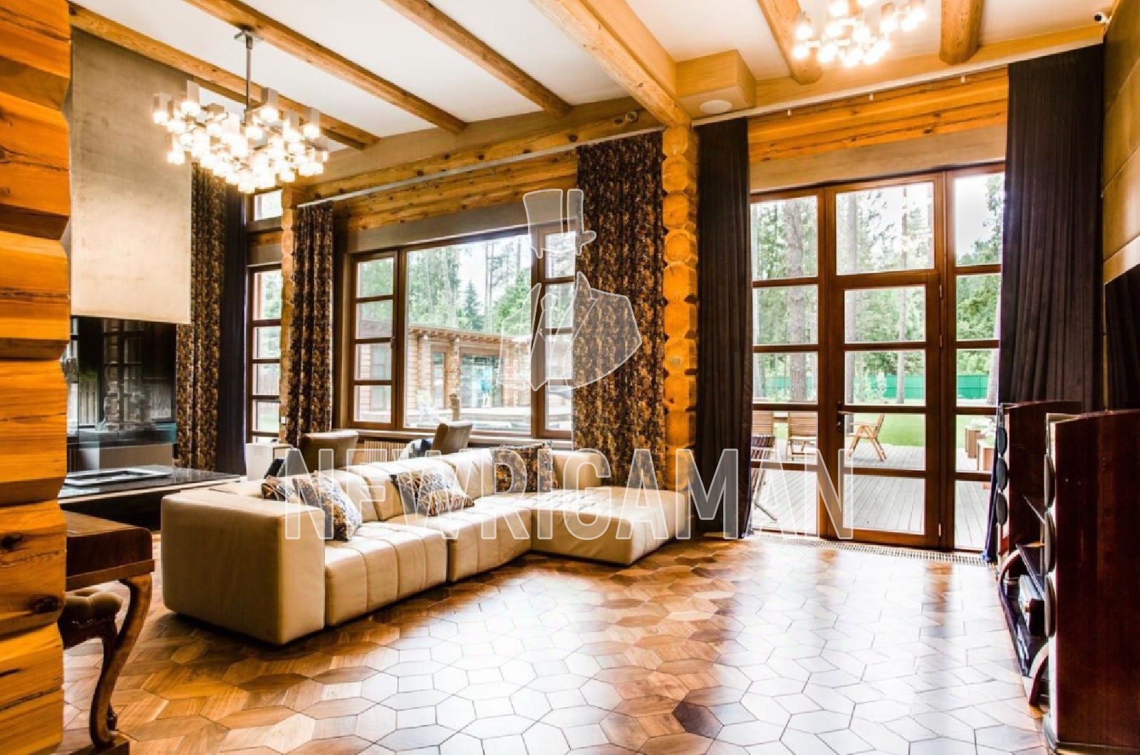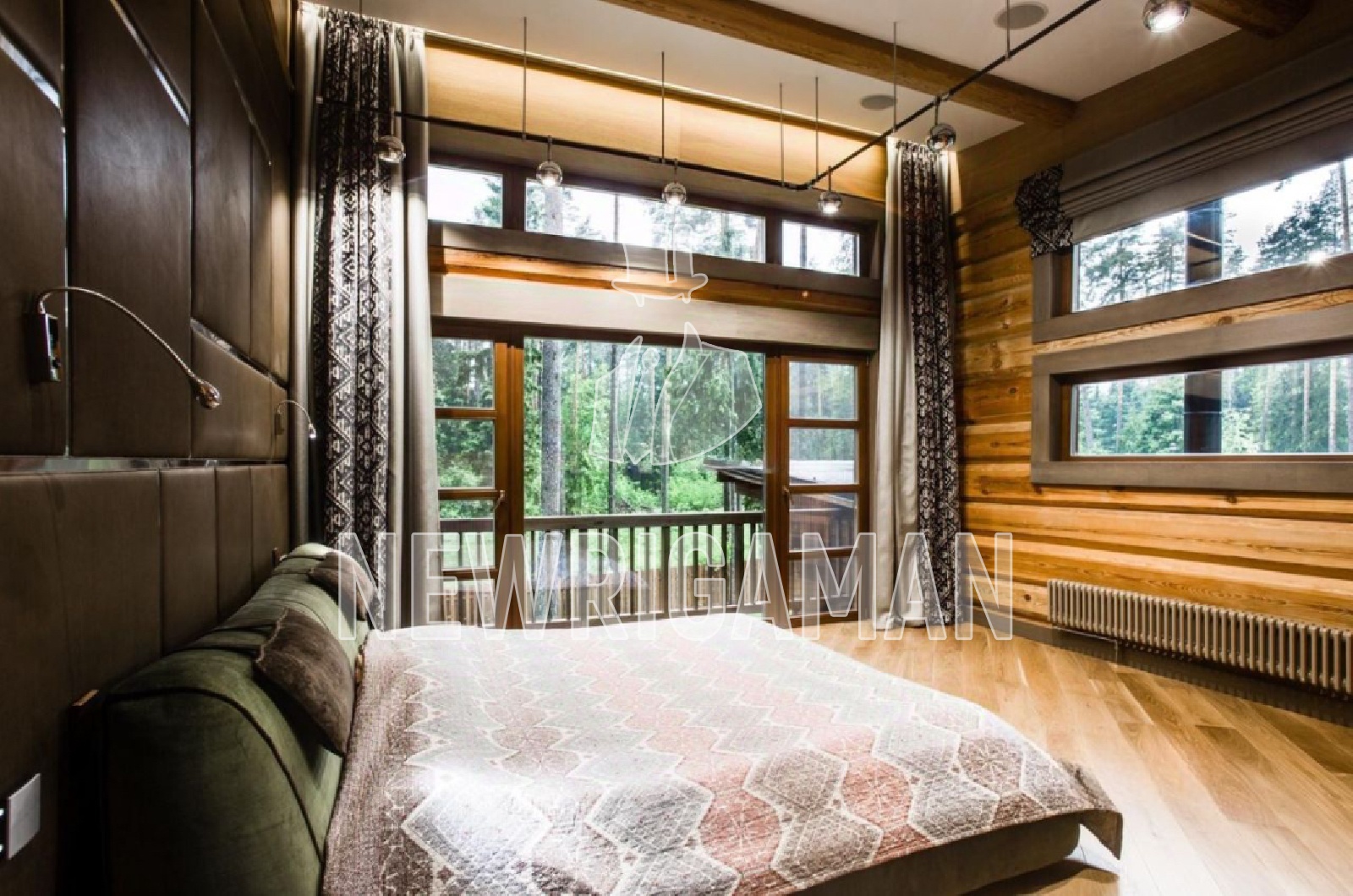 Аренда загородного дома площадью 810 кв.м., Новорижское шоссе, 16 км от МКАД. Коттеджный поселок Вымпел. Дом построен в 2 этажа. Выполнена великолепная отделка с использованием только высококачественных материалов, продуманное планировочное решение. Большая площадь остекления с потрясающими видами на вековые леса. Участок 90 соток. На участке расположены банный комплекс (100 кв.м.) с зоной отдыха, кухней, спальней с с/у, душевой, купелью, настоящей русской баней и с/у, а также гараж на 3 м/м (200 кв.м.) с котельной, помещением для хранения и удобным блоком для персонала, с 2 спальнями, с/у и кухней.