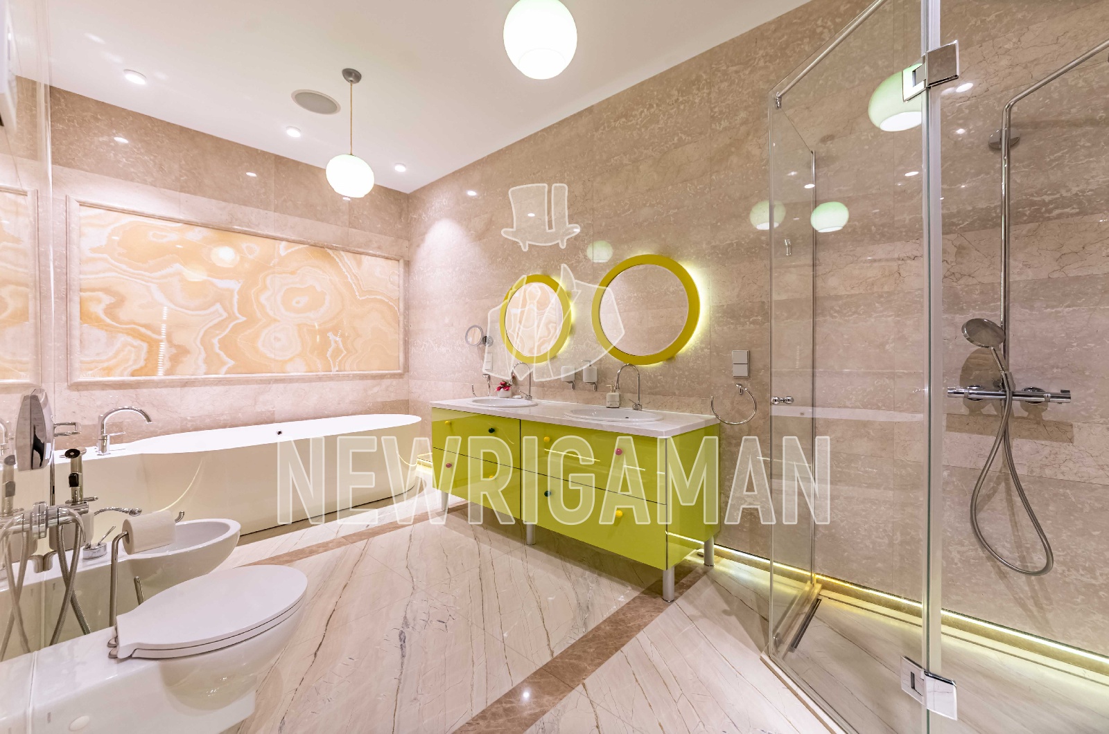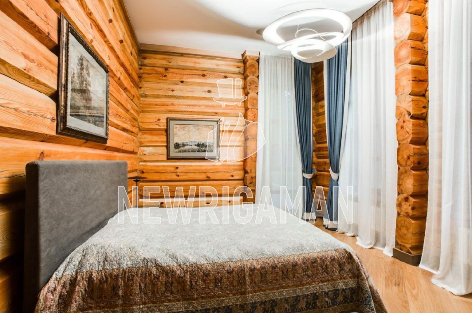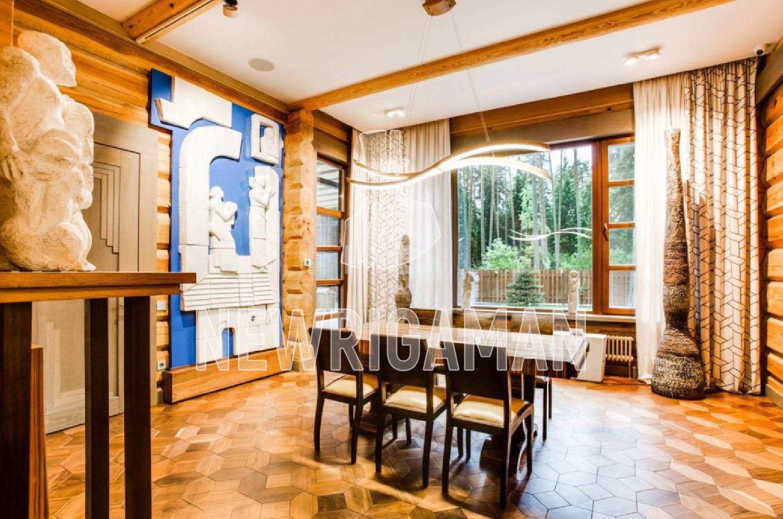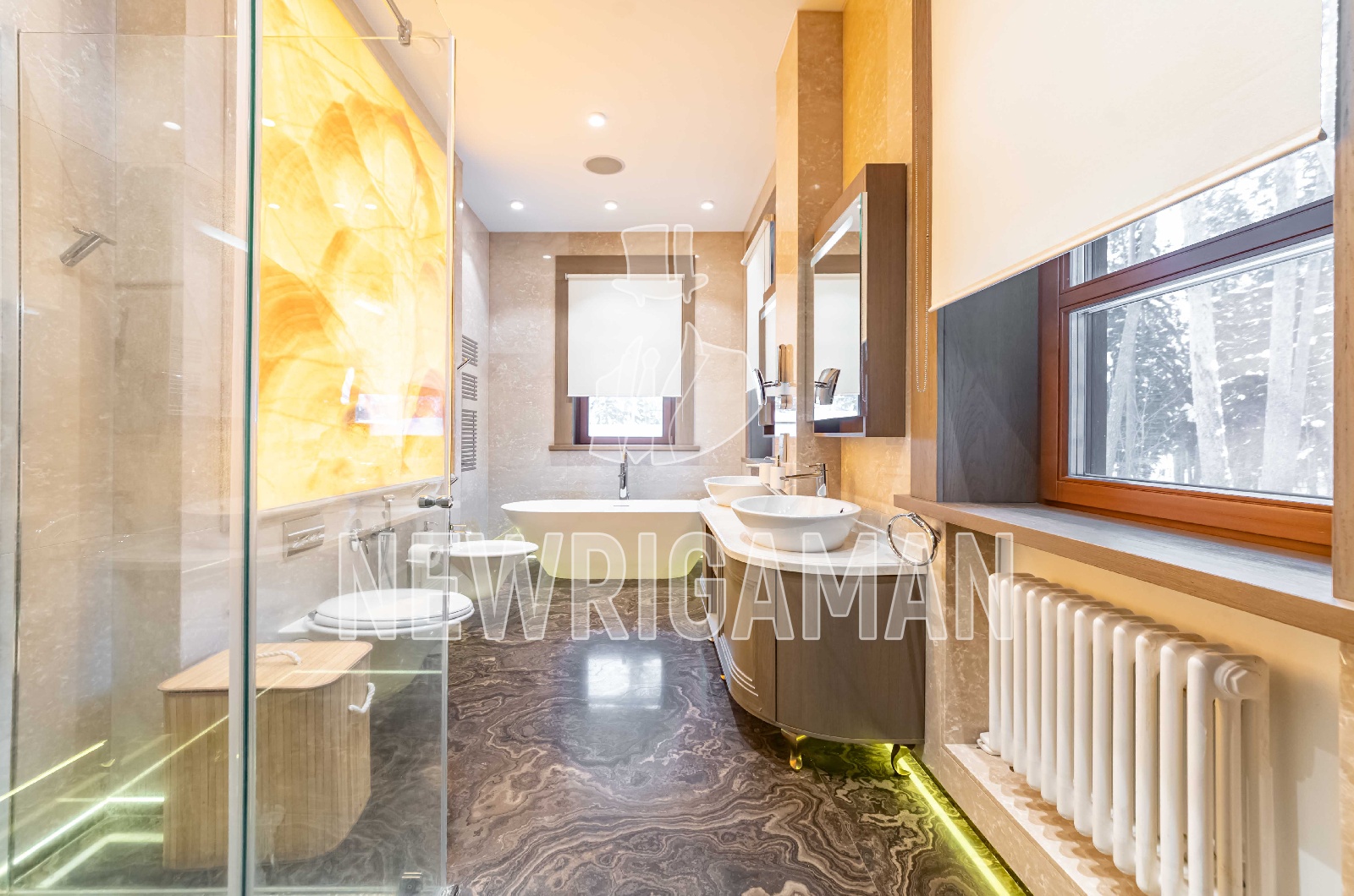 Аренда загородного дома площадью 810 кв.м., Новорижское шоссе, 16 км от МКАД. Коттеджный поселок Вымпел. Дом построен в 2 этажа. Выполнена великолепная отделка с использованием только высококачественных материалов, продуманное планировочное решение. Большая площадь остекления с потрясающими видами на вековые леса. Участок 90 соток. На участке расположены банный комплекс (100 кв.м.) с зоной отдыха, кухней, спальней с с/у, душевой, купелью, настоящей русской баней и с/у, а также гараж на 3 м/м (200 кв.м.) с котельной, помещением для хранения и удобным блоком для персонала, с 2 спальнями, с/у и кухней.