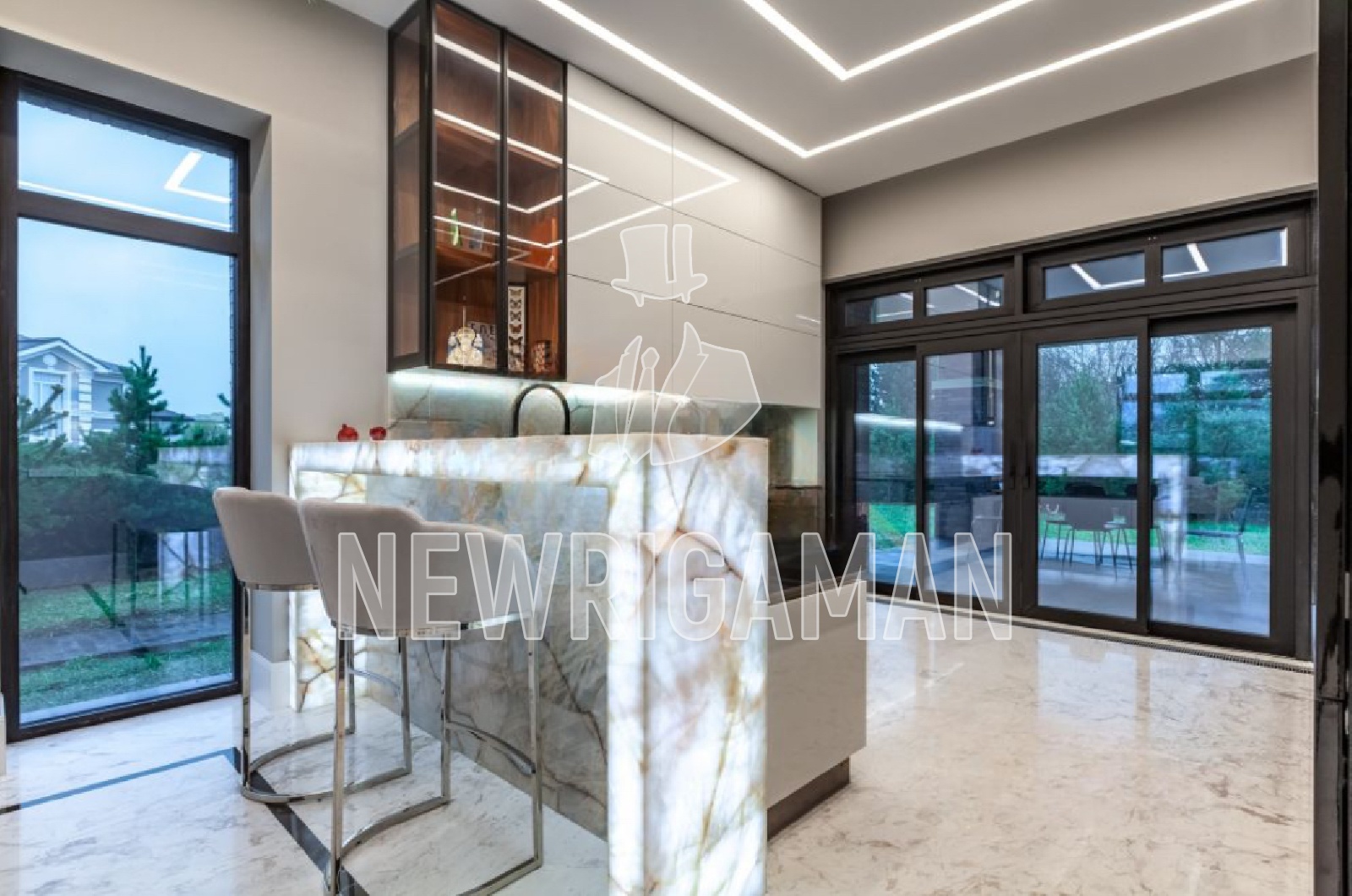 В продаже загородный дом общей площадью 540 кв. м. Новорижское шоссе, 28 км от МКАД. Коттеджный поселок Новорижский. Дом построен в 2 этажа высочайшего качества и выполнен по самому дорогому варианту мастерами и строителями. Качественная отделка в светлых тонах. Первый этаж полностью в мраморе, слэбы по 3 метра греческий камень, ванные итальянский мрамор. Кухня с дизайнерской техникой. Заложены решения для хаммам на первом этаже и спортзал. Стильная парковка в современном стиле с панорамными окнами. Живописный участок 19, 5 соток.