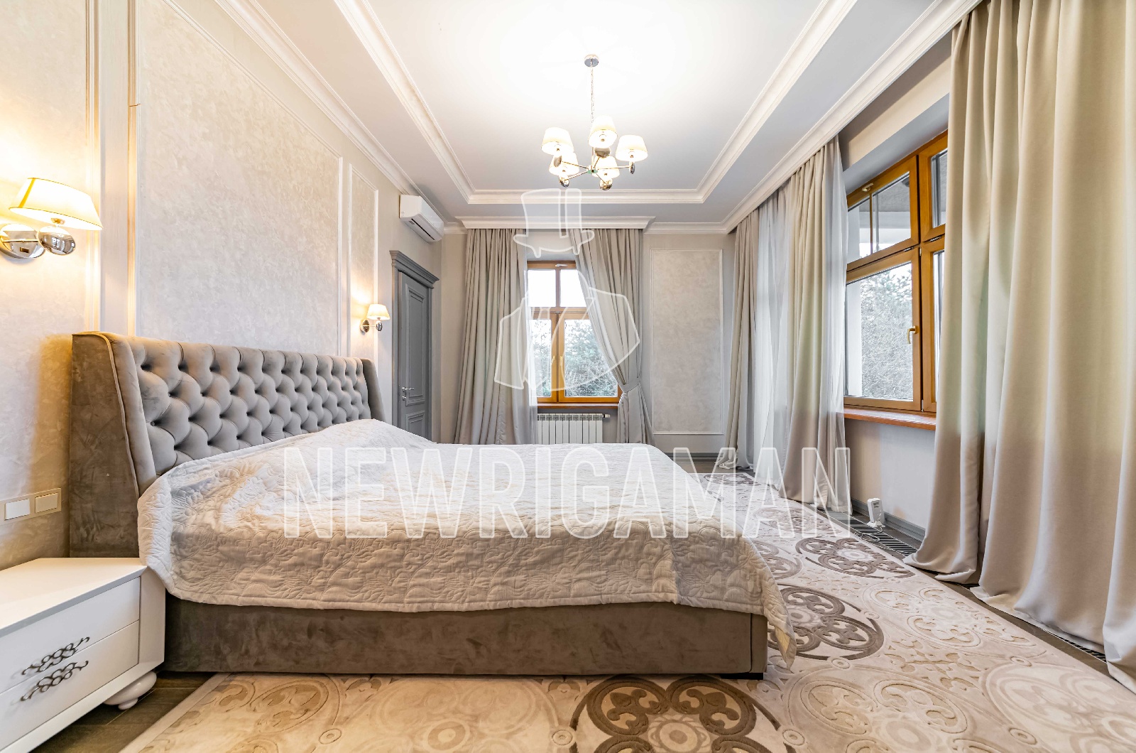 Продажа нового загородного дома площадью 506 кв.м. Новорижское шоссе 12 км. Коттеджный поселок Новахово. Коттедж построен в 2 этажа под ключ. Роскошная отделка с дорогой мебелью в современном стиле. Полностью оснащен всей необходимой техникой от мировых производителей. Просторный участок 20 соток с ландшафтным дизайном. Также на участке расположен домик охраны и навес на 2 м/м.