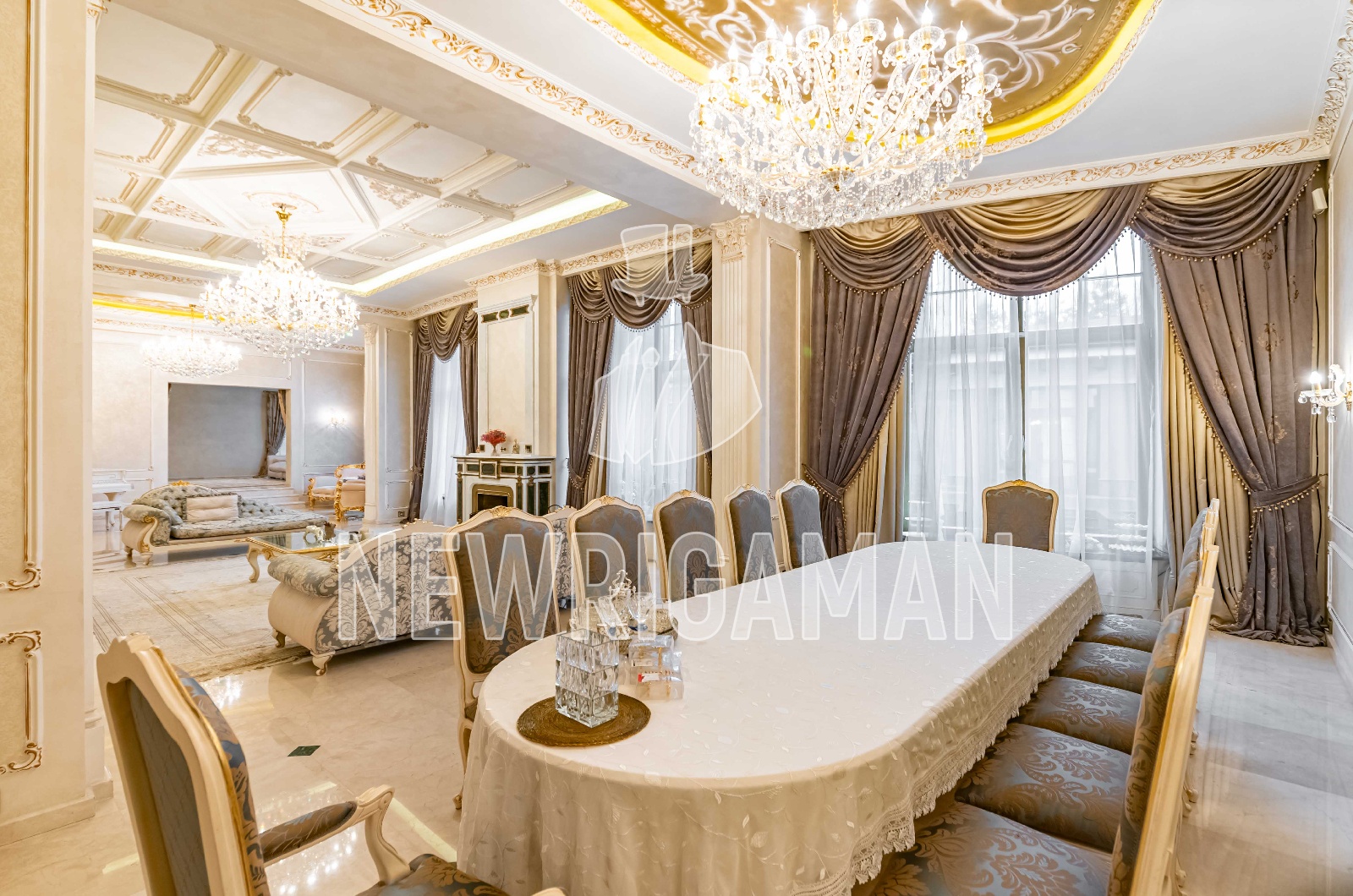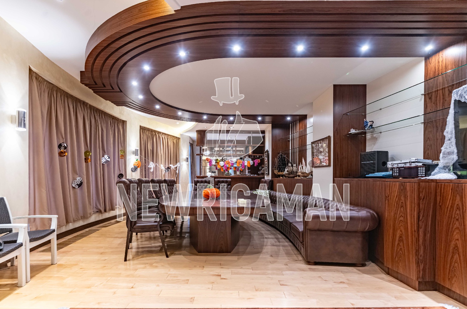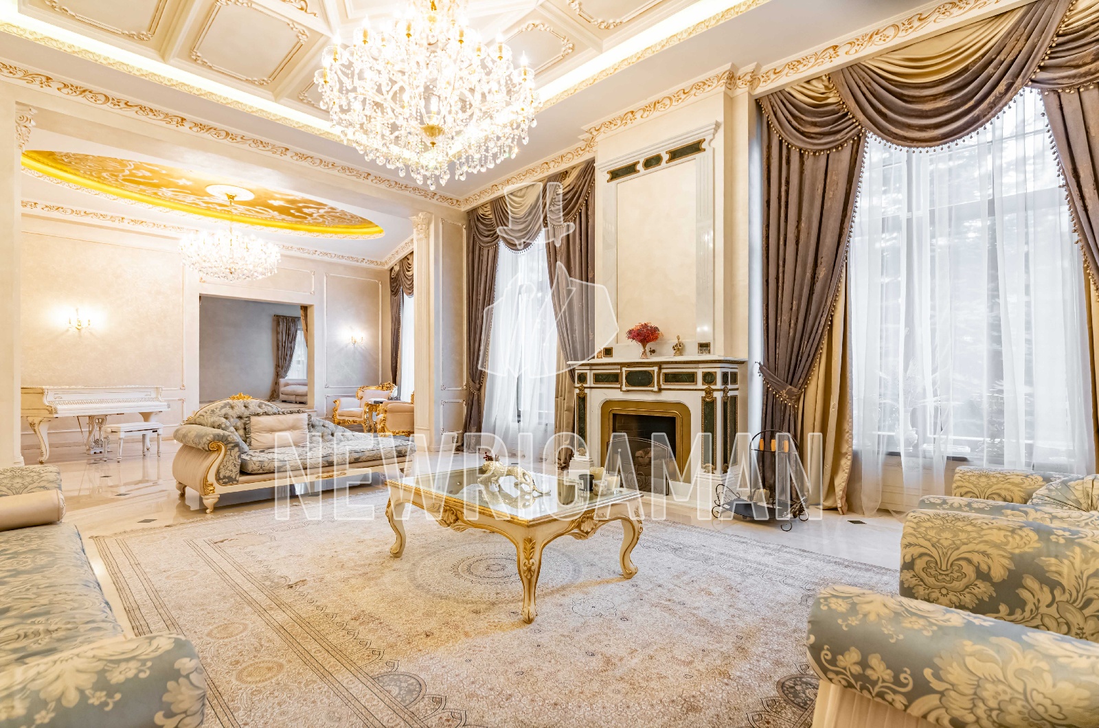 1 этаж - холл, гардеробная, гостевой с/у, гостиная с камином, столовая, кабинет, домашний кинотеатр, кухня с большим подсобным помещением, постирочная, с/у, котельная, гараж на 2 м/м,
