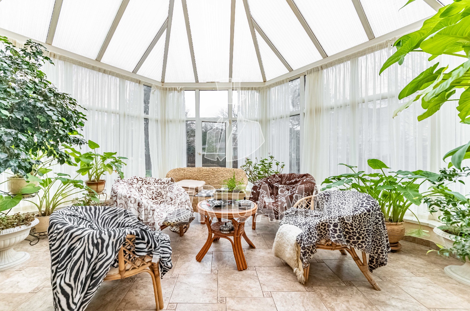 1 этаж - холл, 2 гардеробных, кабинет, с/у, кухня, зимний сад, столовая, гостиная, гараж на 2 автомобиля, котельная,
