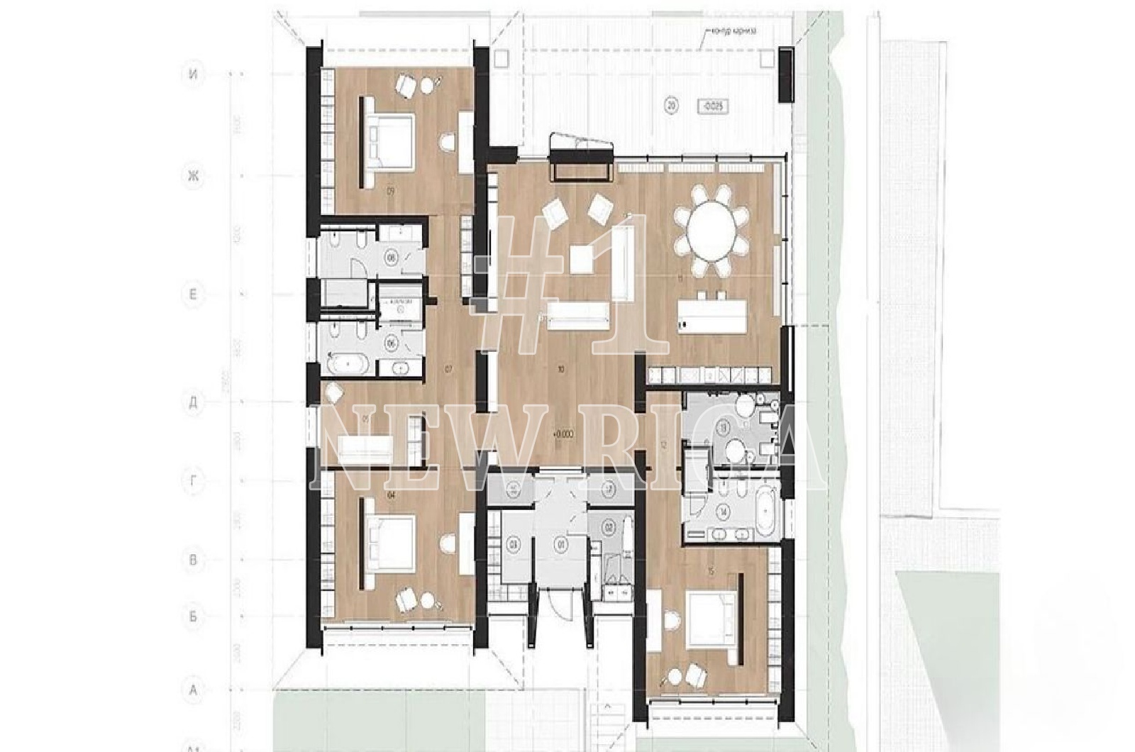 холл, кухня-гостиная-столовая, мастер-спальня с гардеробной и с/у, спальня с с/у, спальня, кабинет/гостевая спальня, ванная комната, гардеробная, постирочная, котельная, терраса с барбекю.