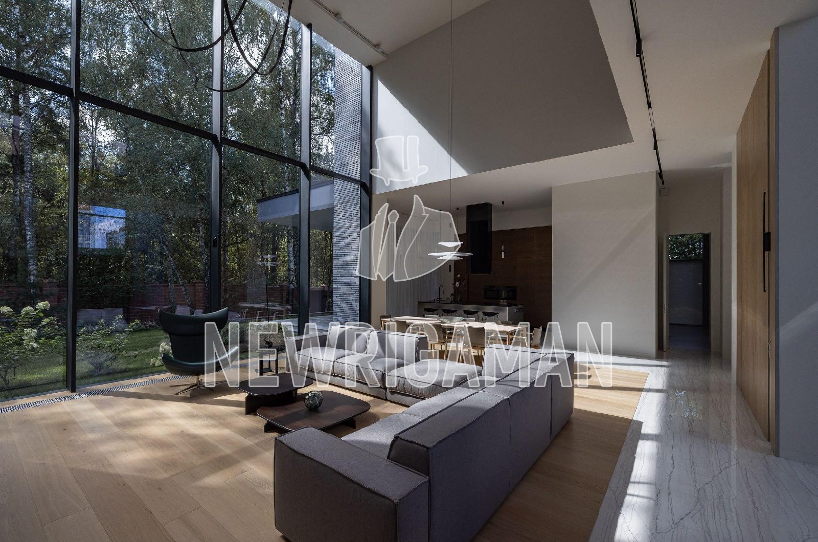 Продажа современного загородного дома площадью 586 кв.м. Новорижское шоссе, 12 км от МКАД. Коттеджный поселок Прозорово. В этом доме каждая деталь продумана до совершенства. Роскошная авторская отделка выполнена с использованием премиальных материалов и предметов интерьера от культовых европейских брендов: Baxter, Flamingo, Bonaldo, Ditre (Италия) и кухня Leicht (Германия). Элегантная мебель, изысканное освещение и современная техника создают атмосферу безупречного комфорта и стиля. Главное пространство дома впечатляет вторым светом, панорамным остеклением с видами на живописный лес и завораживающими потолками высотой до 8 метров - здесь ощущаешь масштаб, свободу и гармонию с природой. Уединённый участок площадью 21 сотка окружён лесом, даря абсолютную приватность, тишину и ощущение эксклюзивного загородного резиденса, где всё создано для вдохновения и полноценного отдыха.