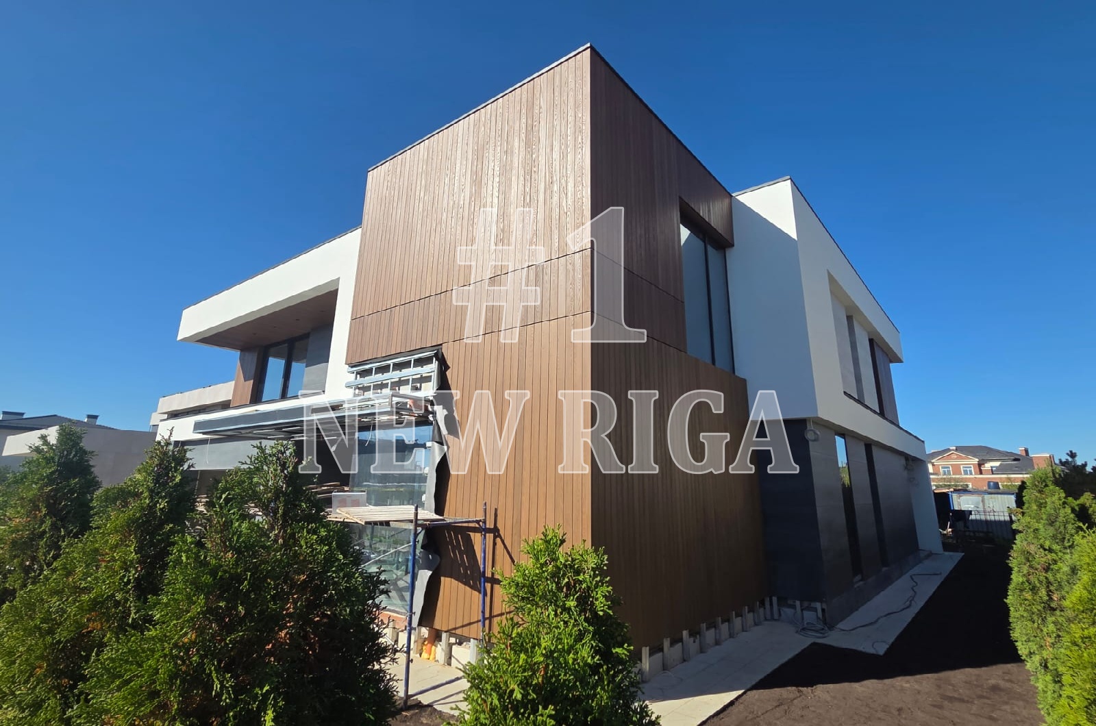 Продажа загородного дома общей площадью 454 кв.м. Коттеджный поселок Миллениум Парк. Новорижское шоссе, 19 км от МКАД. Дом построен в 2 этажа, без отделки. Просторный и надёжный дом премиум-класса с продуманной инженерией и стильной архитектурой. Фундамент на сваях, стены из керамоблока, ж/б перекрытия. Установлены окна и ворота Alutech, вентилируемый фасад с крупноформатной плиткой, термоясенем и декоративной штукатуркой.