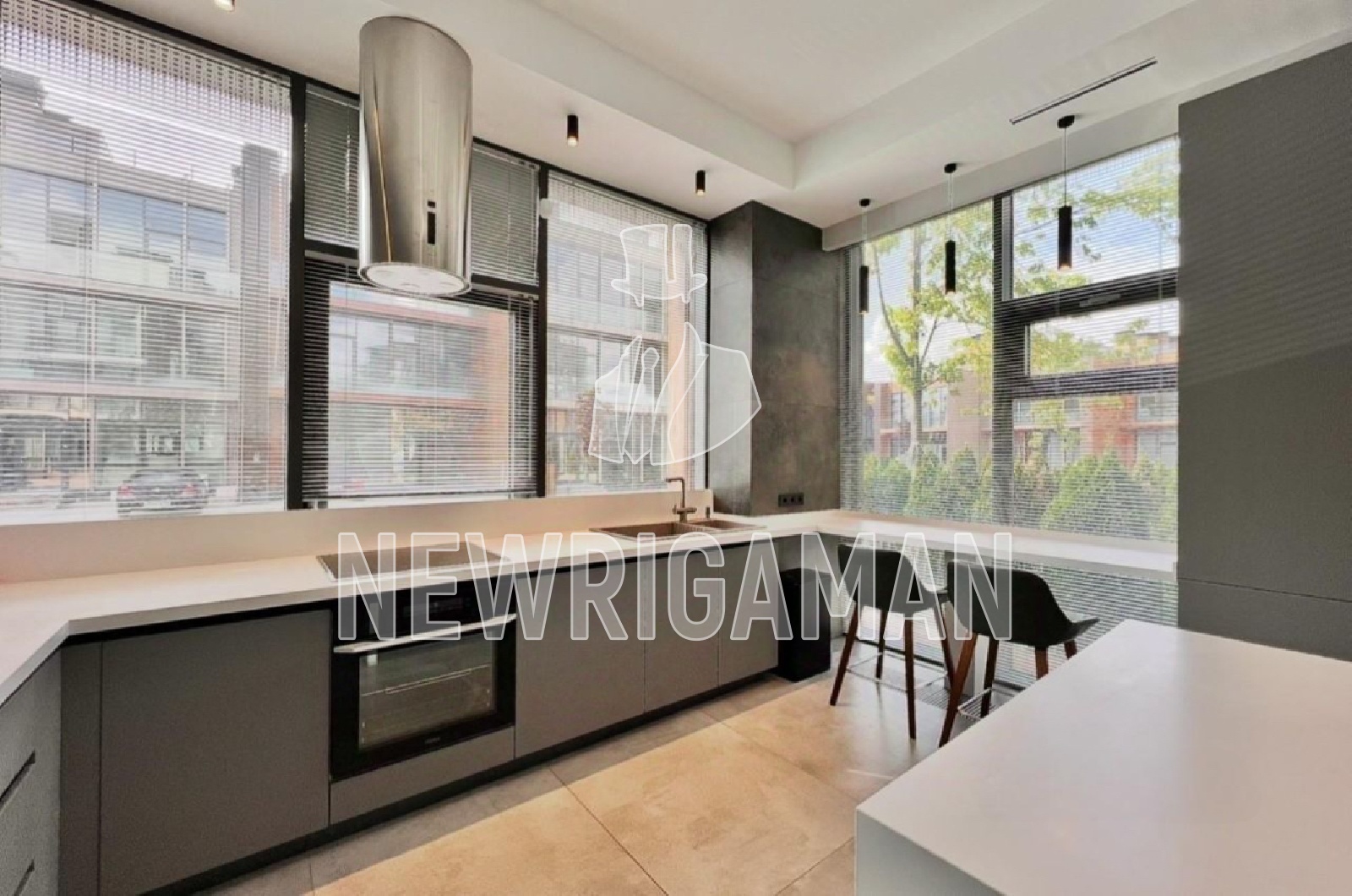 Продажа таунхауса площадью 250 кв.м. Новорижское шоссе, 23 км от МКАД. Коттеджный поселок Футуро Парк. Построен в 4 этажа. Выполнен в современном архитектурном стиле с просторными, светлыми помещениями и панорамным остеклением, которое наполняет интерьер естественным светом и визуально расширяет пространство. Внутри выполнен качественный ремонт с использованием современных материалов. Полы отделаны крупноформатным керамогранитом, потолки с встроенным освещением и стильными светильниками. Лестница украшена стеклянными перилами, что придает пространству легкость и современный характер. На первом этаже расположена уютная гостиная с мягким модульным диваном и обеденной зоной с дизайнерским стеклянным столом. Кухня оформлена в минималистичном стиле, оснащена встроенной премиальной техникой от ведущих мировых производителей, что обеспечивает максимальный комфорт и надежность в повседневном использовании. Вся мебель в доме выполнена на заказ из качественных материалов и представлена брендами высокого класса, что подчеркивает статус и изысканный стиль интерьера. На участке площадью 1,7 сотки можно обустроить зону отдыха, террасу или барбекю. Территория аккуратно благоустроена. Были переложены все балконы, сделана усиленная водоизоляция, а также проложен электрический подогрев на балконах и крыльце. Зимой достаточно включить систему, и весь снег растает без необходимости ручной уборки.