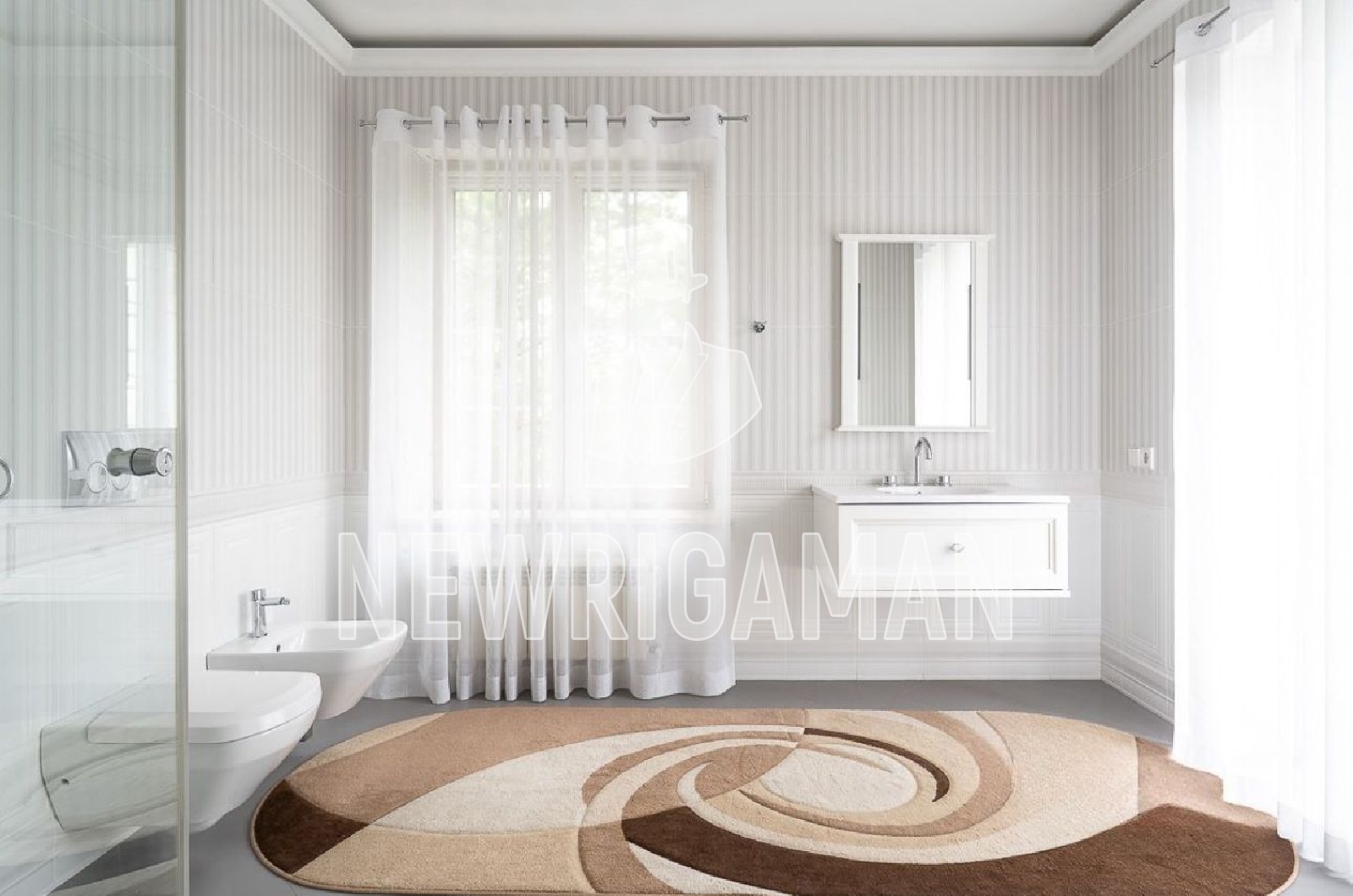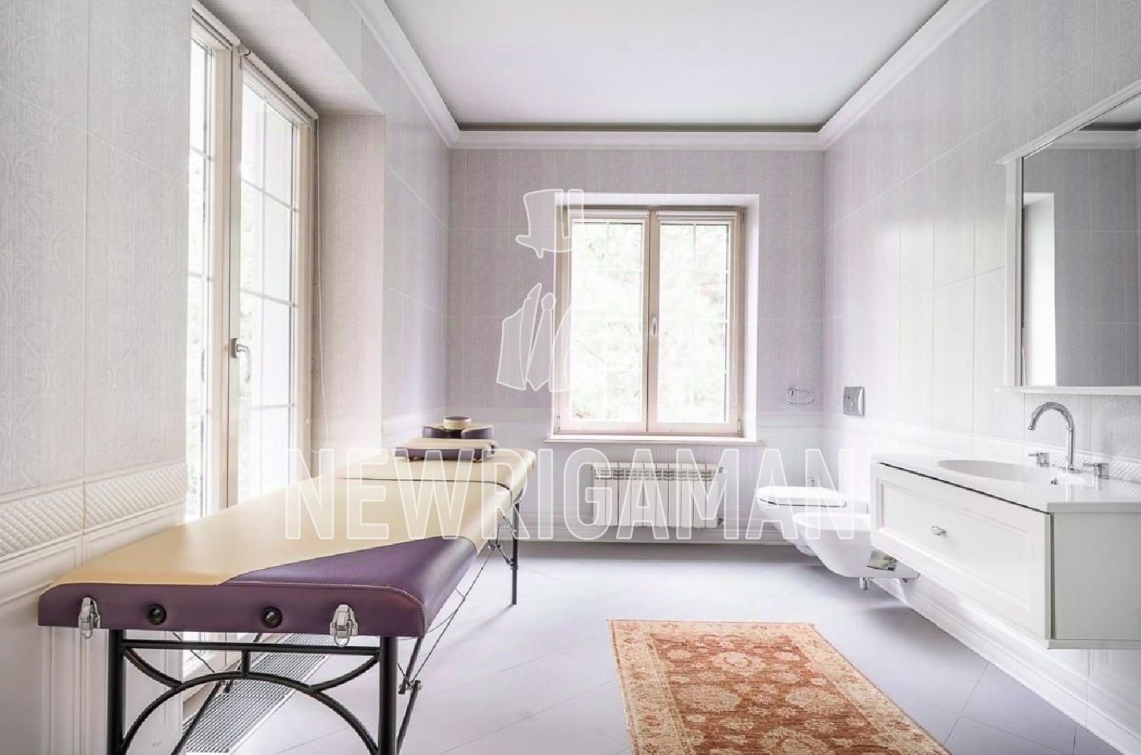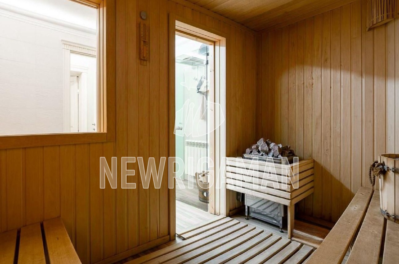 Цокольный этаж - комната отдыха, сауна с джакузи, бильярдная, постирочная кладовая, квартира для персонала: кухня, спальня, душевая.