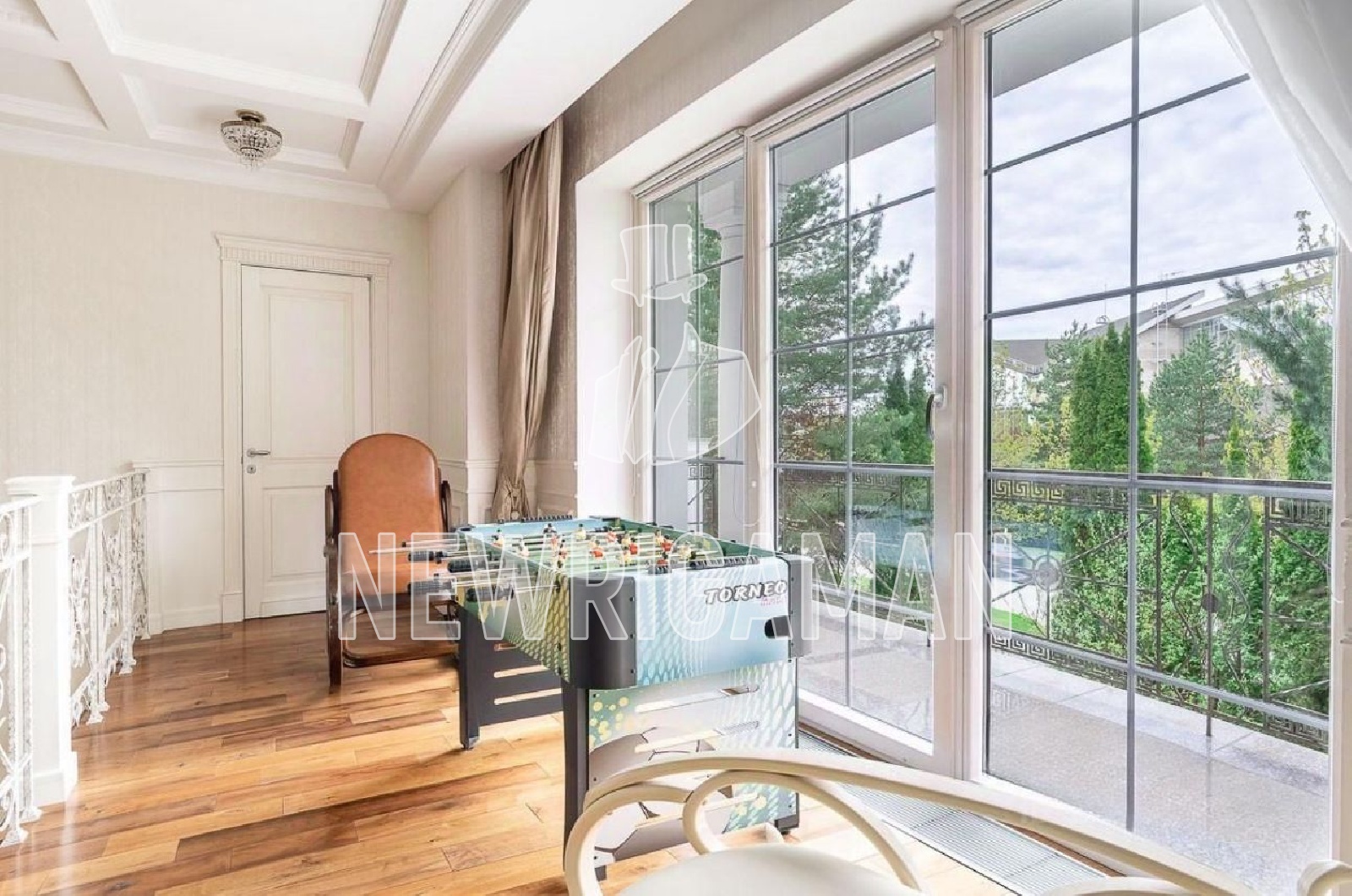 Аренда загородного дома общей площадью 550 кв.м. Новорижское шоссе, 18 км от МКАД. Коттеджный поселок Бенилюкс. Дом построен в 2 этажа. Отделка в классическом стиле. Светлый и уютный дом с грамотной планировкой.Полностью обустроенный участок с прекрасным ландшафтным решением: хвойные, лиственные, садовые деревья, цветники. На участке обустроена крытая беседка-барбекю. Площадь участка 21 сотка.