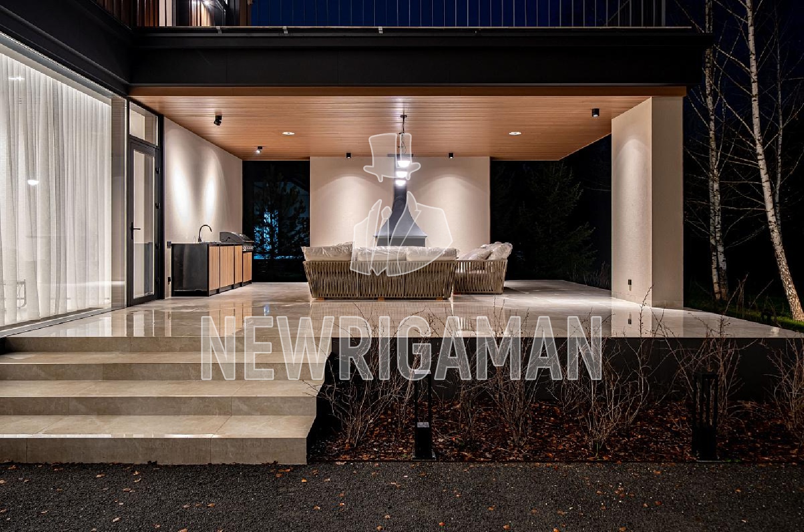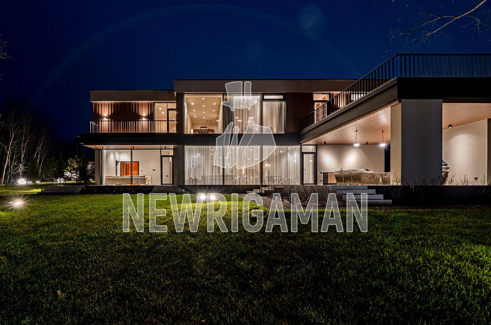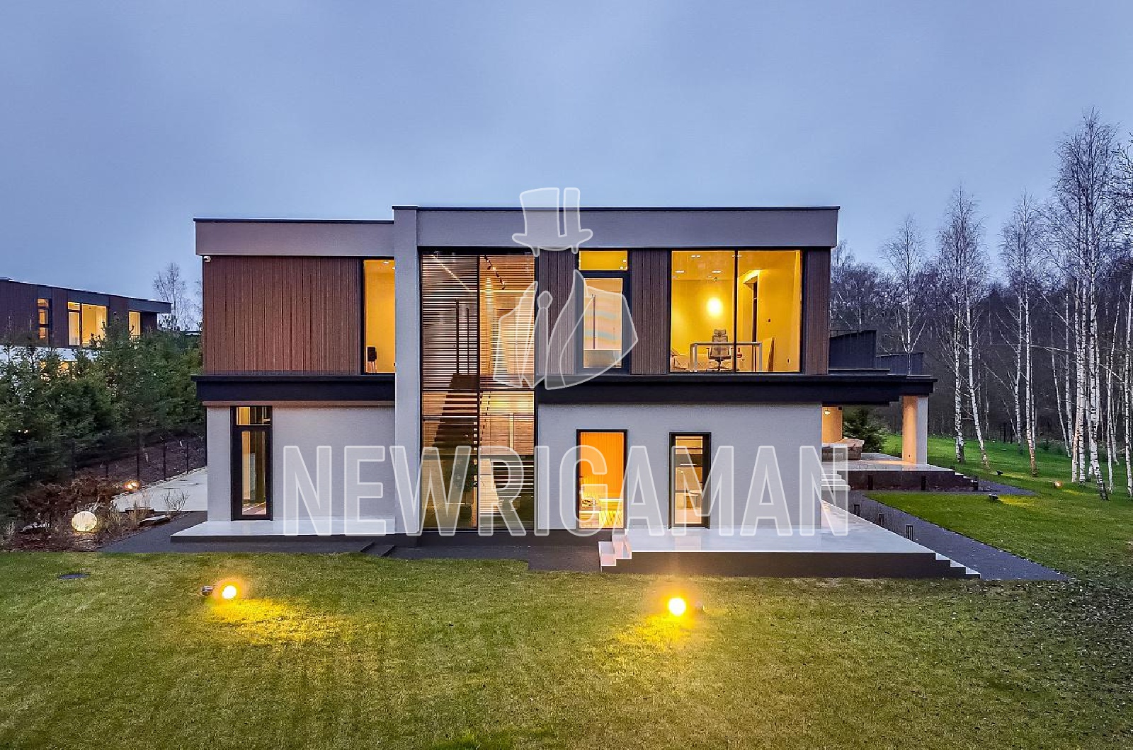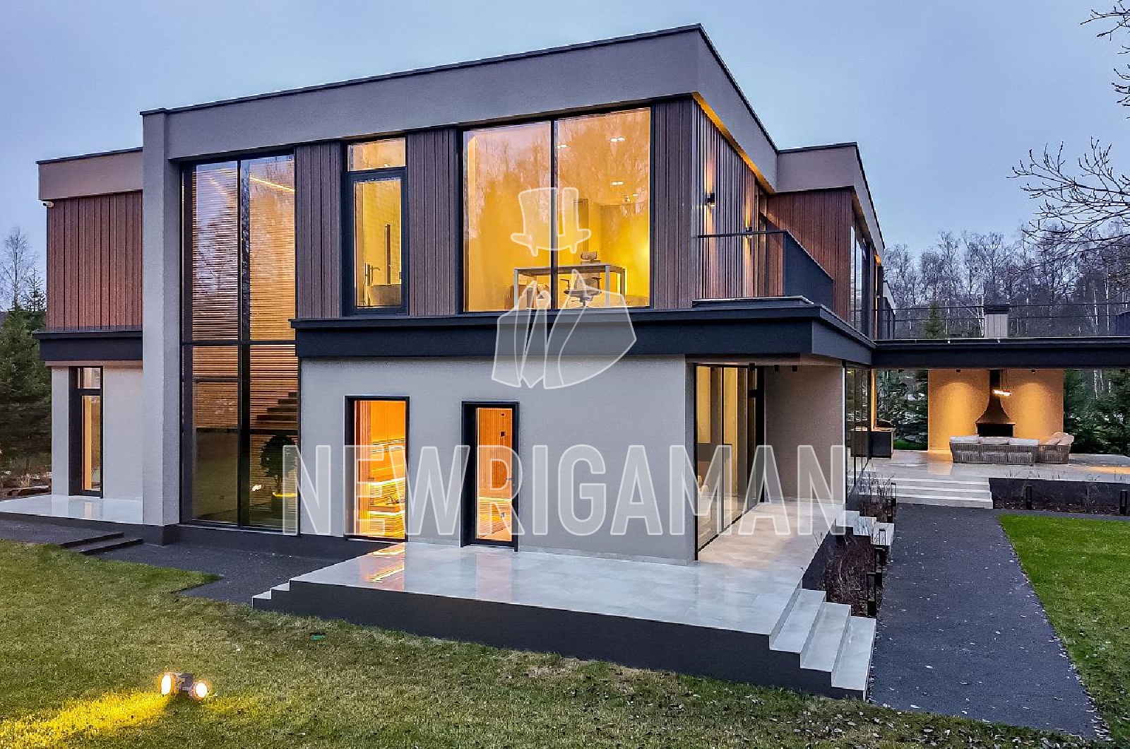 Hi-Tech и Contemporary. Дом отличается лаконичными формами, чёткой геометрией и большими панорамными окнами. В отделке фасада использованы современные и долговечные материалы. Панорамное остекление системы Alutech открывает вид на окружающий лес и наполняет дом светом. В интерьере реализован стиль contemporary - это сдержанная элегантность, функциональность и использование натуральных материалов. В отделке интерьера использованы только качественные и износостойкие материалы. Полы на первом этаже выполнены из керамогранита, стены окрашены краской датского бренда Flugger. Дом оборудован современными инженерными системами. Отопление реализовано через внутрипольные конвекторы Eva и газовый котёл Вахі Slim европейского производства. В доме и на участке установлено современное освещение, которое можно регулировать в зависимости от времени суток и настроения. Участок площадью 30 соток полностью благоустроен и идеально вписан в природное окружение. Просторная территория с тремя террасами и двумя балконами подходит как для отдыха, так и для приёма гостей. Из окон открываются виды на лес, а окружающая среда наполняет пространство тишиной и свежестью.