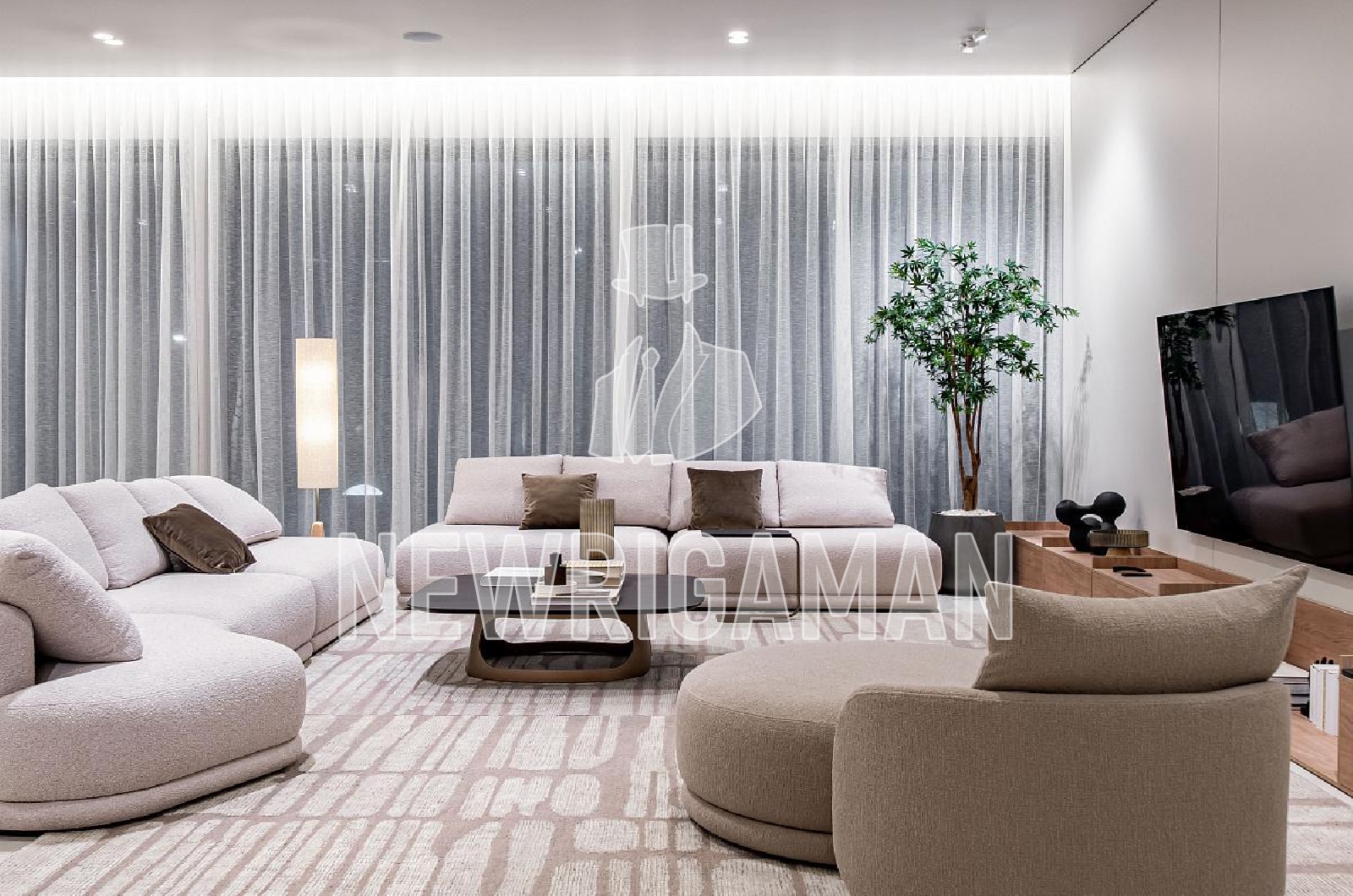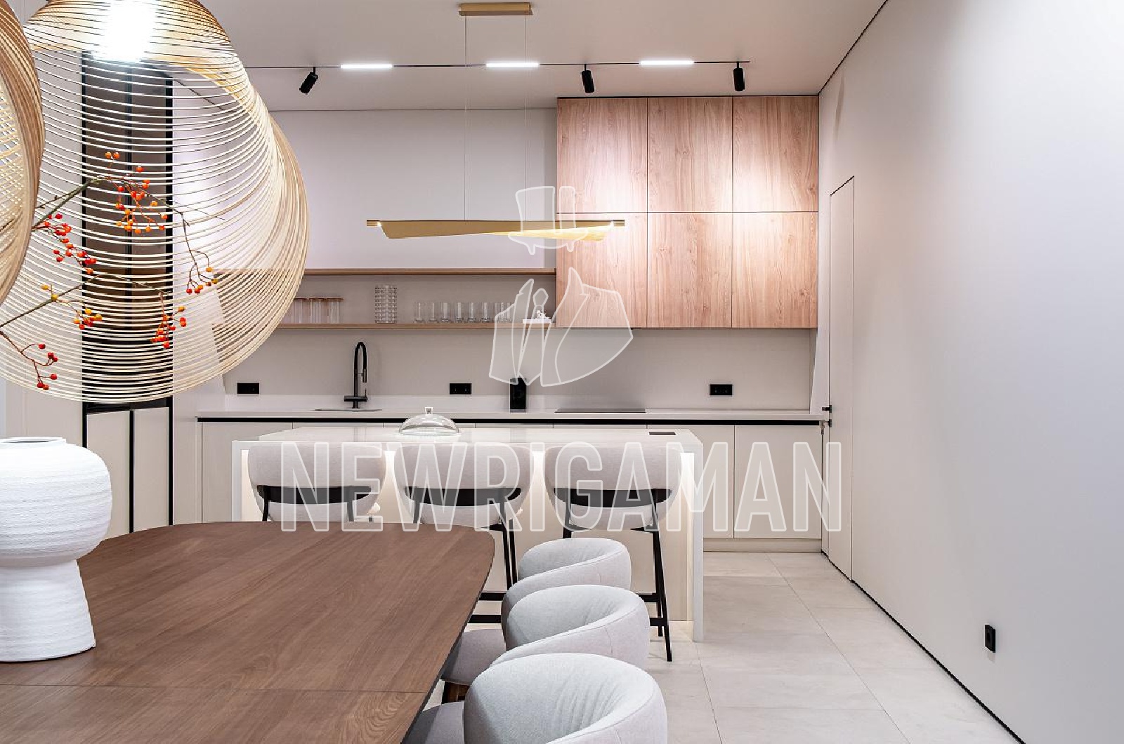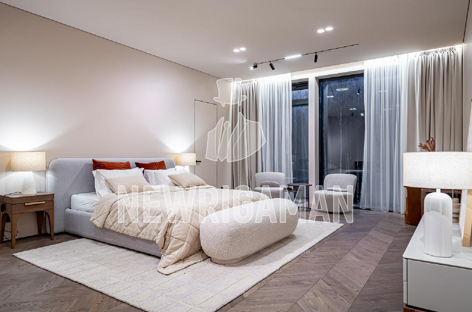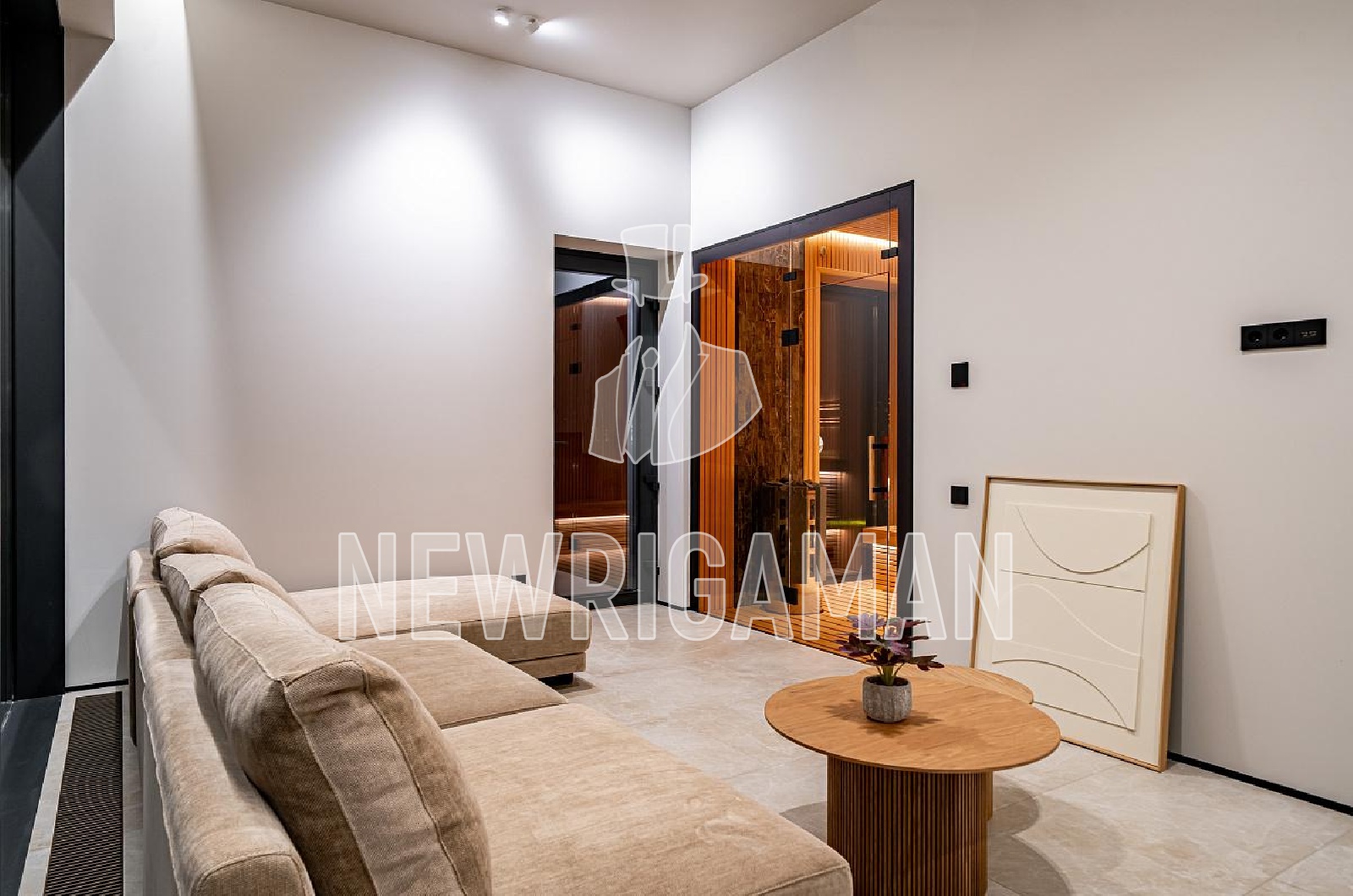 Hi-Tech и Contemporary. Дом отличается лаконичными формами, чёткой геометрией и большими панорамными окнами. В отделке фасада использованы современные и долговечные материалы. Панорамное остекление системы Alutech открывает вид на окружающий лес и наполняет дом светом. В интерьере реализован стиль contemporary - это сдержанная элегантность, функциональность и использование натуральных материалов. В отделке интерьера использованы только качественные и износостойкие материалы. Полы на первом этаже выполнены из керамогранита, стены окрашены краской датского бренда Flugger. Дом оборудован современными инженерными системами. Отопление реализовано через внутрипольные конвекторы Eva и газовый котёл Вахі Slim европейского производства. В доме и на участке установлено современное освещение, которое можно регулировать в зависимости от времени суток и настроения. Участок площадью 30 соток полностью благоустроен и идеально вписан в природное окружение. Просторная территория с тремя террасами и двумя балконами подходит как для отдыха, так и для приёма гостей. Из окон открываются виды на лес, а окружающая среда наполняет пространство тишиной и свежестью.