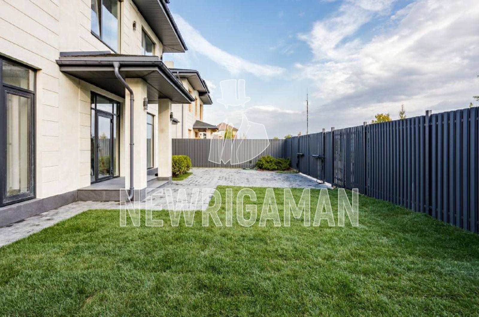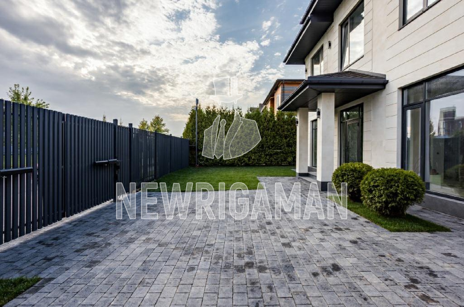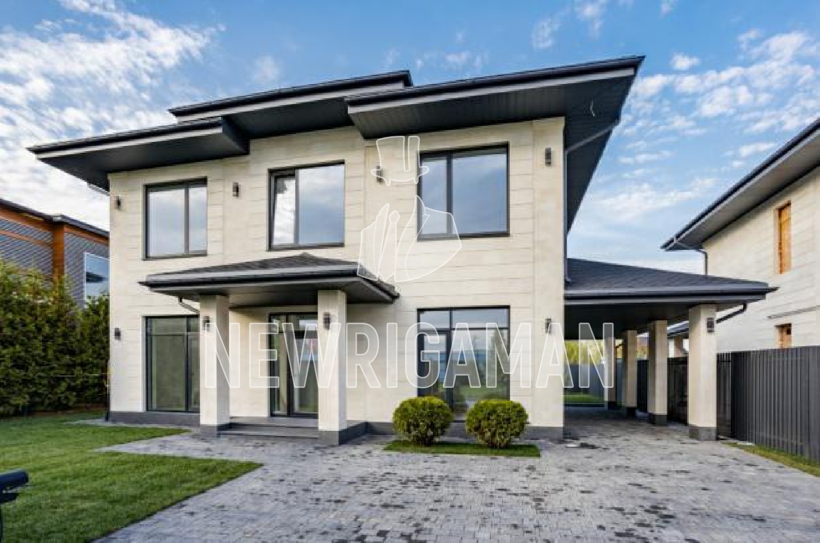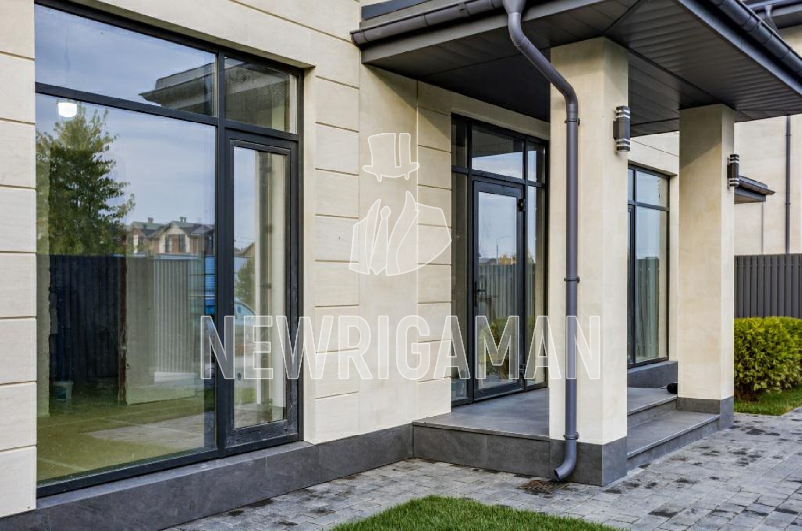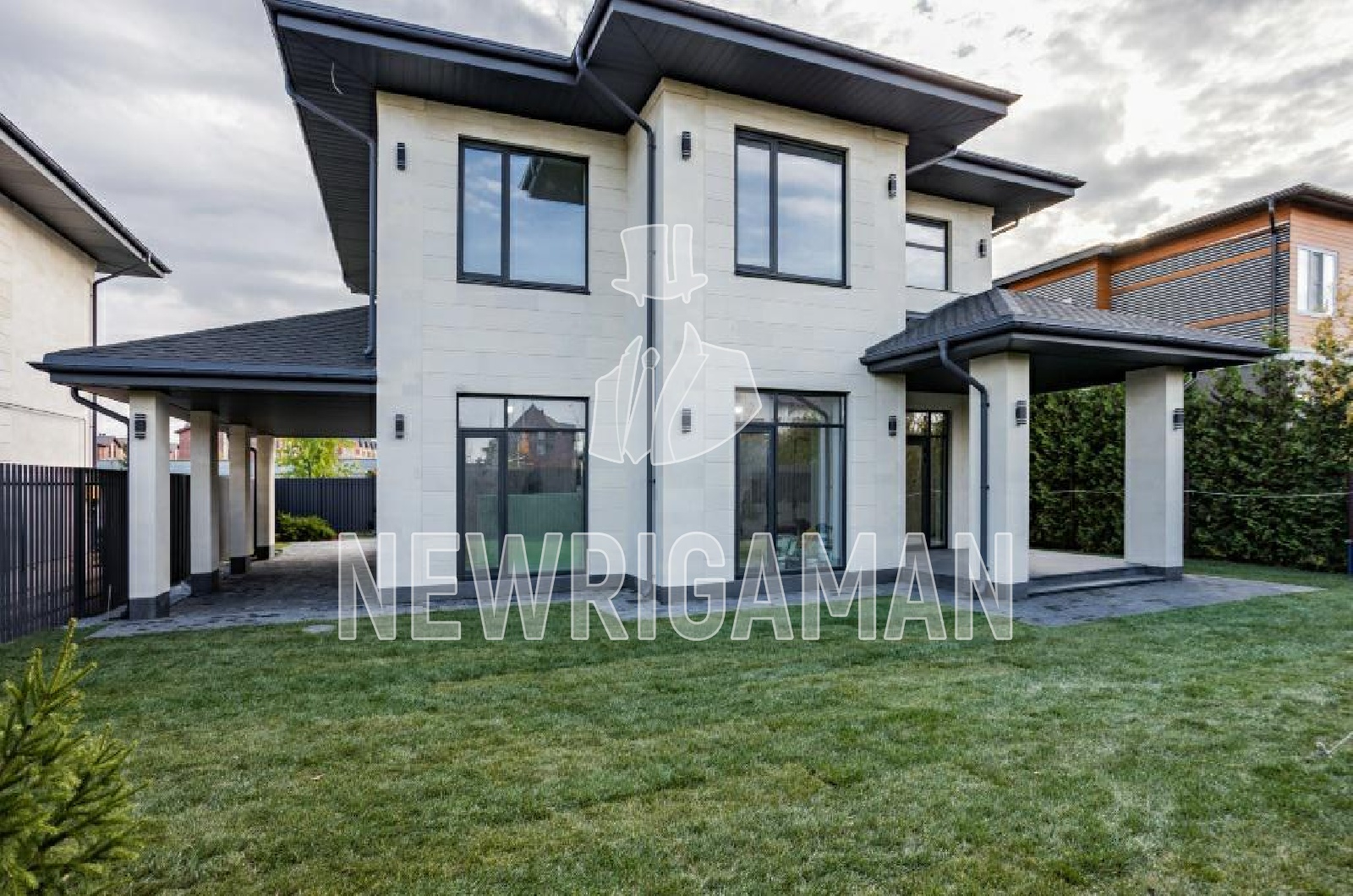 Продажа загородного дома площадью 250 кв.м. Новорижское шоссе 23 км от МКАД. Коттеджный посёлок Новорижский. Архитектура дома выполнена в современном стиле, где основное внимание уделено выразительности форм и свободе планировочных решений. Фасад облицован натуральным дагестанским камнем, установлены алюминиевые окна, а территория вымощена премиальной брусчаткой Steingot. Забор оснащён автоматическими воротами с электроприводом. Дом находится в состоянии white box: выполнена укладка керамогранита на полах, стены подготовлены под покраску, потолки полностью завершены. Все санузлы оборудованы качественной сантехникой. В стоимость входят шторы, люстры и диван. Кухонная зона подготовлена в соответствии с дизайн-проектом. Участок площадью 6,2 сотки - открытого типа, что создаёт простор для индивидуального ландшафтного оформления. На территории высажены крупномерные растения.