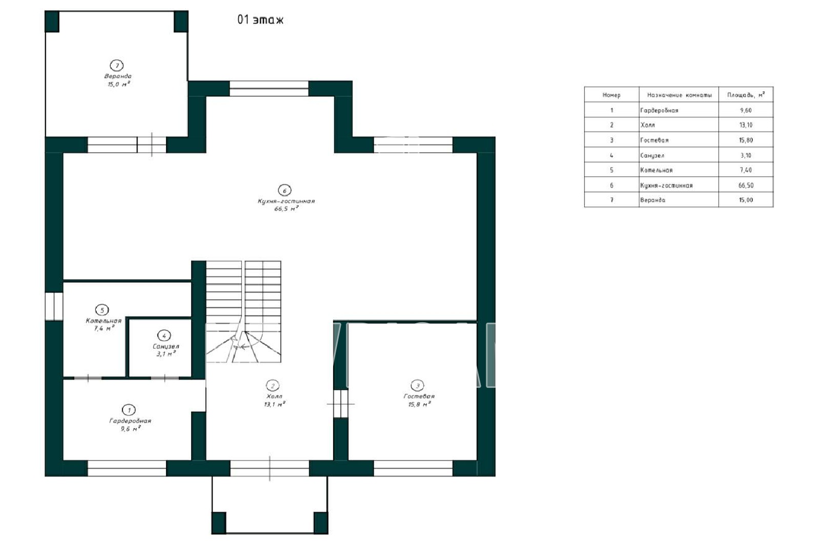1 этаж - холл, гардеробная, гостиная, кухня с выходом на веранду, комната гостевая, с/у, постирочная, котельная,
