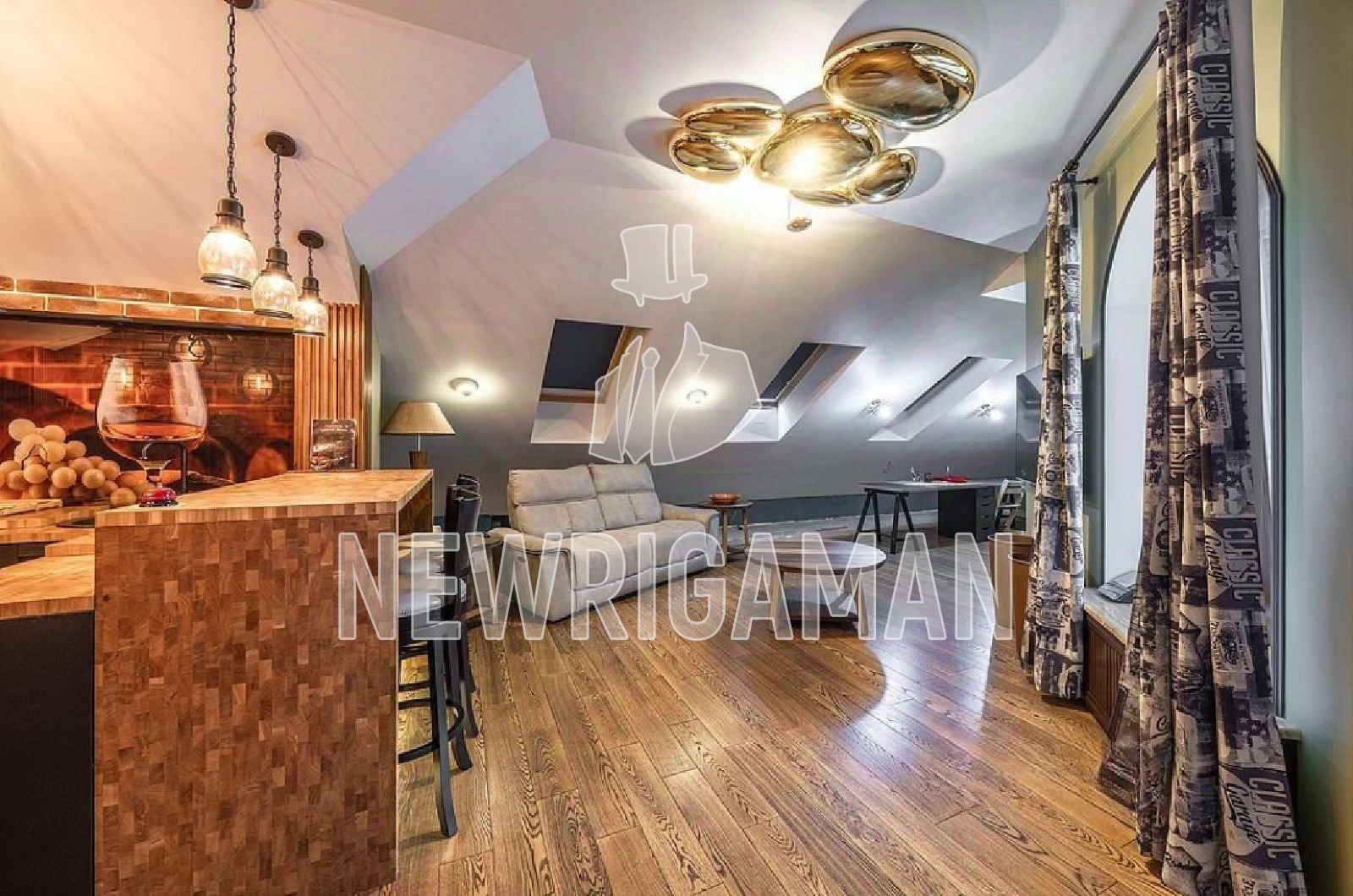 Мансарда - комната отдыха с барной стойкой.