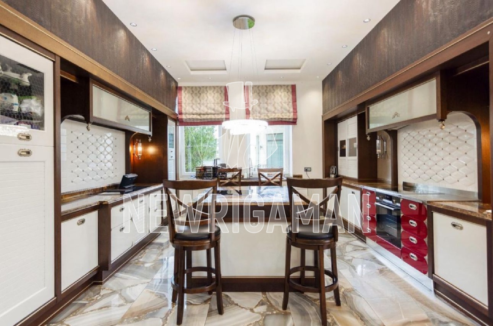 Аренда загородного дома общей площадью 800 кв.м. Новорижское шоссе, 19 км от МКАД. Коттеджный поселок Миллениум парк. Дом построен в 2 этажа. В отделке использованы качественные дорогие материалы, мрамор, мебель Италия. Современный интерьер исполнен в спокойных, пастельных тонах и дополнен стильной мебелью. Панорамные окна, большая площадь остекления и высокие потолки делают дом очень светлым и просторным. Приточная вентиляция и система кондиционирования поддерживают оптимальный микроклимат в доме. На участке площадью 25 соток выполнен ландшафтный дизайн.