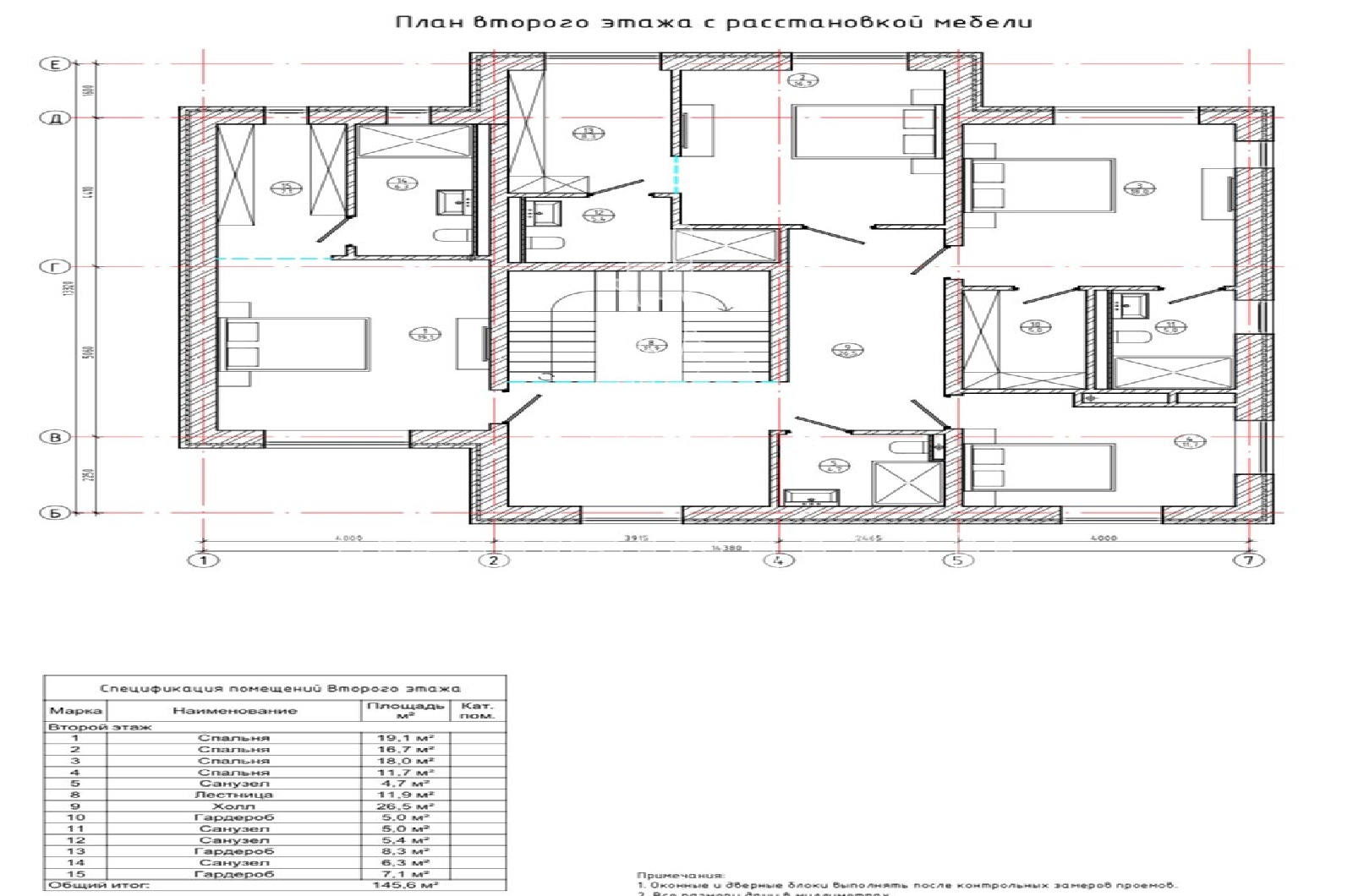 2 этаж - холл, 5 спален, 3 гардеробные, 4 с/у.