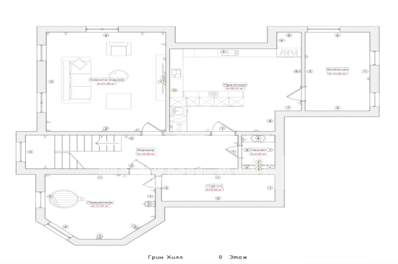 Цоколь - комната отдыха, прачечная, котельная, помывочная, парная, с/у.