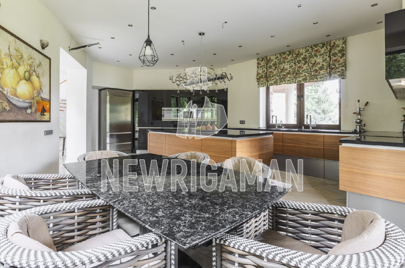 Продажа загородного дома общей площадью 700 кв.м. Коттеджный поселок Гринфилд. Новорижское шоссе, 24 км от МКАД. Коттедж построен в 2 этажа. Интерьер выполнен в современном стиле с отделкой из натуральных материалов. В отделке применены пастельные тона, которые в сочетании с панорамными окнами создают светлую и теплую атмосферу в каждом помещении. Для освещения использованы люстры из венецианского стекла. На просторной кухне площадью 37 м2 установлено профессиональное немецкое оборудование Rational, встроенная бытовая техника V-Zug из Швейцарии и холодильник итальянского бренда Fhiaba. Для удобства подачи организован кухонный лифт. На участке размером 22 сотки выполнен ландшафтный дизайн с использованием декоративных и плодовых деревьев и кустарников. Для автомобилей на территории есть гараж и навес.