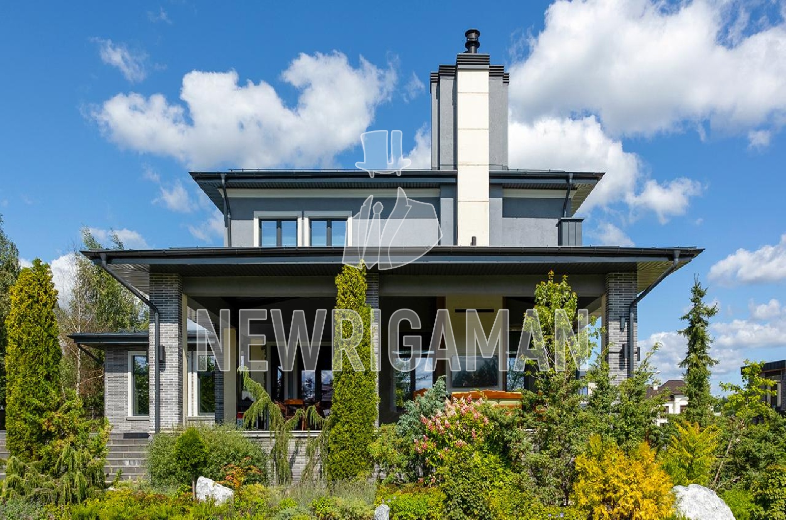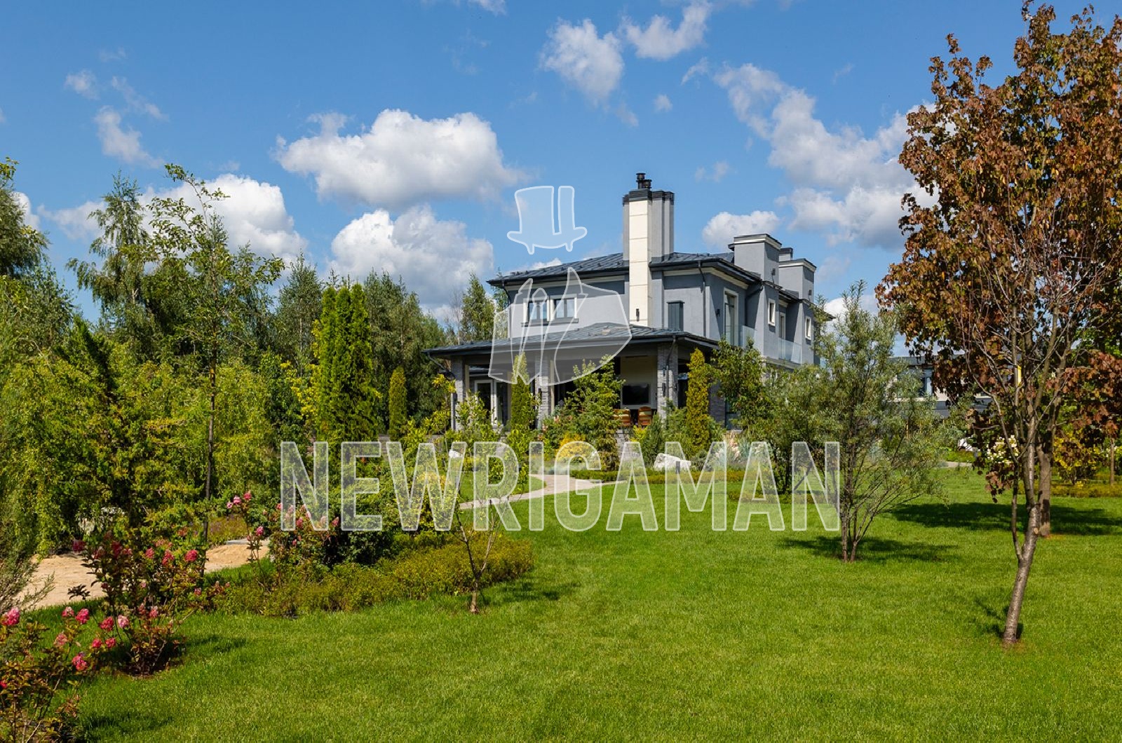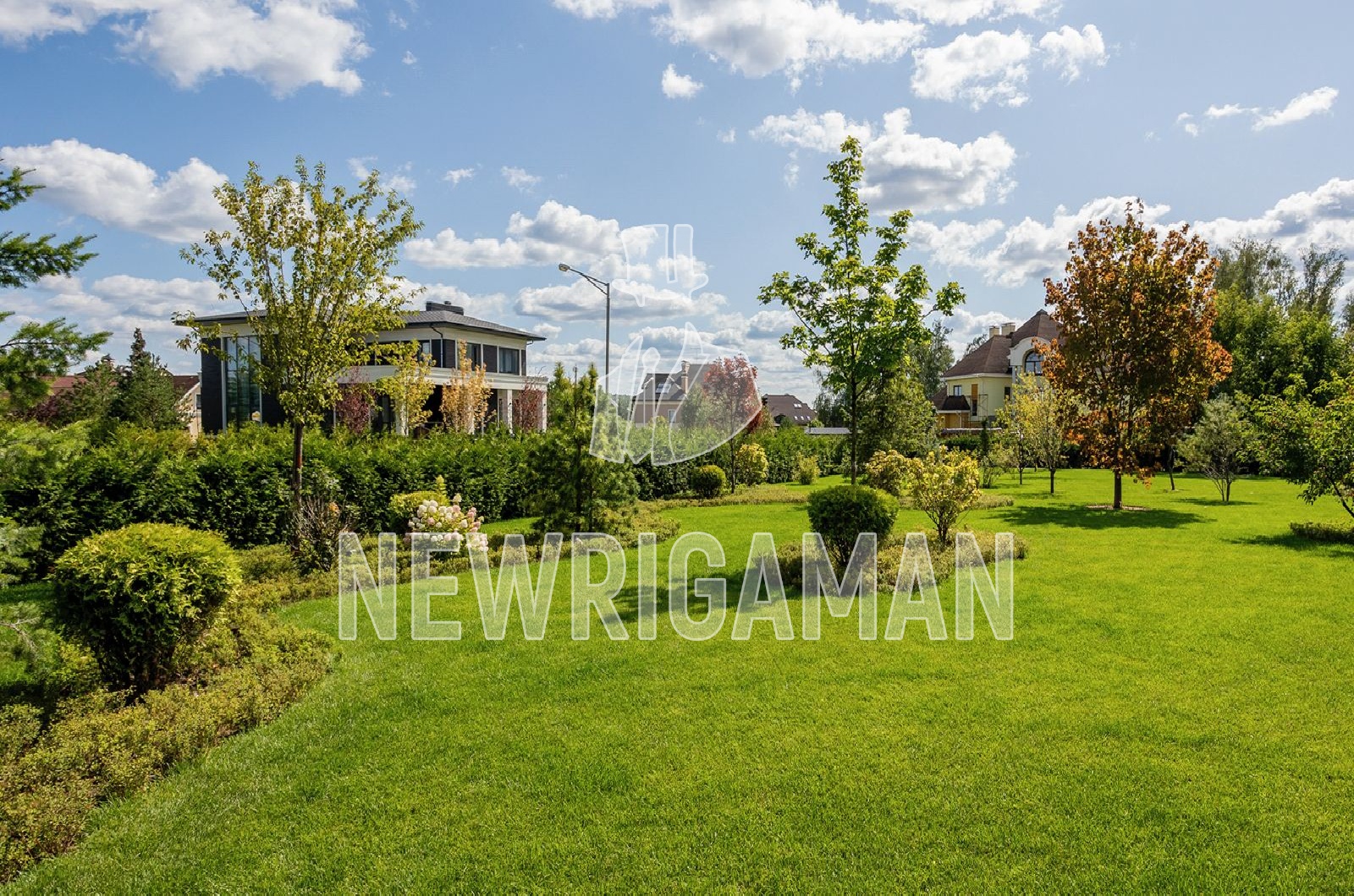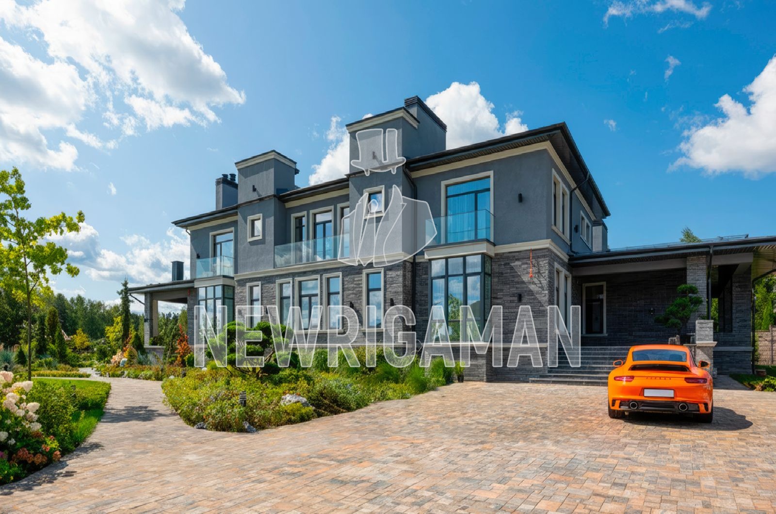 Продажа загородного особняка площадью 1000 кв.м. Новорижское шоссе, 27 км от МКАД. Коттеджный поселок Крона. Современная архитектура дома сразу привлекает внимание: сдержанная серая штукатурка, клинкерный кирпич и элегантная подсветка подчёркивают строгие линии фасада. Панорамные окна Rehau Delight открывают виды на лес. Интерьеры выполнены в светлой гамме с использованием керамогранита Atlas Concorde и инженерной доски Greenline 402, уложенной французской ёлочкой. Стены украшены изящными молдингами, а пространство дополняют тщательно подобранная мебель российских производителей, техника Neff и Liebherr, сантехника Hansgrohe. Для отдыха предусмотрены уютная гостиная с камином, открытая веранда и пять спален; для работы - уединённый кабинет; для расслабления - просторная спа-зона с сауной и бассейном. В цоколе размещены винная и сигарная комнаты, тренажёрный зал с баром, оружейная и домашний кинотеатр с оборудованием Integra, проектором JVC и акустикой Klipsch. На участке 52,5 сотки выполнен ландшафтный дизайн: пруд, мощёные дорожки, декоративные кустарники, фруктовый сад и ухоженные газоны создают атмосферу уединённой резиденции, дополненную мягким уличным освещением.