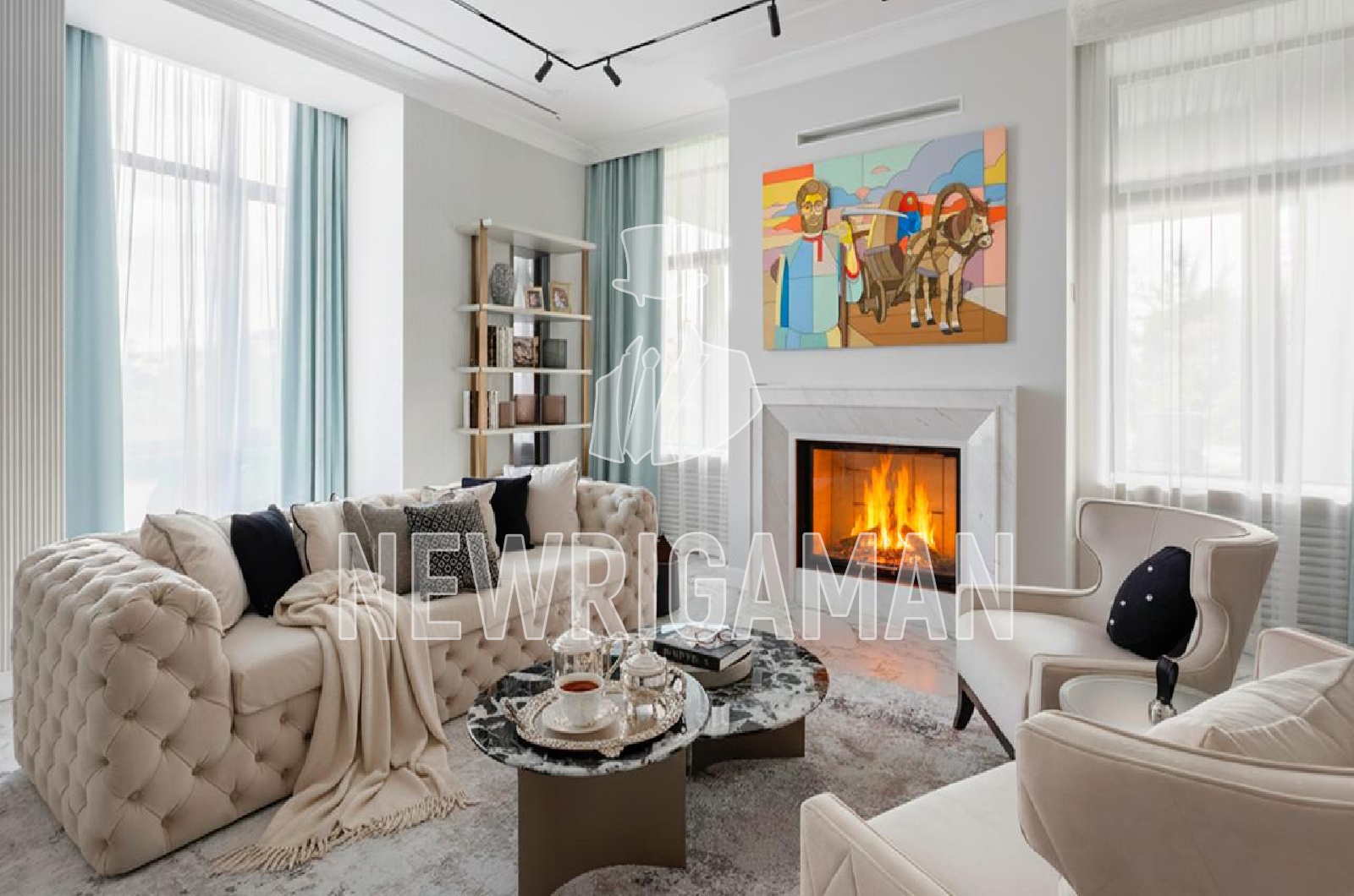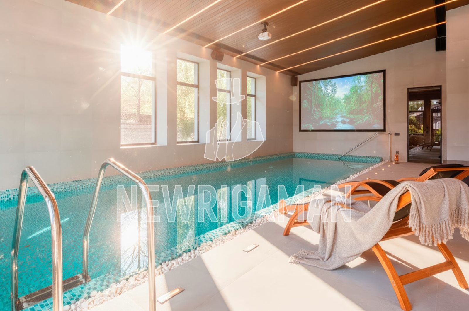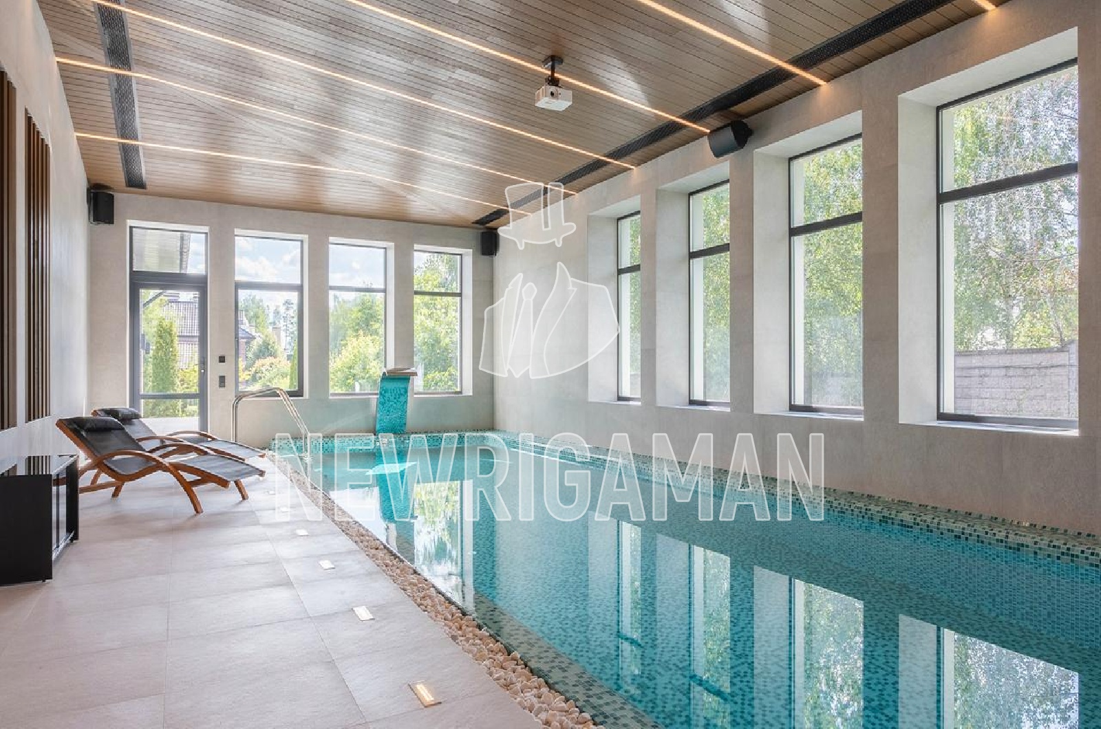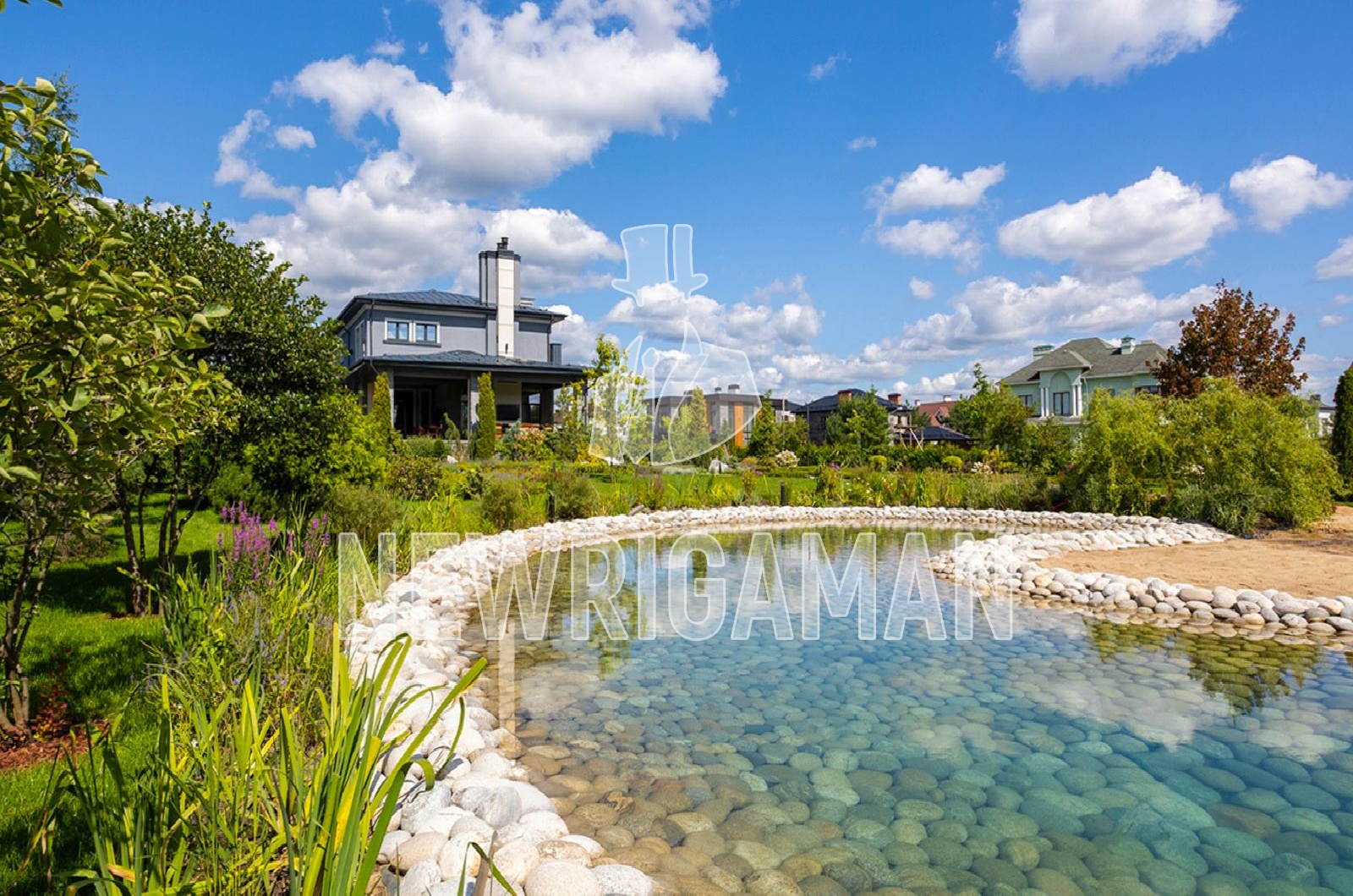 Продажа загородного особняка площадью 1000 кв.м. Новорижское шоссе, 27 км от МКАД. Коттеджный поселок Крона. Современная архитектура дома сразу привлекает внимание: сдержанная серая штукатурка, клинкерный кирпич и элегантная подсветка подчёркивают строгие линии фасада. Панорамные окна Rehau Delight открывают виды на лес. Интерьеры выполнены в светлой гамме с использованием керамогранита Atlas Concorde и инженерной доски Greenline 402, уложенной французской ёлочкой. Стены украшены изящными молдингами, а пространство дополняют тщательно подобранная мебель российских производителей, техника Neff и Liebherr, сантехника Hansgrohe. Для отдыха предусмотрены уютная гостиная с камином, открытая веранда и пять спален; для работы - уединённый кабинет; для расслабления - просторная спа-зона с сауной и бассейном. В цоколе размещены винная и сигарная комнаты, тренажёрный зал с баром, оружейная и домашний кинотеатр с оборудованием Integra, проектором JVC и акустикой Klipsch. На участке 52,5 сотки выполнен ландшафтный дизайн: пруд, мощёные дорожки, декоративные кустарники, фруктовый сад и ухоженные газоны создают атмосферу уединённой резиденции, дополненную мягким уличным освещением.