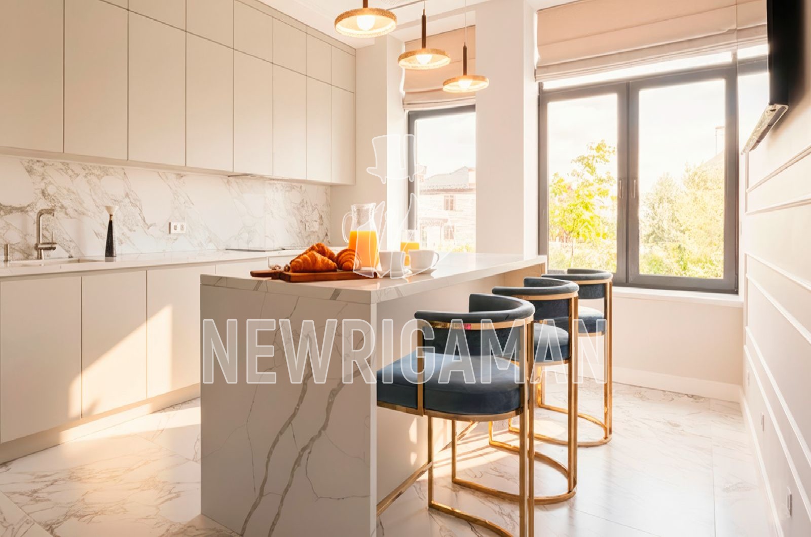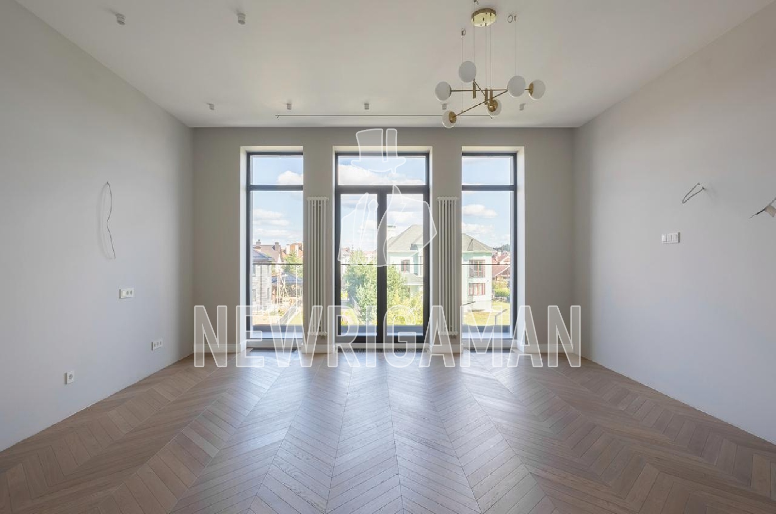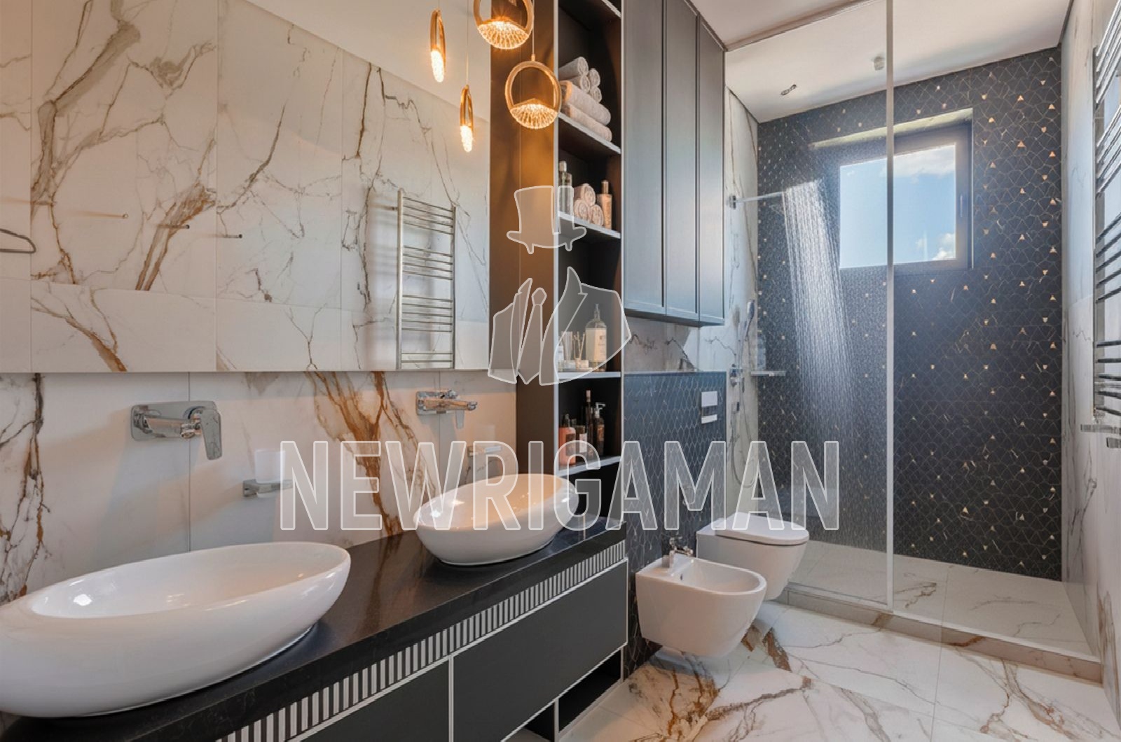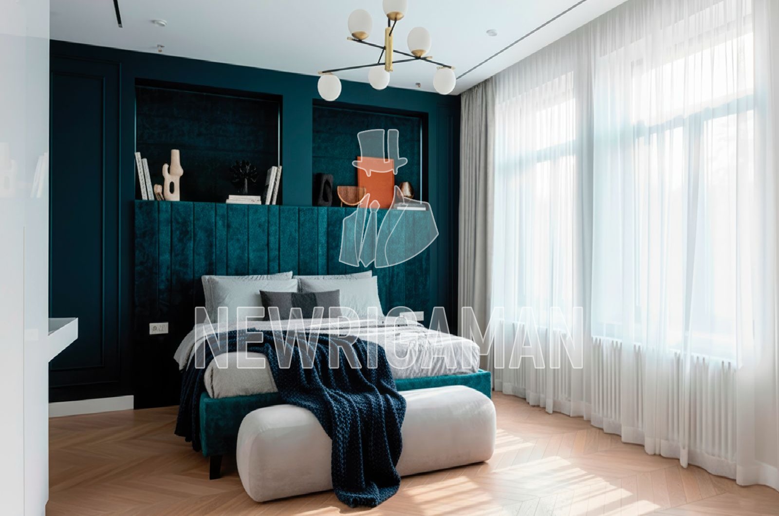 Продажа загородного особняка площадью 1000 кв.м. Новорижское шоссе, 27 км от МКАД. Коттеджный поселок Крона. Современная архитектура дома сразу привлекает внимание: сдержанная серая штукатурка, клинкерный кирпич и элегантная подсветка подчёркивают строгие линии фасада. Панорамные окна Rehau Delight открывают виды на лес. Интерьеры выполнены в светлой гамме с использованием керамогранита Atlas Concorde и инженерной доски Greenline 402, уложенной французской ёлочкой. Стены украшены изящными молдингами, а пространство дополняют тщательно подобранная мебель российских производителей, техника Neff и Liebherr, сантехника Hansgrohe. Для отдыха предусмотрены уютная гостиная с камином, открытая веранда и пять спален; для работы - уединённый кабинет; для расслабления - просторная спа-зона с сауной и бассейном. В цоколе размещены винная и сигарная комнаты, тренажёрный зал с баром, оружейная и домашний кинотеатр с оборудованием Integra, проектором JVC и акустикой Klipsch. На участке 52,5 сотки выполнен ландшафтный дизайн: пруд, мощёные дорожки, декоративные кустарники, фруктовый сад и ухоженные газоны создают атмосферу уединённой резиденции, дополненную мягким уличным освещением.