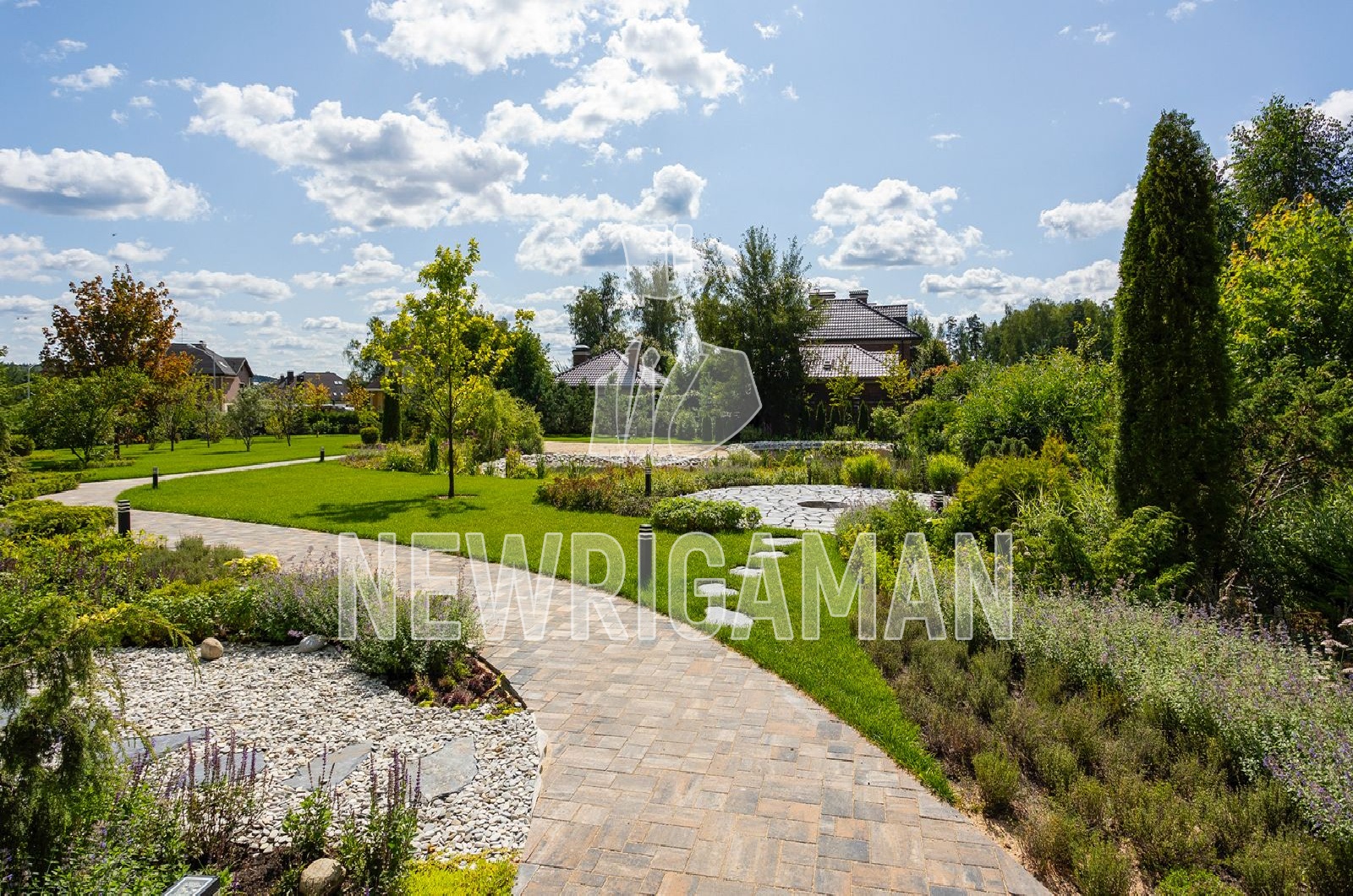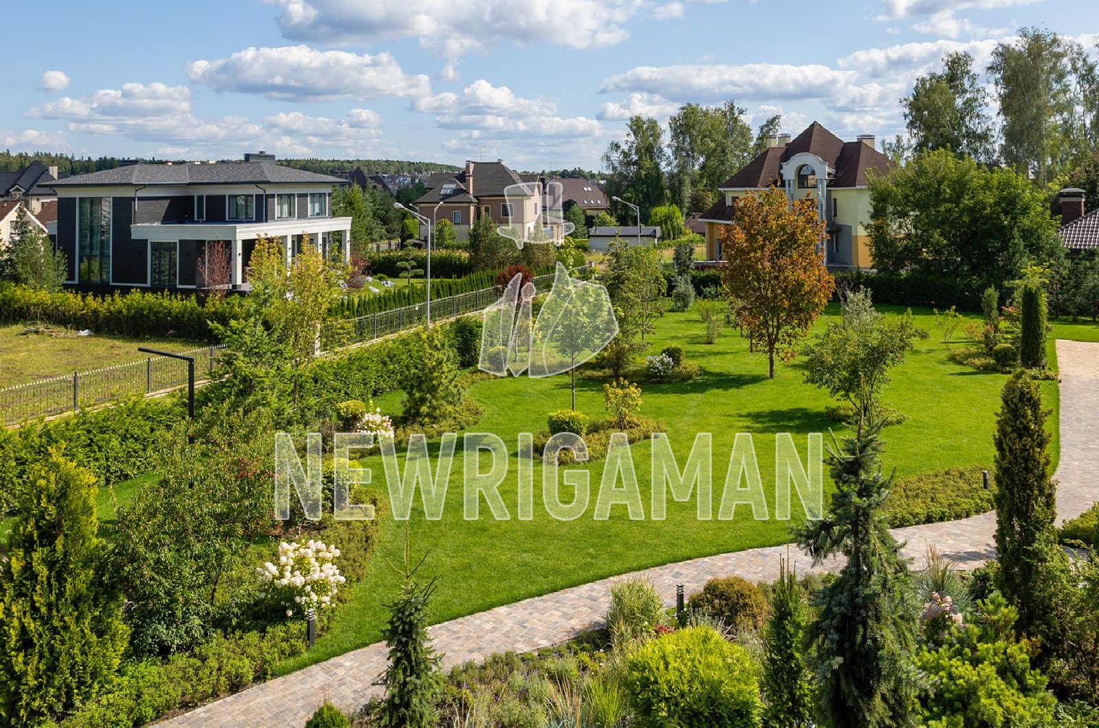 Внутренняя инфраструктура: на территории коттеджного поселка проведено комплексное озеленение, посажены деревья, аккуратно подстрижен газон. Каждый участок огорожен по периметру небольшим забором, подчеркивающим элегантный внешний облик комплекса. Здесь также обустроены прогулочные дорожки и асфальтированные дороги, а также установлено уличное освещение, поэтому жильцы могут чувствовать себя здесь в полной безопасности.