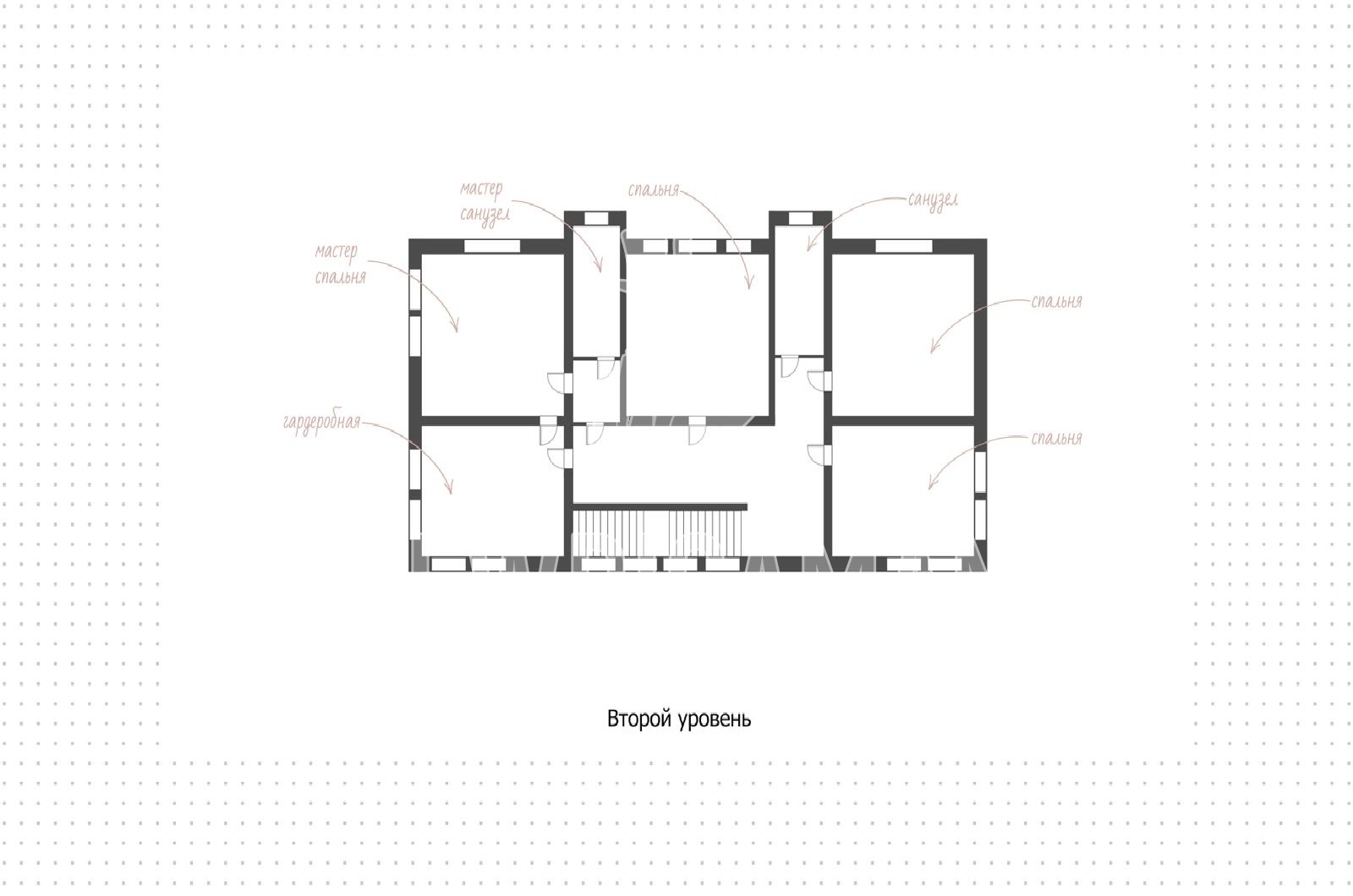 2 этаж - холл, мастер-спальня с гардеробной и санузлом, три спальни, санузел,