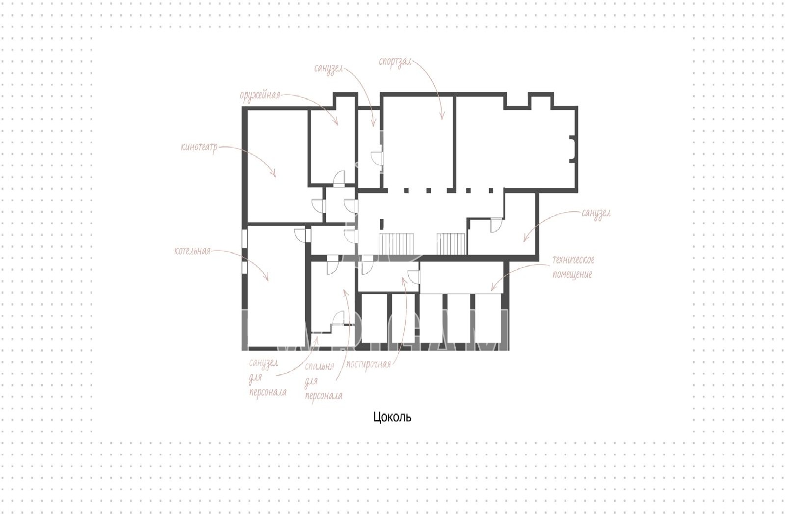Цоколь - холл, винная комната, сигарная, тренажёрный зал с баром и санузлом,