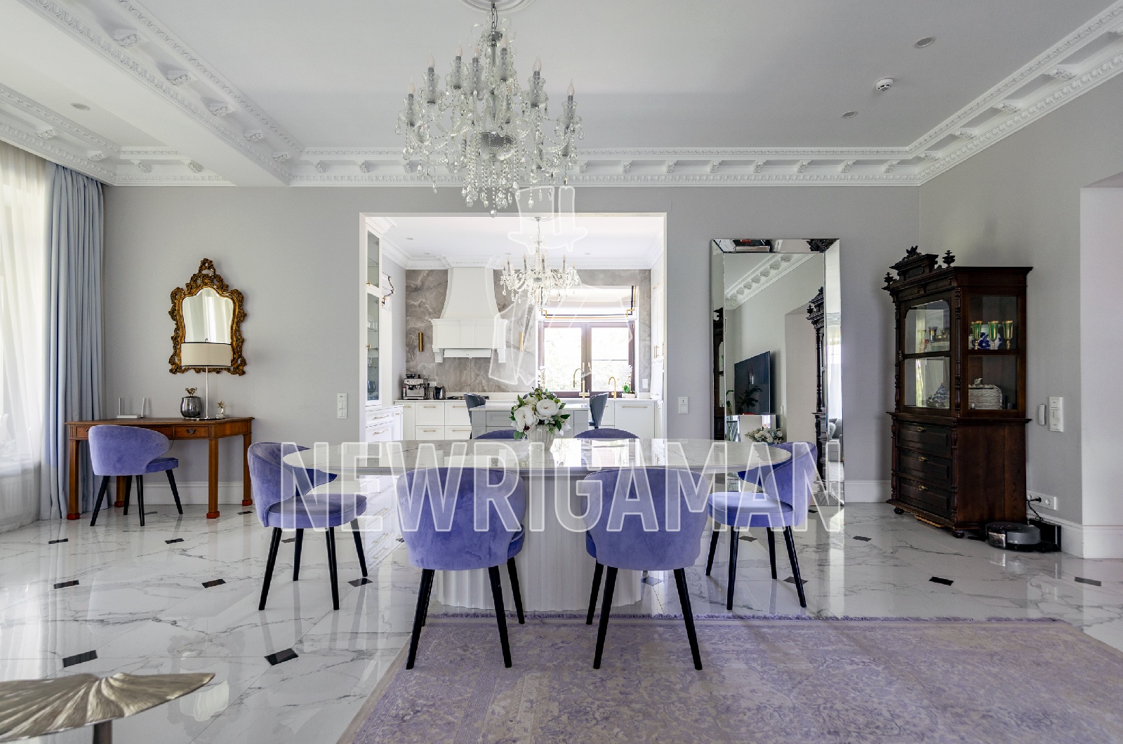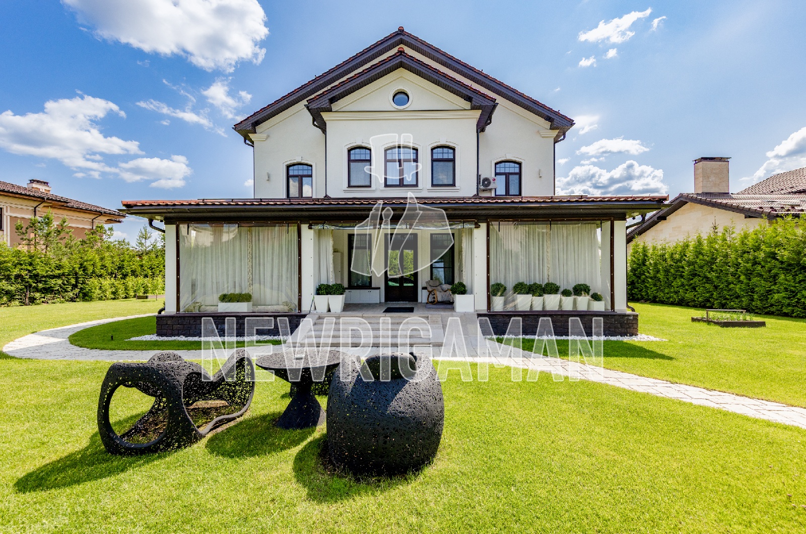 Аренда загородного дома площадью 550 кв.м. Новорижское шоссе, 23 км от МКАД. Коттеджный поселок Монтевиль. Дом построен в 2 этажа. Сделана дизайнерская отделка под ключ. Этот светлый элегантный дом сочетает в себе сдержанную классическую архитектуру и продуманную функциональность. Фасад выполнен в лаконичной белой отделке с контрастными темно-коричневыми акцентами — крышей, окнами и дверями. Четкие линии, симметричные формы и благородная цветовая гамма придают дому респектабельный и стильный облик. Дом расположен на ровном участке площадью 20 соток, где царит атмосфера уединенности и покоя. По периметру высажены декоративные туи, создающие естественное ограждение и подчеркивающие аккуратность территории. Минималистичный ландшафтный дизайн включает аккуратные дорожки и продуманное зонирование, что добавляет пространству легкости и завершенности. Внутреннее пространство наполнено мягким естественным светом. Интерьер выдержан в нейтральных тонах, где преобладают теплые белые, кремовые и серые оттенки. Каждая деталь продумана до мелочей: качественные материалы, элегантная мебель, элементы текстиля создают ощущение уюта и домашнего тепла.
