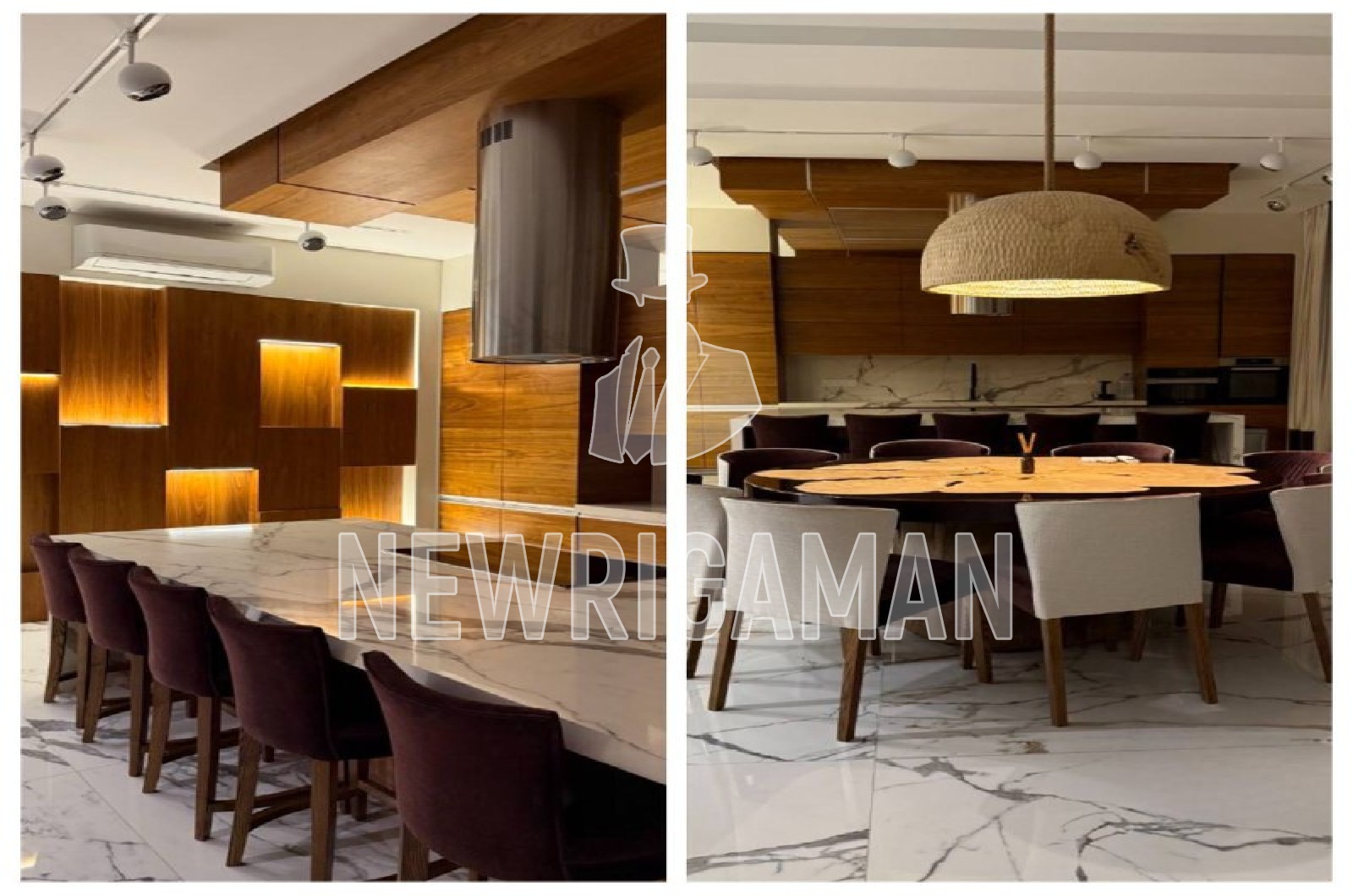 1 этаж - холл с гардеробной, объединенное пространство кухни, столовой и гостиной с выходом на террасу и зоной барбекю, кабинет-гардеробная с с/у, спальня с собственной ванной комнатой и гардеробной, гостевой с/у, кинотеатр, фитнес, котельная,