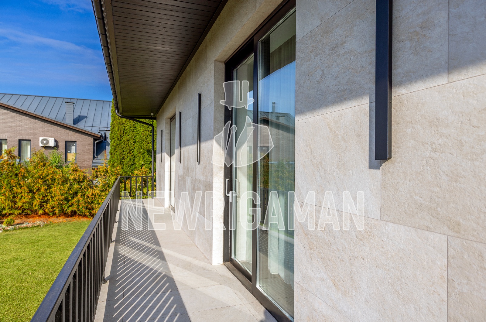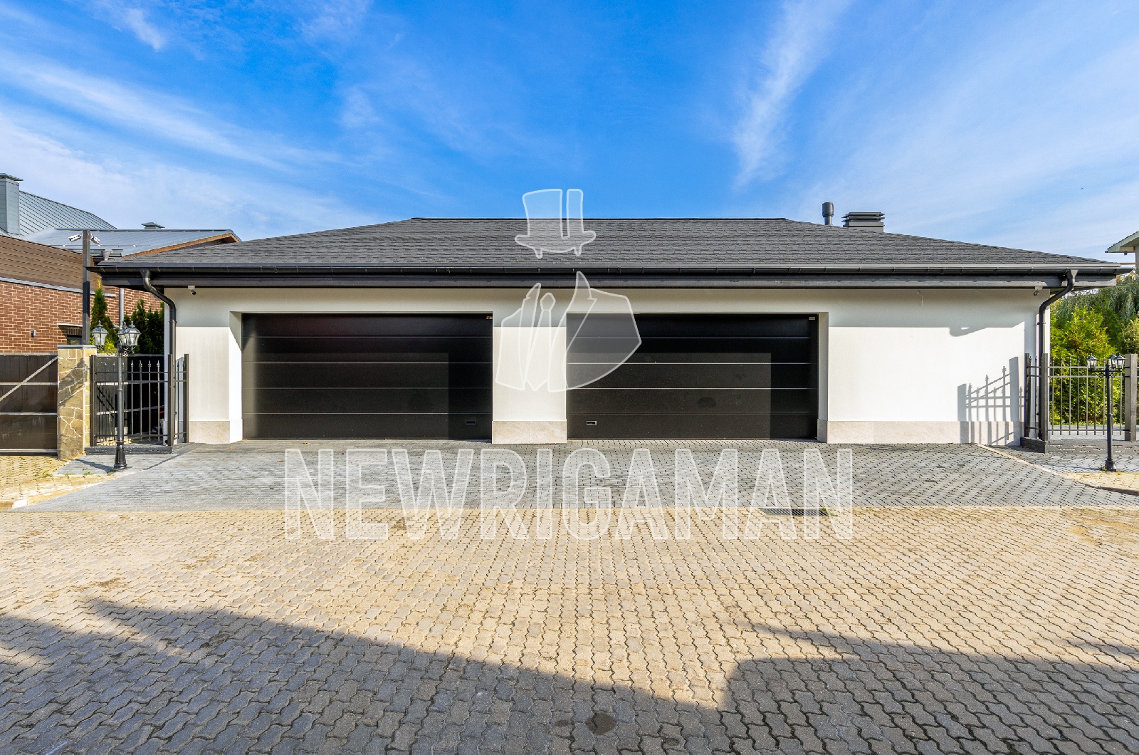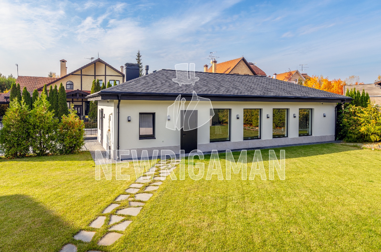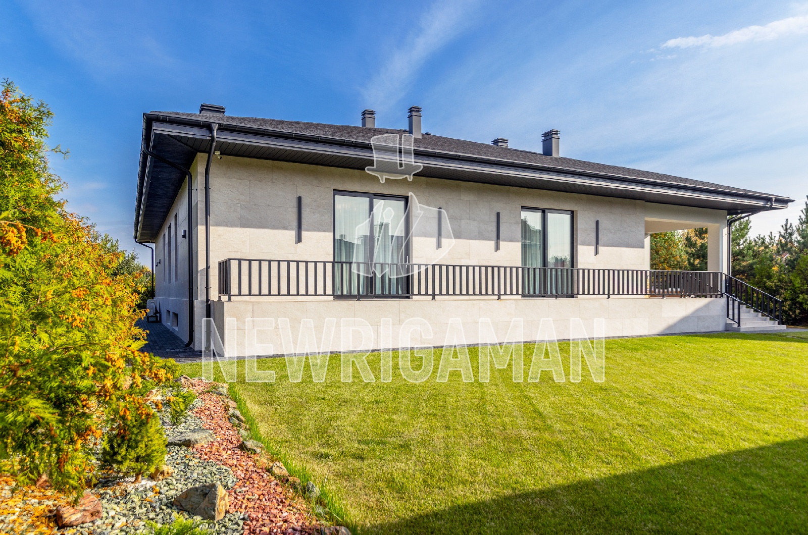 Продажа нового загородного дома площадью 885 кв.м. Ильинское шоссе 15 км от МКАД. Коттеджный посёлок Петровский. Современный одноэтажный дом с дизайнерской отделкой, созданный для комфортной и эстетичной загородной жизни. Продуманная архитектура, панорамное остекление и приватная территория с собственным садом, формируют атмосферу уюта и статуса. Дом полностью готов к проживанию и предлагается под ключ. В интерьере использованы натуральные материалы, спокойная благородная цветовая гамма и выразительные дизайнерские акценты. Высокие потолки и обилие естественного света подчеркивают ощущение простора, а продуманное акцентное освещение усиливает современный характер интерьера. Участок площадью 15 соток оформлен ландшафтным дизайном: ухоженные зелёные зоны, декоративные растения, аккуратные дорожки и архитектурная подсветка, создают завершенный образ территории. Просторная терраса идеально подходит для отдыха и приема гостей на свежем воздухе. Дополнительно на участке расположен отдельно стоящий гараж на 4 м/м с помещением для охраны, а также блок для персонала с отдельным входом, обеспечивающий максимальный комфорт и приватность владельцев.