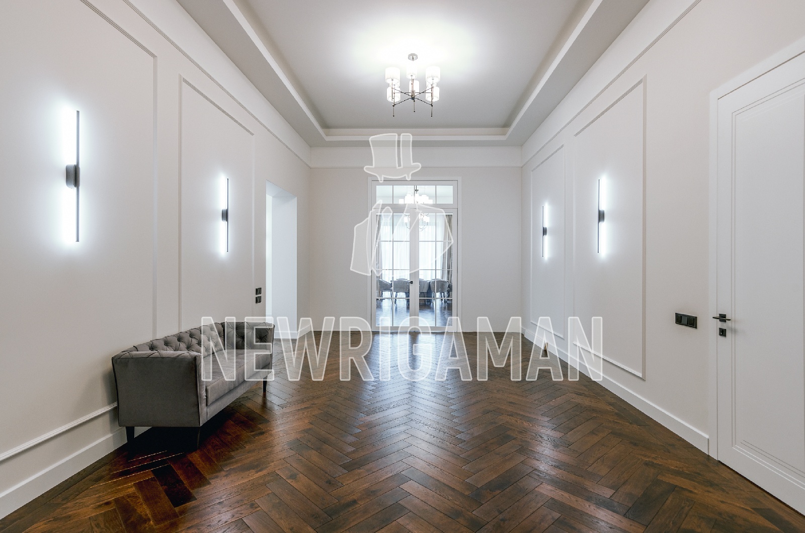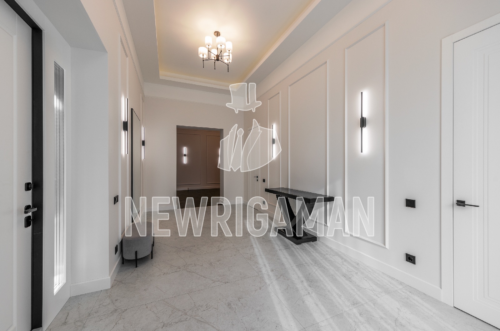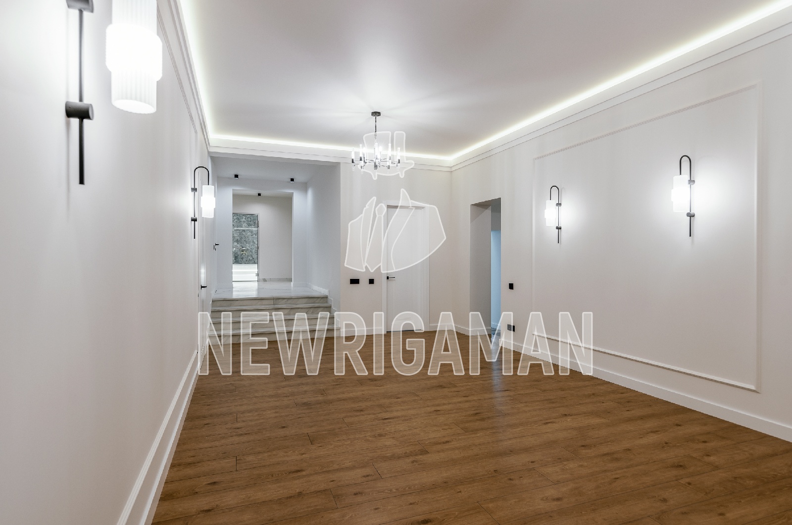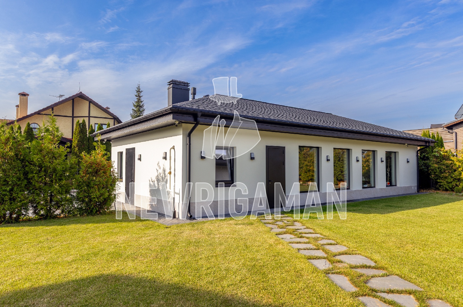 Продажа нового загородного дома площадью 885 кв.м. Ильинское шоссе 15 км от МКАД. Коттеджный посёлок Петровский. Современный одноэтажный дом с дизайнерской отделкой, созданный для комфортной и эстетичной загородной жизни. Продуманная архитектура, панорамное остекление и приватная территория с собственным садом, формируют атмосферу уюта и статуса. Дом полностью готов к проживанию и предлагается под ключ. В интерьере использованы натуральные материалы, спокойная благородная цветовая гамма и выразительные дизайнерские акценты. Высокие потолки и обилие естественного света подчеркивают ощущение простора, а продуманное акцентное освещение усиливает современный характер интерьера. Участок площадью 15 соток оформлен ландшафтным дизайном: ухоженные зелёные зоны, декоративные растения, аккуратные дорожки и архитектурная подсветка, создают завершенный образ территории. Просторная терраса идеально подходит для отдыха и приема гостей на свежем воздухе. Дополнительно на участке расположен отдельно стоящий гараж на 4 м/м с помещением для охраны, а также блок для персонала с отдельным входом, обеспечивающий максимальный комфорт и приватность владельцев.