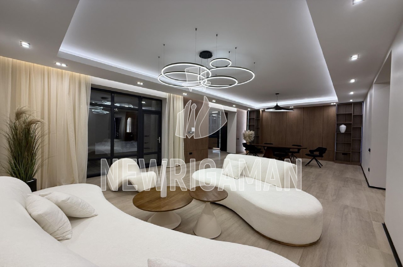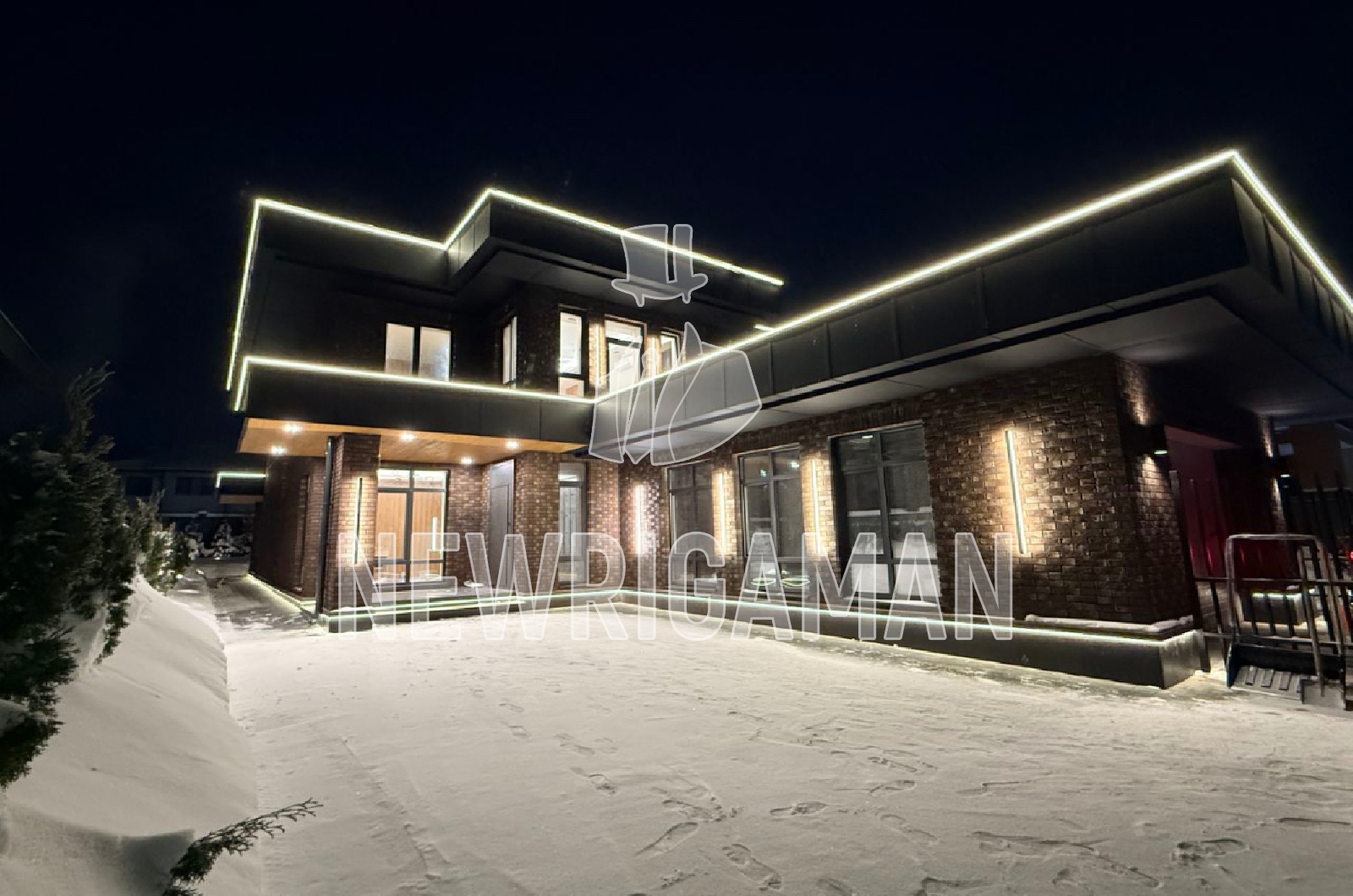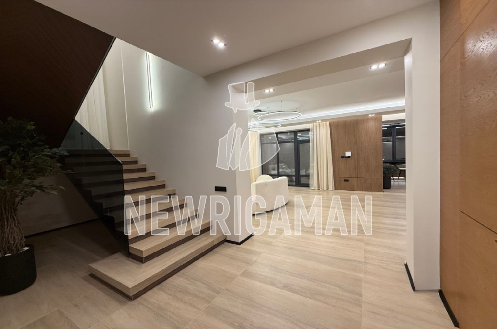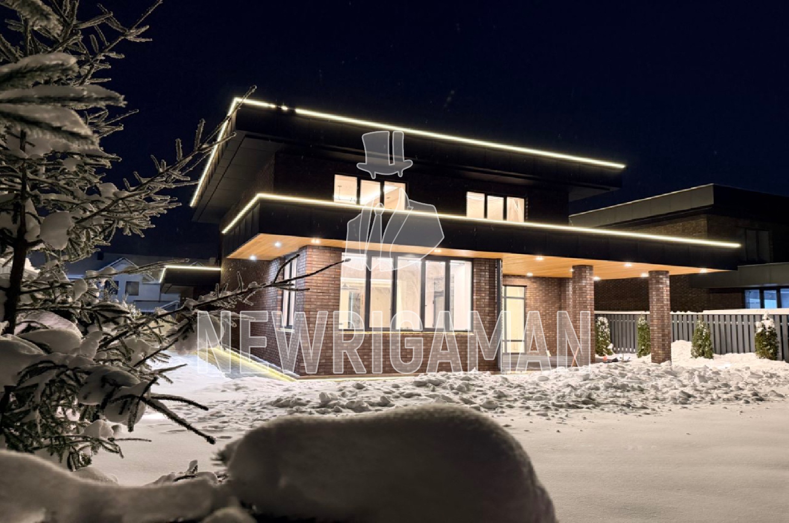 Продажа загородного дома площадью 340 кв.м. Коттеджный поселок Русская деревня. Новорижское шоссе, 24 км от МКАД. Этот современный дом сочетает выразительную архитектуру, продуманный дизайн и высокий уровень комфорта. Фасад выполнен в стильном сочетании кирпича, темных панелей и панорамного остекления, а контурная подсветка подчеркивает геометрию здания и придает ему эффектный, статусный облик в любое время суток. Внутреннее пространство оформлено в минималистичном стиле с акцентом на натуральные материалы, мягкие формы мебели и теплую цветовую палитру, создающую атмосферу уюта и визуальной легкости. Просторная гостиная объединена со столовой в единую открытую зону, где продумано естественное освещение и логика движения, а кухня отличается лаконичным дизайном, функциональной системой хранения и удобной барной зоной. Планировка дома максимально рациональна: общественные зоны и приватные помещения гармонично разделены, обеспечивая комфорт для жизни и приема гостей, при этом каждый квадратный метр используется эффективно. Участок площадью 10 соток органично дополняет архитектуру дома, оставляя пространство для ландшафтного дизайна, зоны отдыха, террасы и возможного размещения дополнительных построек, что делает этот объект идеальным вариантом для комфортной современной жизни за городом.