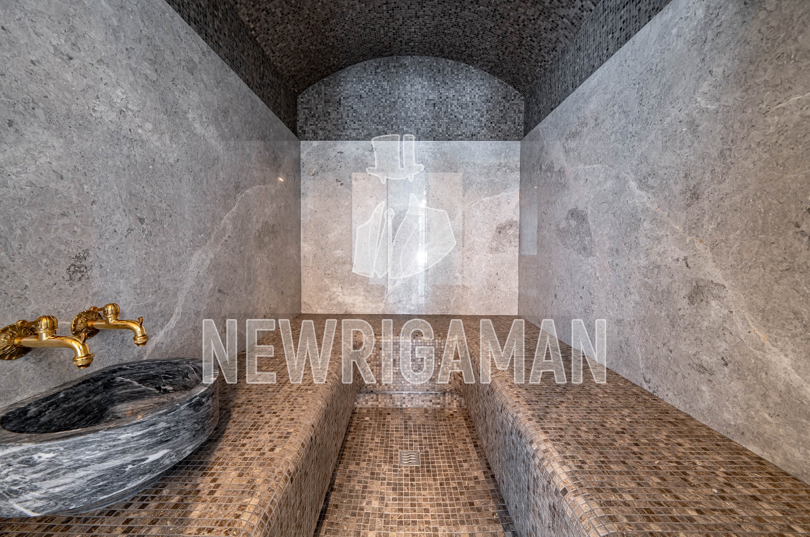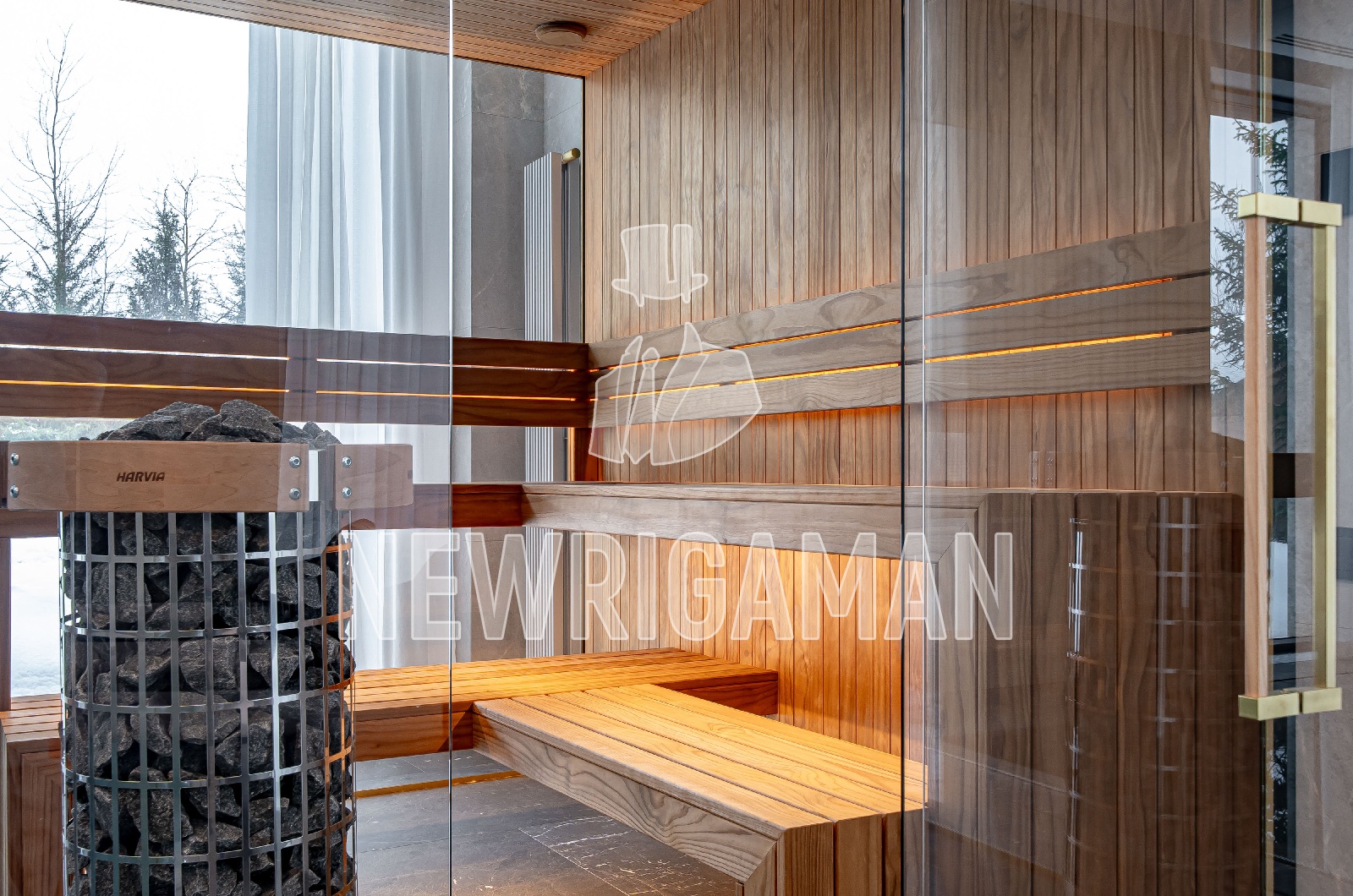 1 этаж - гардеробная, с/у, гостиная с дровяным камином, кухня-столовая, шеф кухня, гостевая спальня с с/у, спа-зона: сауна, хаммам, с/у, гараж на 2 авто,