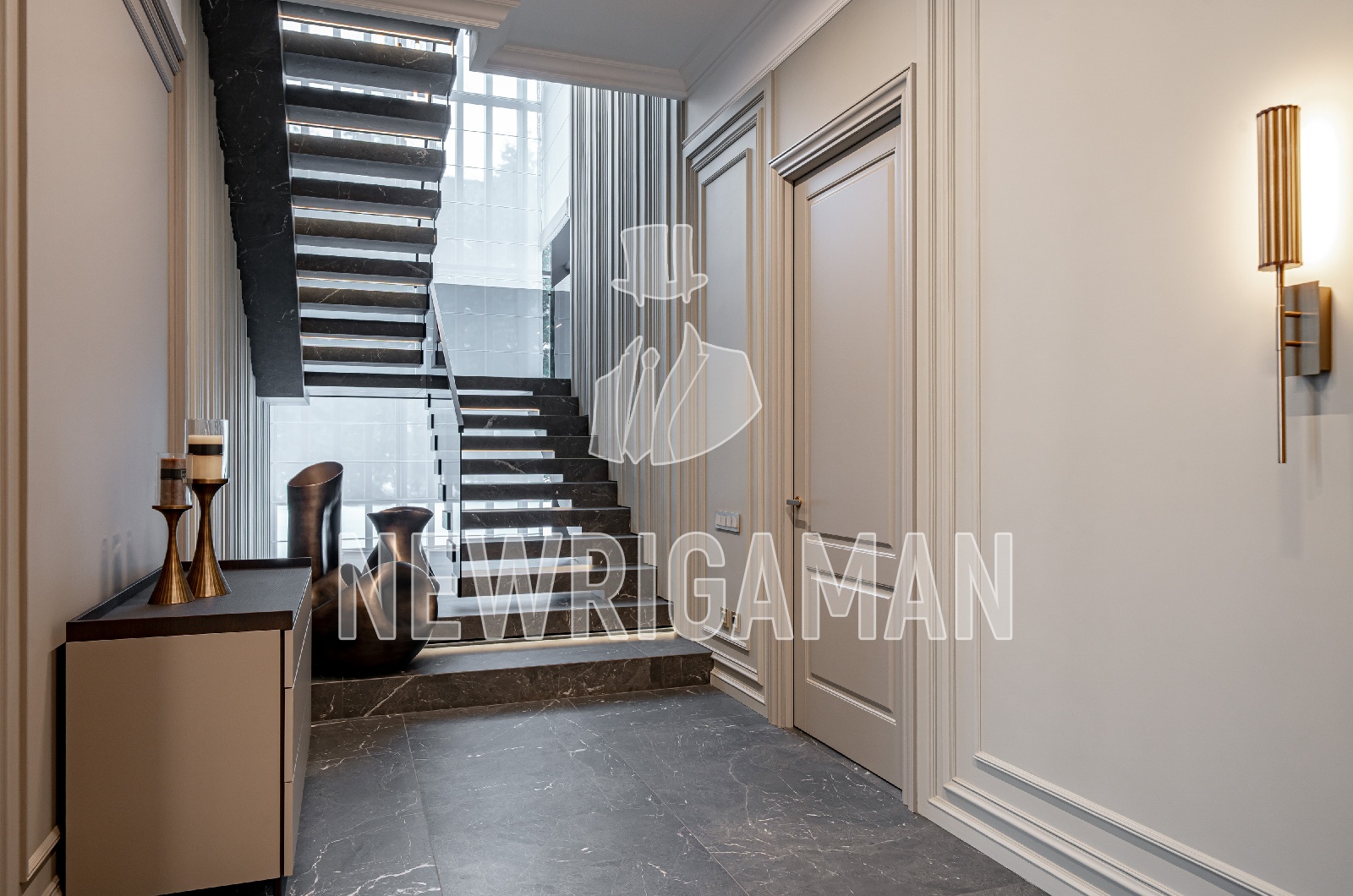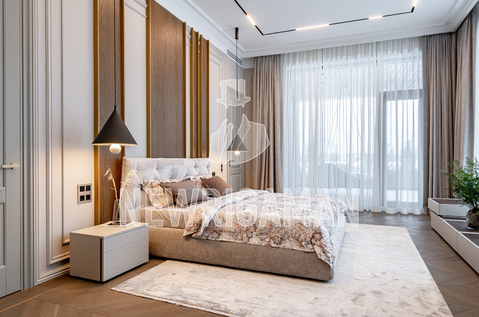 2 этаж - кабинет с с/у, 3 просторные спальни с гардеробными и с/у, спортзал, постирочная, хозяйский блок с 2 гардеробными, террасой и ванной комнатой, отдельно стоящий блок для персонала, котельная.