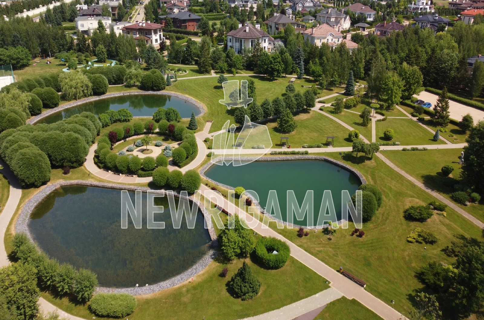 Здесь расположены искусственные водные каналы шириной до 12 метров общей протяженностью более пяти километров. Инфраструктура внутренняя: в центральной зоне отдыха площадью 5 га на живописном берегу озера 3 Га располагается роскошный ресторан с пляжем и 2 волейбольными площадками. Между кварталами созданы 5 парков, каждый из которых включает детскую и спортивные площадки, а так же водоем. Все центральные коммуникации. 3 КПП с строгой пропускной системой. Круглосуточное патрулирование. Своя служба эксплуатации. Инфраструктура внешняя: Аутлет Новая Рига, в 5 минутах езды от поселка находятся общеобразовательные школы, центр иностранных языков, детские сады, 10 ресторанов, Крокус фитнес, Фитнес Ван, Азбука Вкуса, Зеленый Перекресток, салоны красоты и клиники. Поселки рядом: Резиденция Монолит, Агаларов Эстейт, Монтевиль, Гринфилд, Шервуд, Резиденции Бенилюкс, Ренессанс Парк.