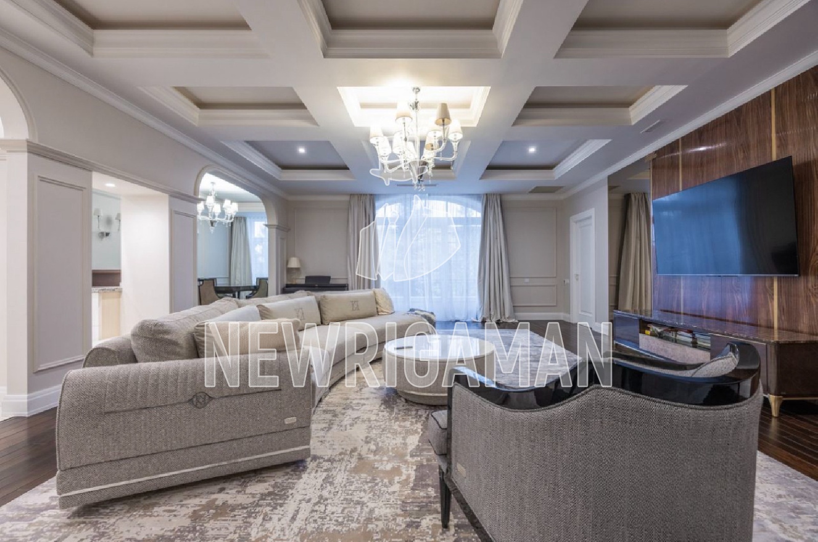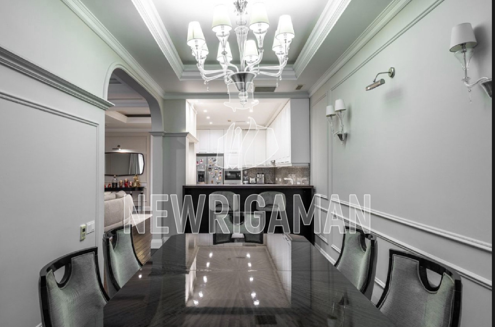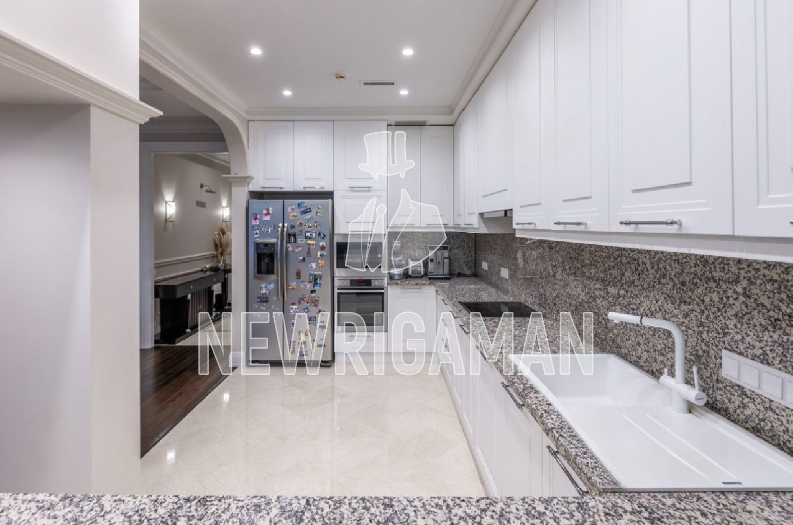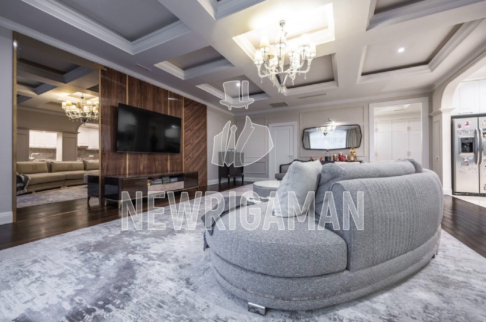 Продажа загородной квартиры общей площадью 175 кв.м. Новорижское шоссе, 20 км от МКАД. Коттеджный поселок Агаларов Эстейт. В трехкомнатной квартире выполнен ремонт в классическом стиле со шторами, светильниками, необходимой мебелью и бытовой техникой. Предусмотрено одно машино-место в гараже, а так же кладовая комната в цоколе.