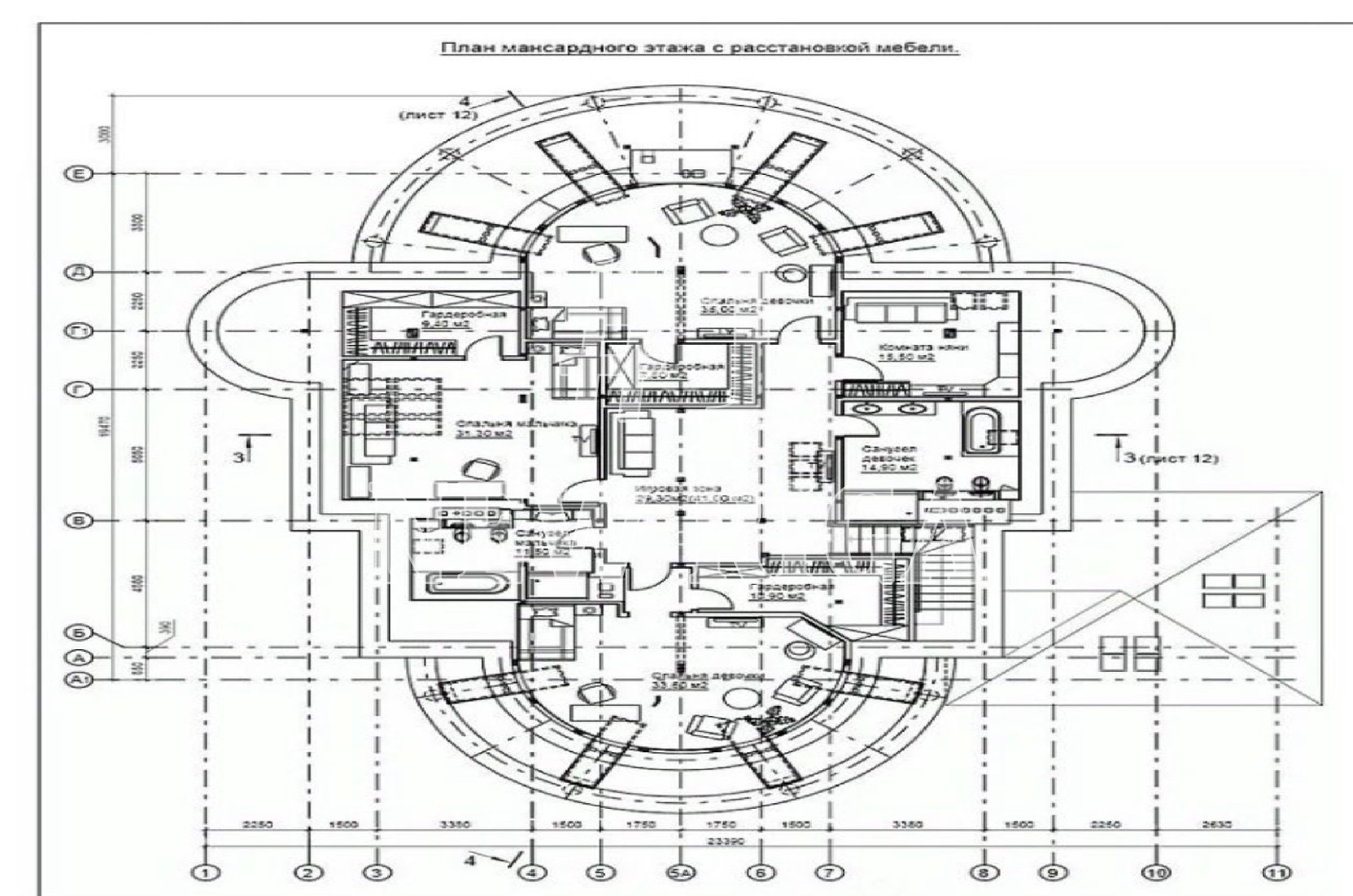 Мансарда - 3 спальни с гардеробами, игровая зона, 2 ванных комнаты, спальня.